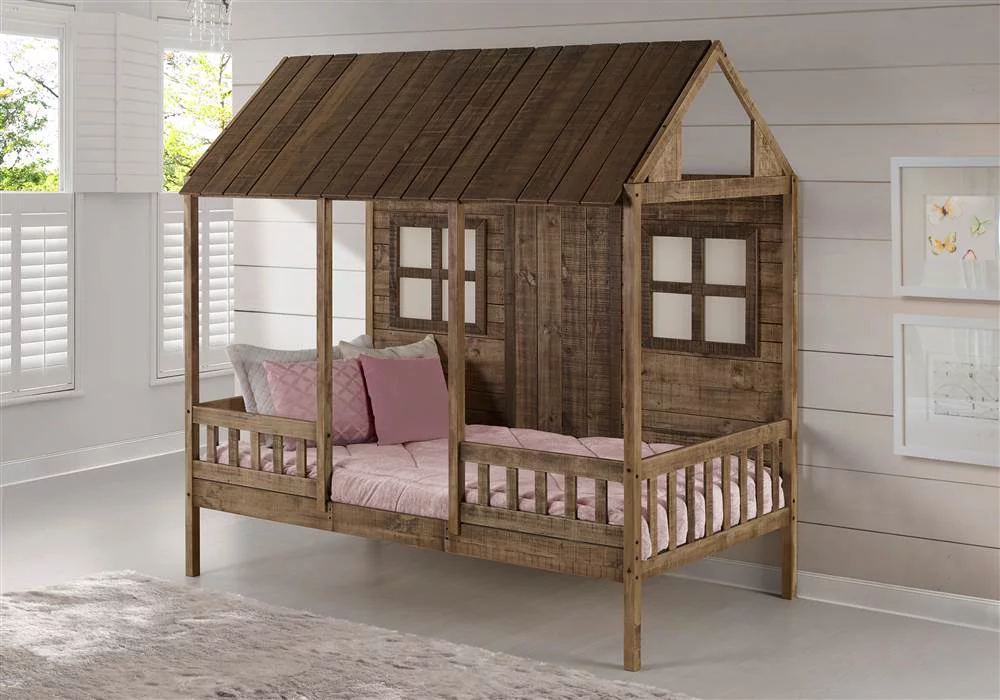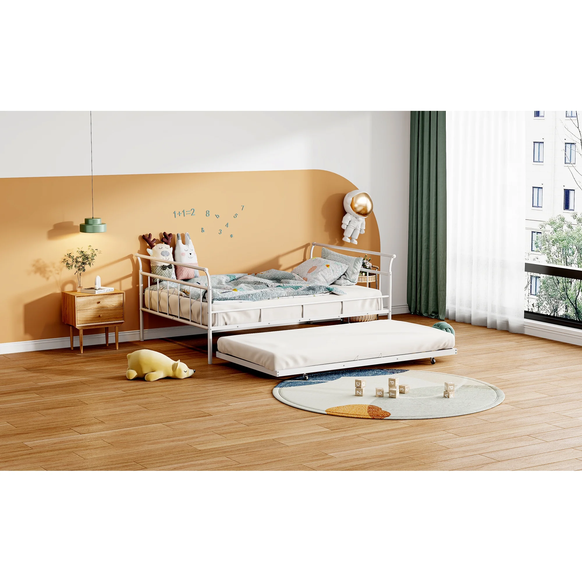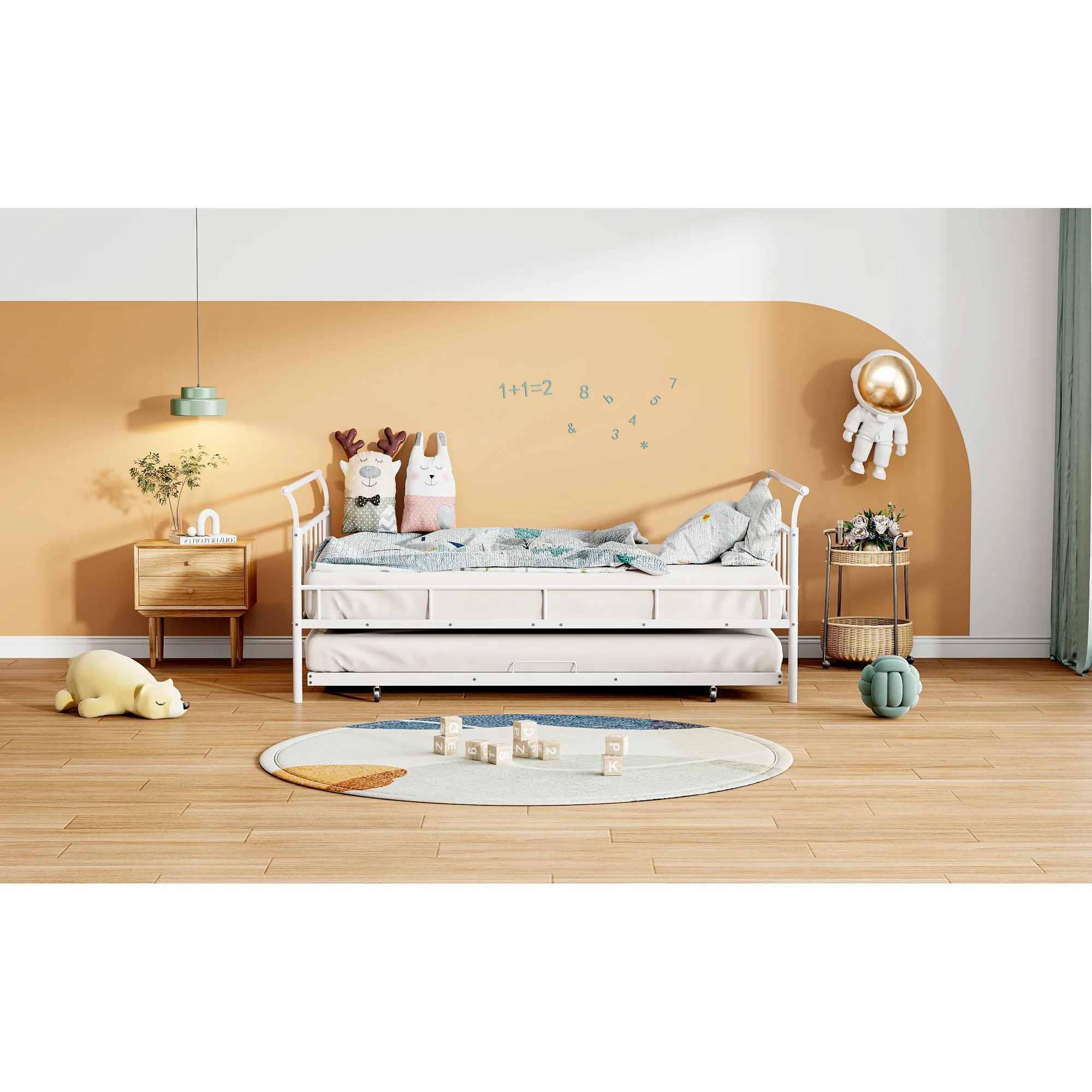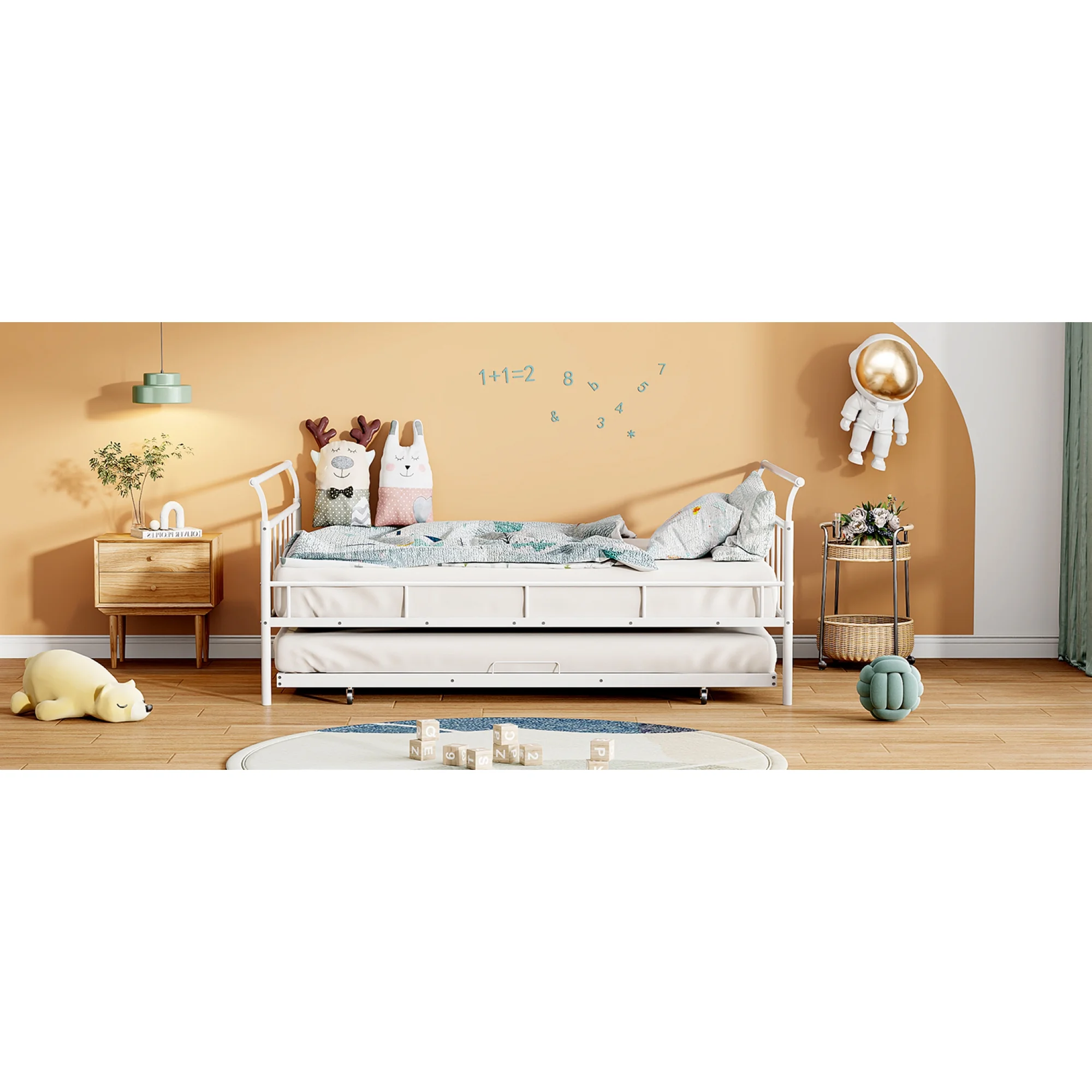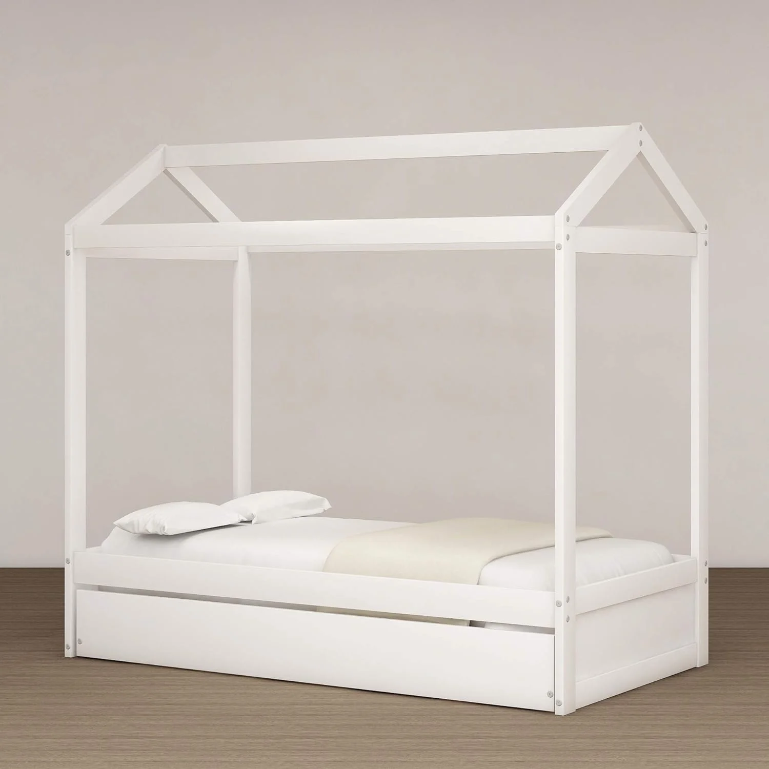 CoSoTower Twin House-Shaped Floor Bed with 2 Detachable Stands, White
