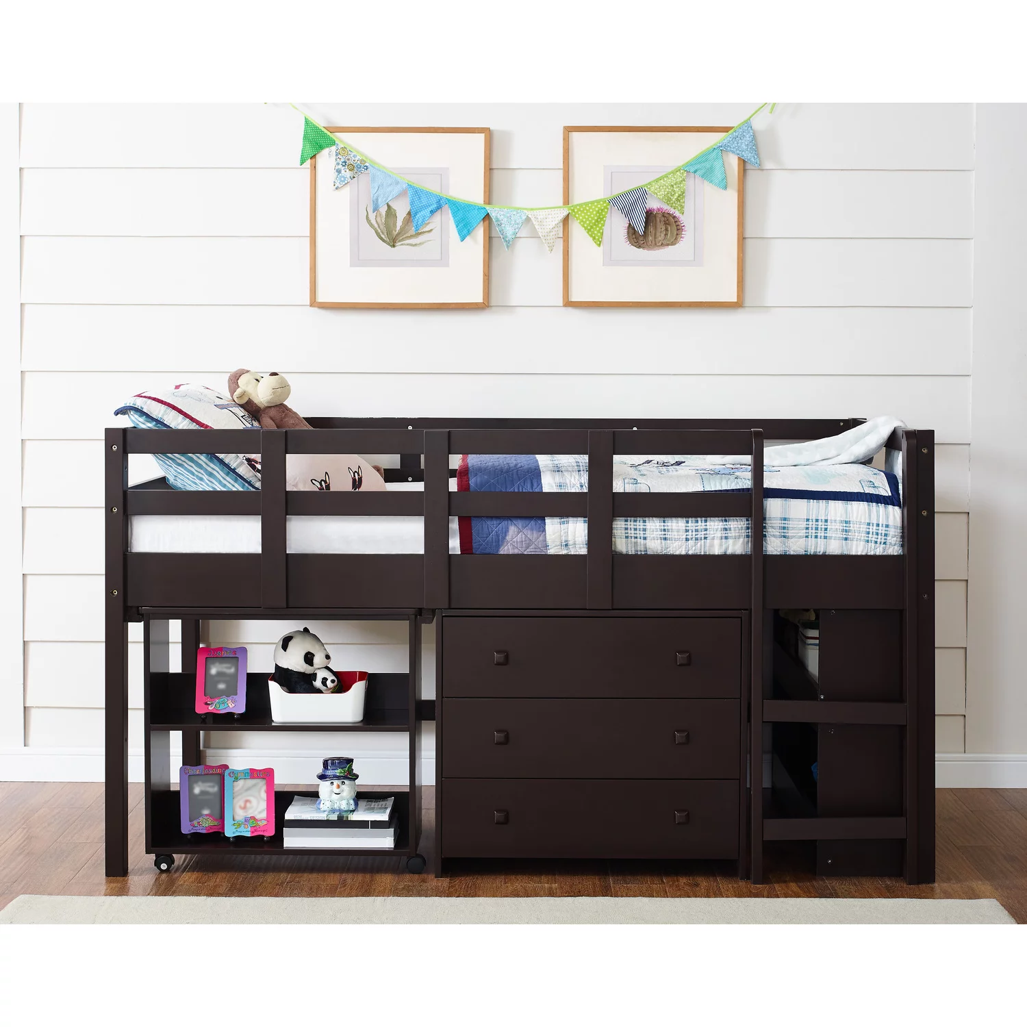 Abanopi Twin over Full/Twin Bunk Bed, Convertible Bottom Bed, Storage Shelves and Drawers, White