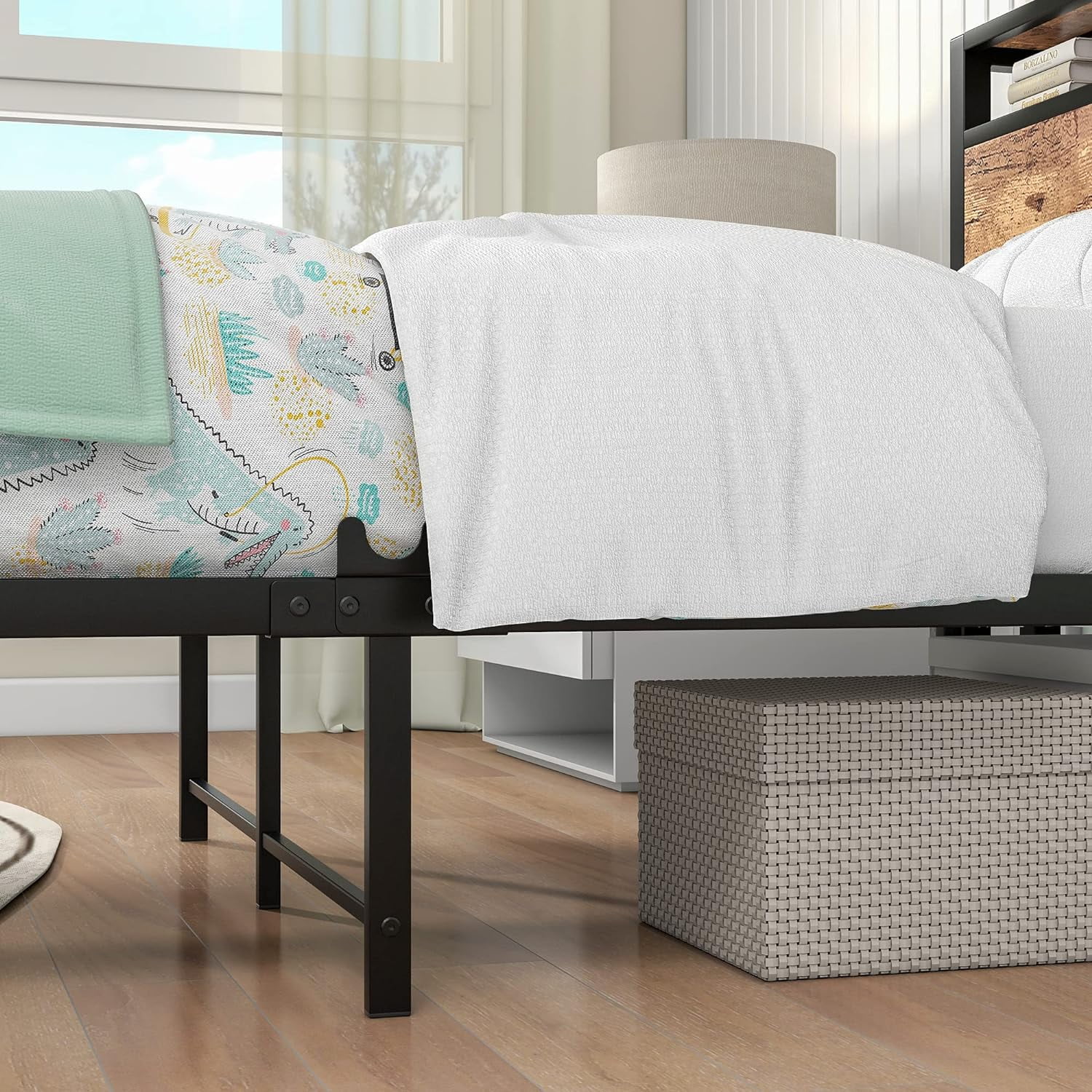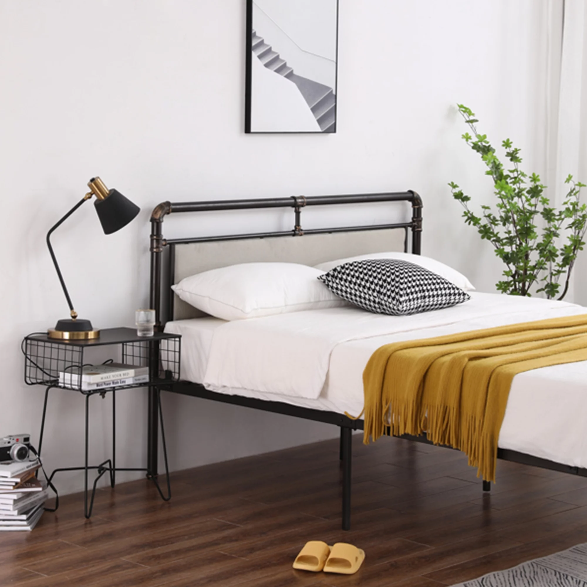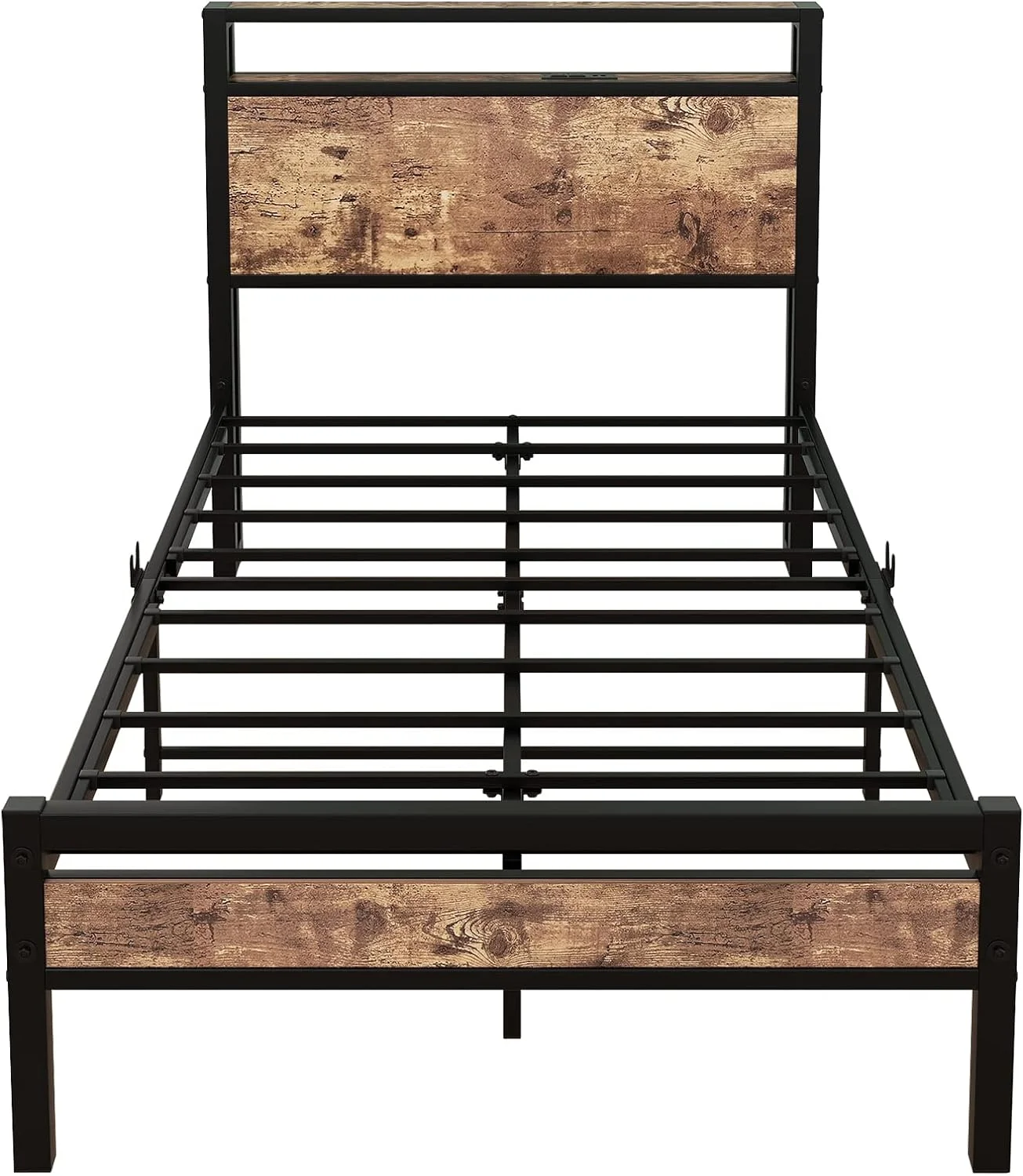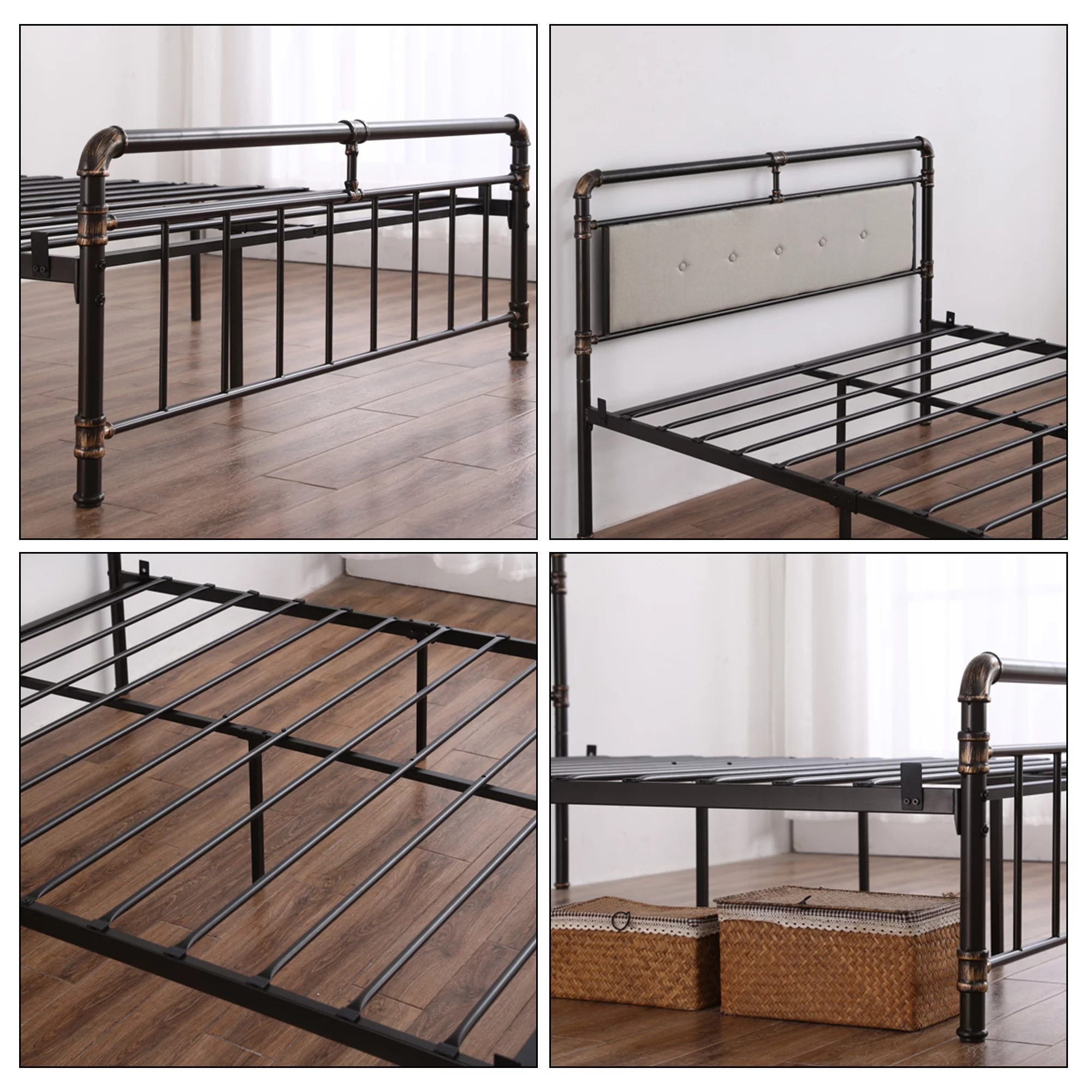 13 inch Twin Bed Frame, Metal Bed Frame with Soft Bag Pull Buckle Bed End Standpipe Water Pipe, Black