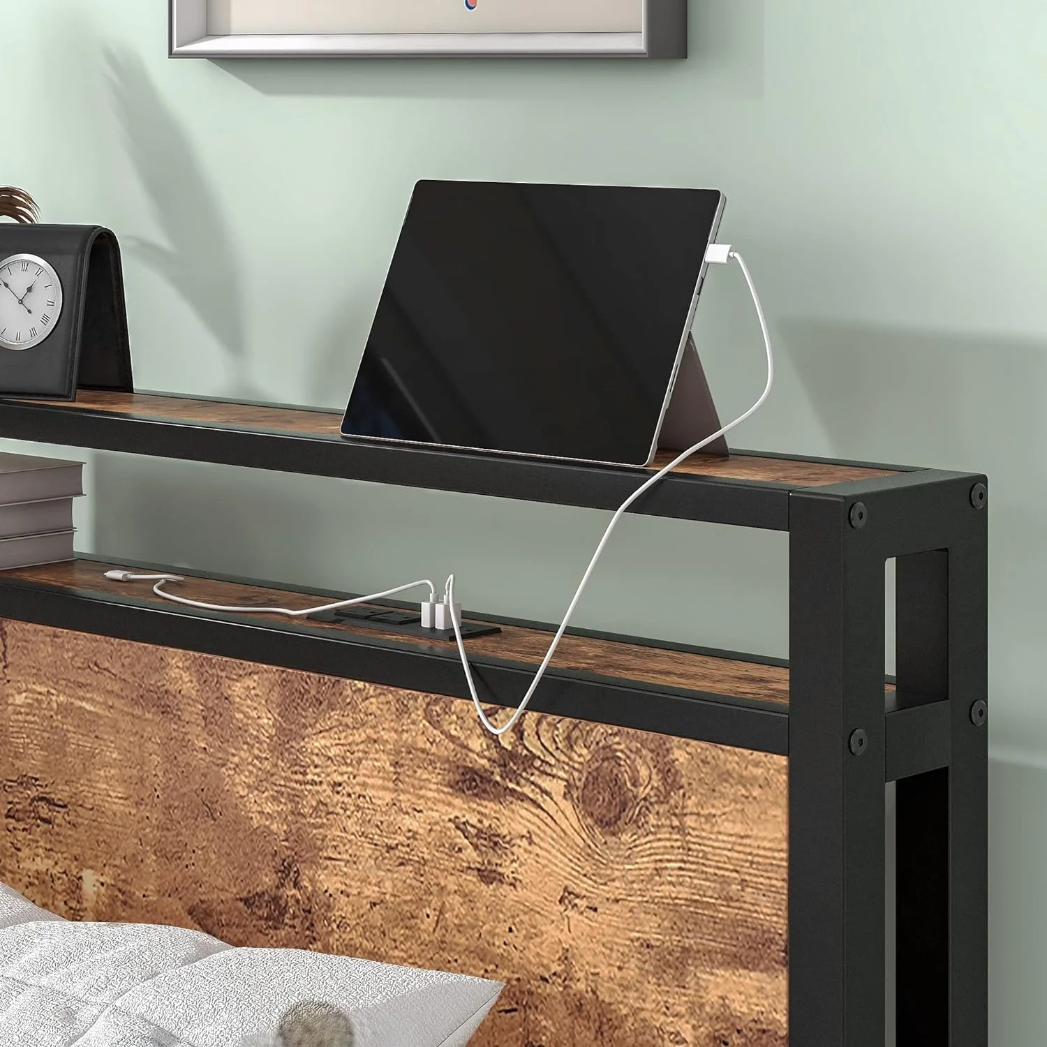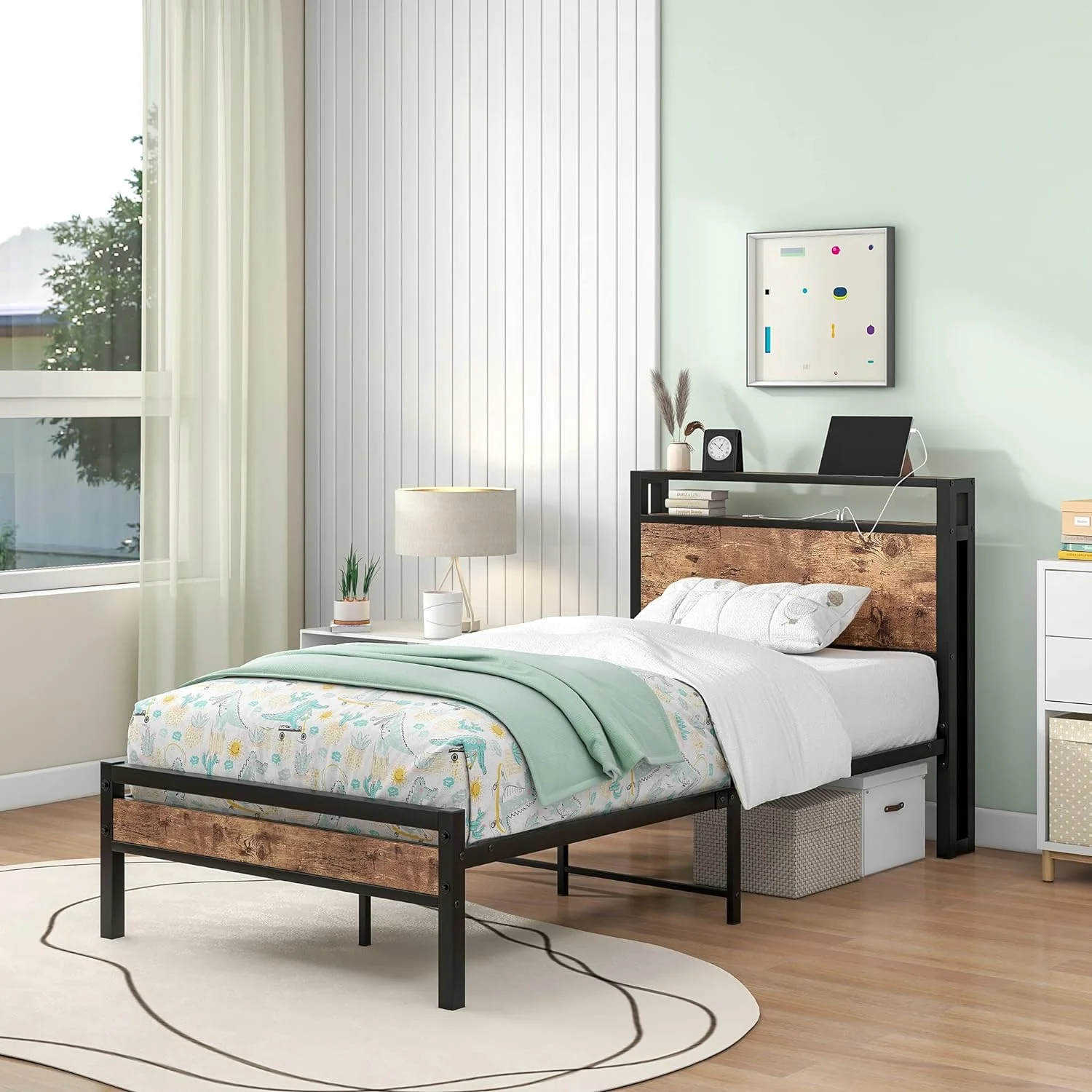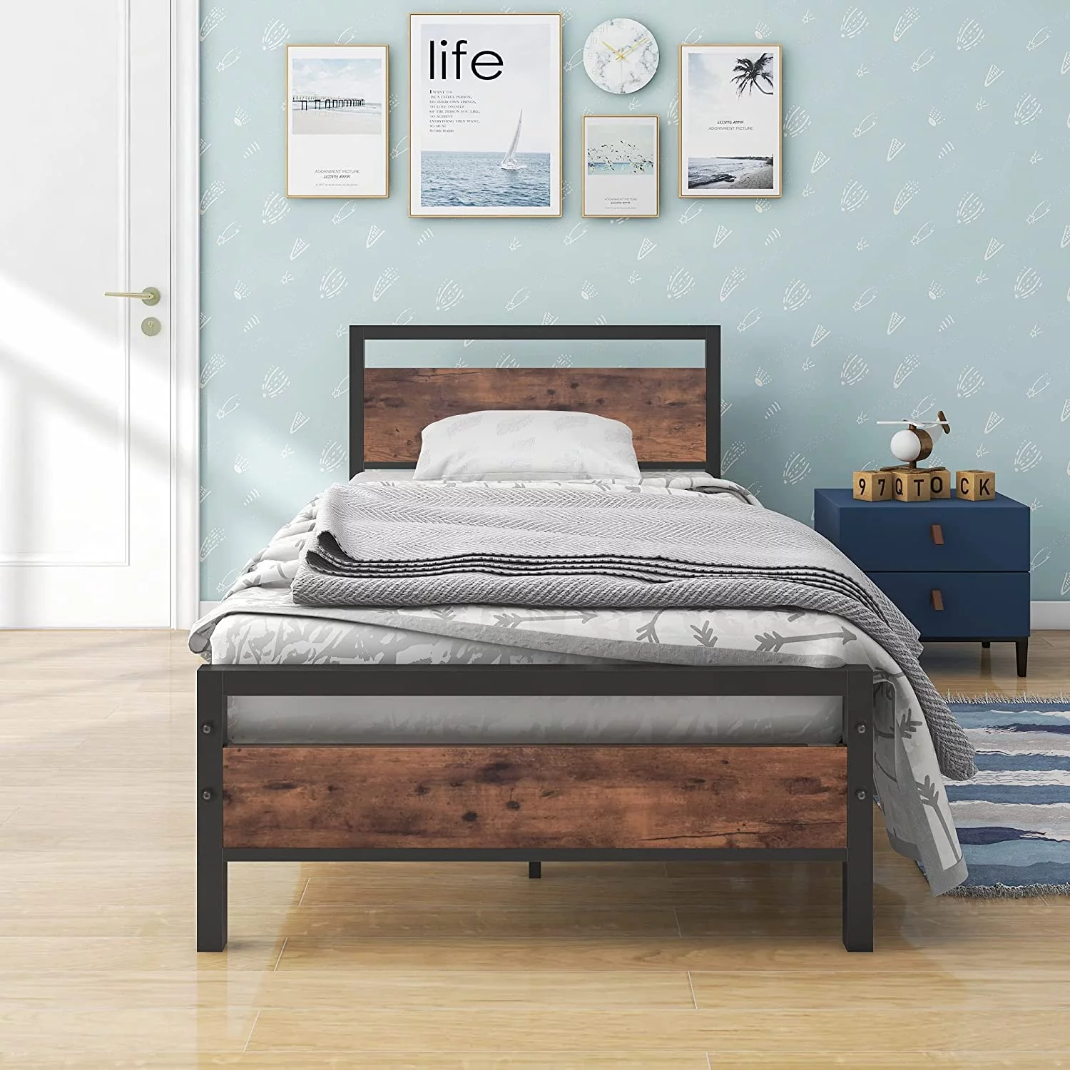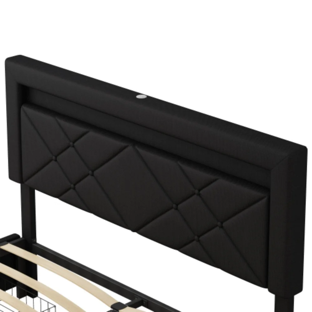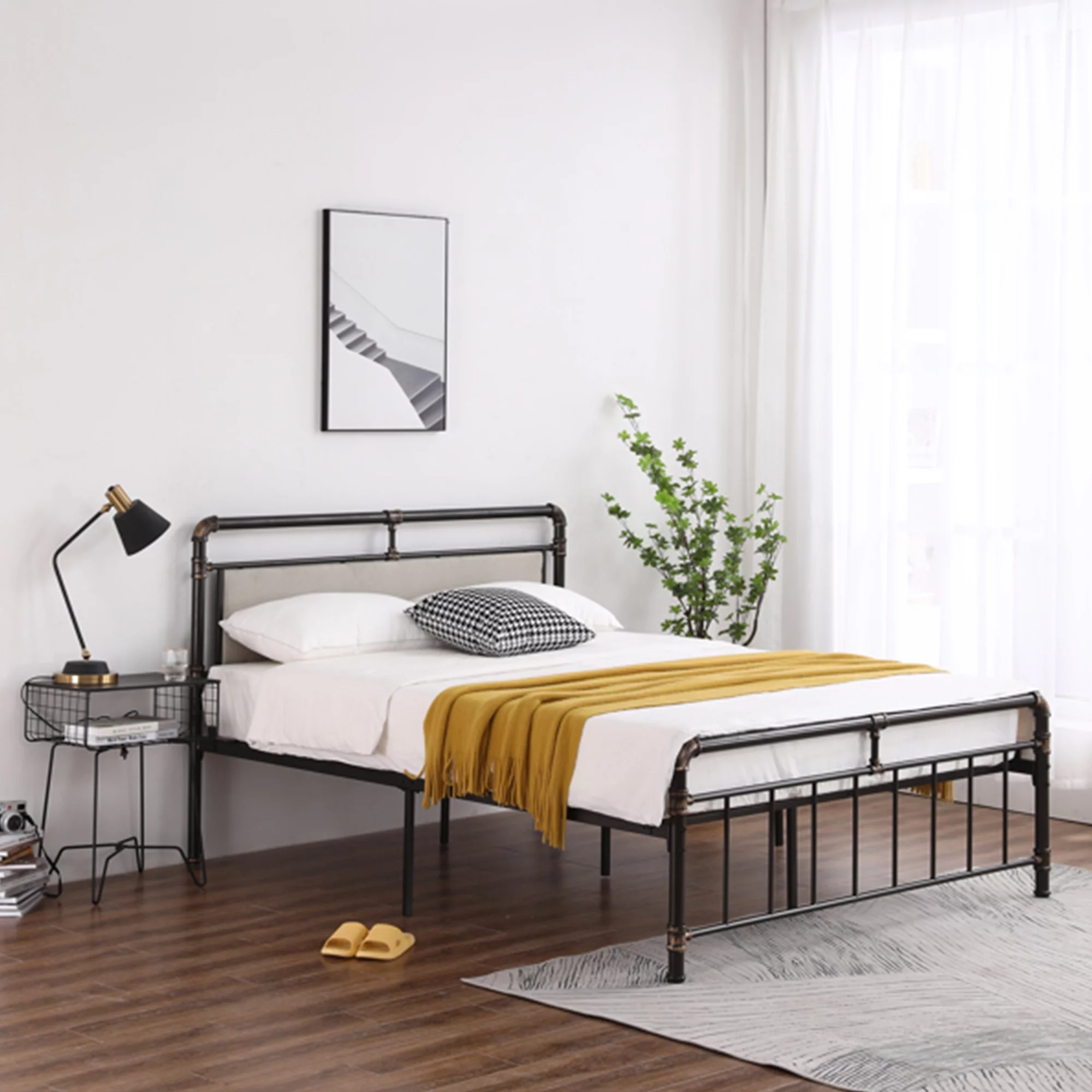 13 inch Twin Bed Frame, Metal Bed Frame with Soft Bag Pull Buckle Bed End Standpipe Water Pipe, Black