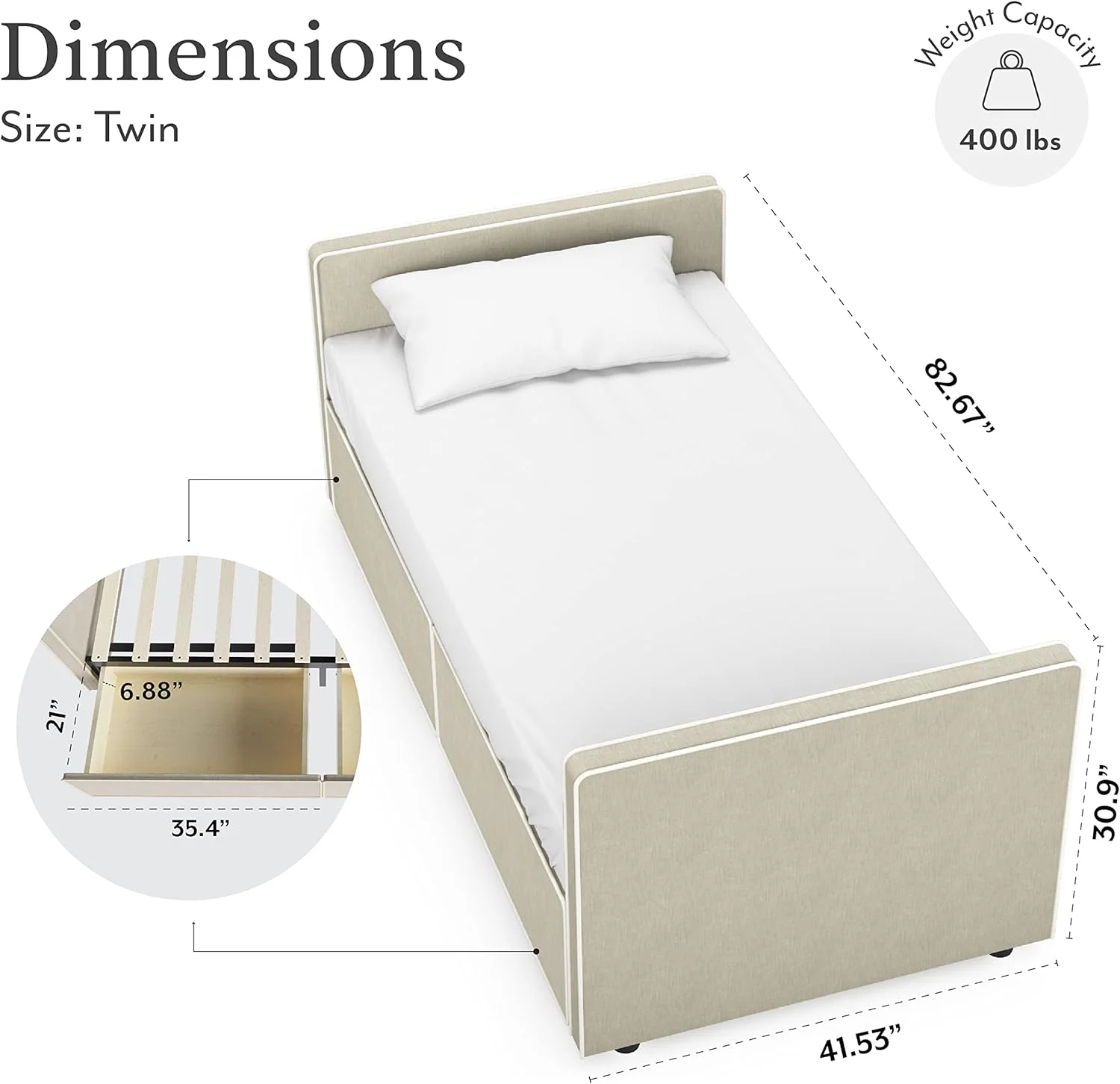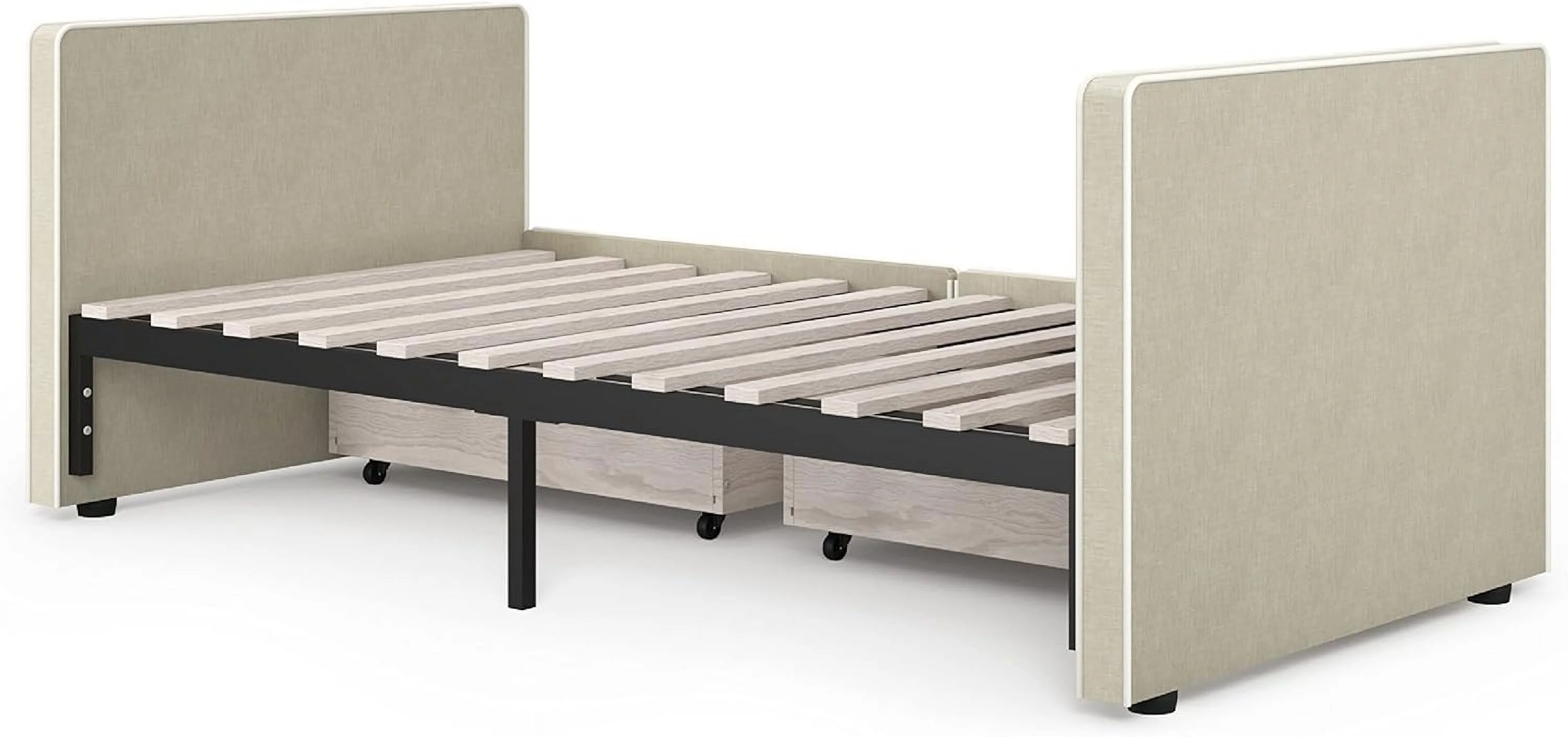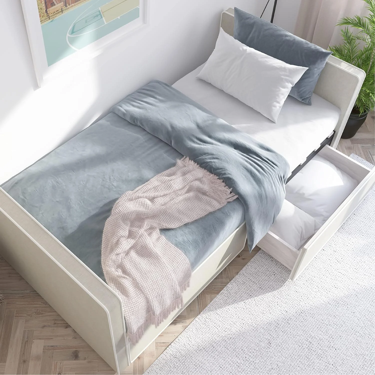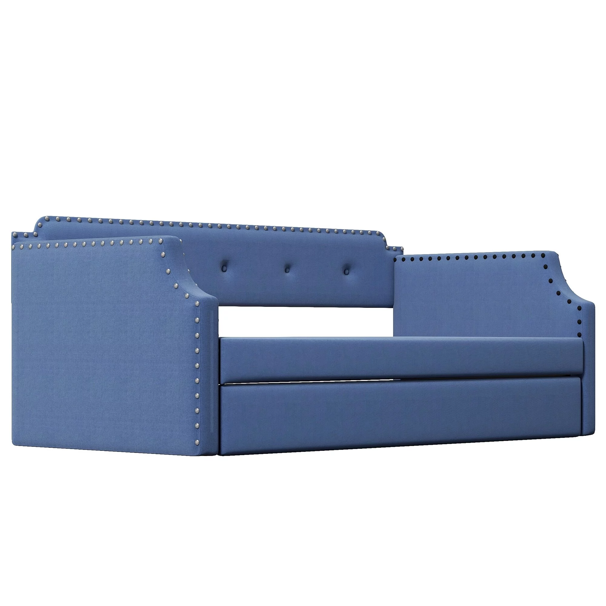 Blue Arched Back and Nailhead Trim Upholstered Daybed with Built-In Trundle Bed, Features Two Armrests,Easy Assembly, Twin