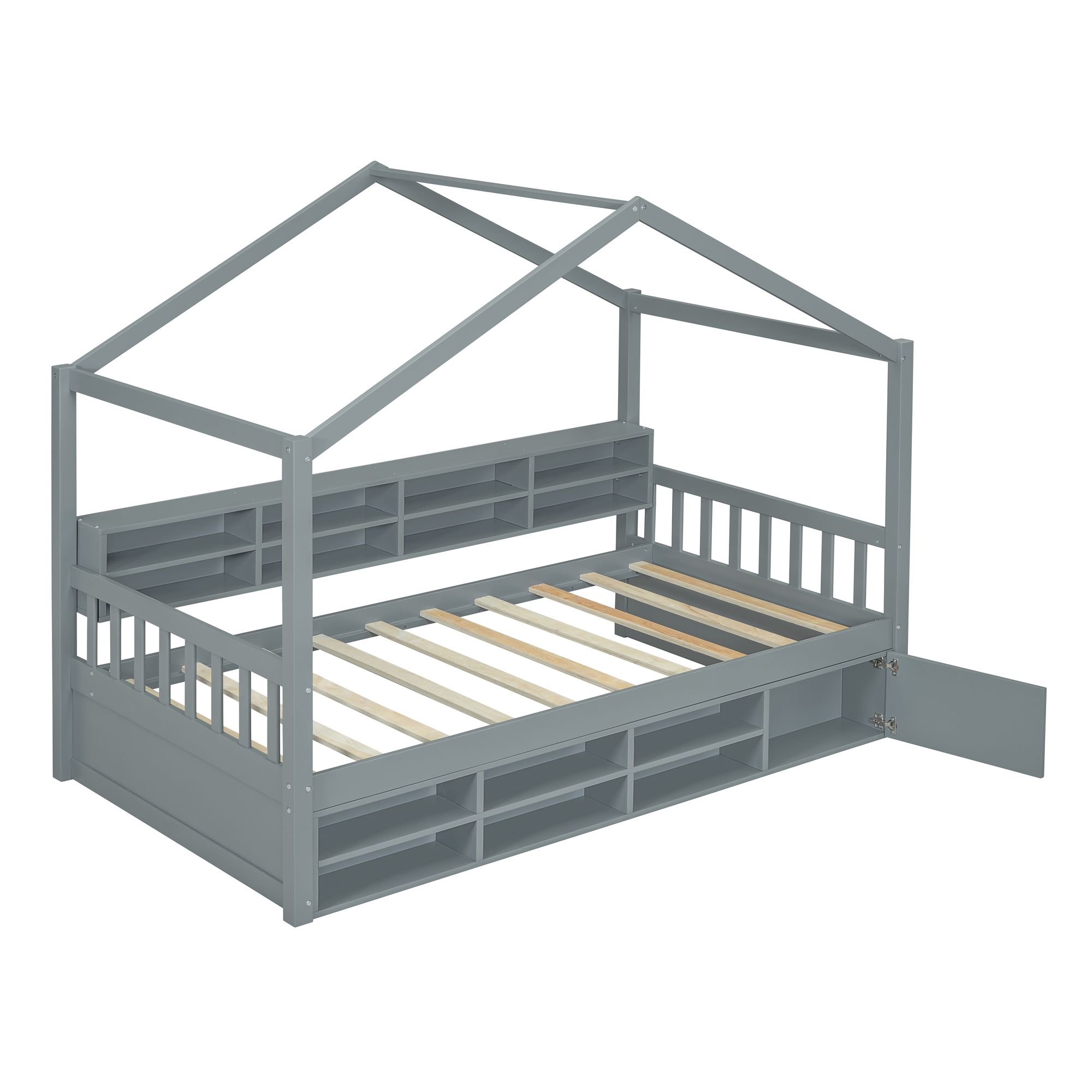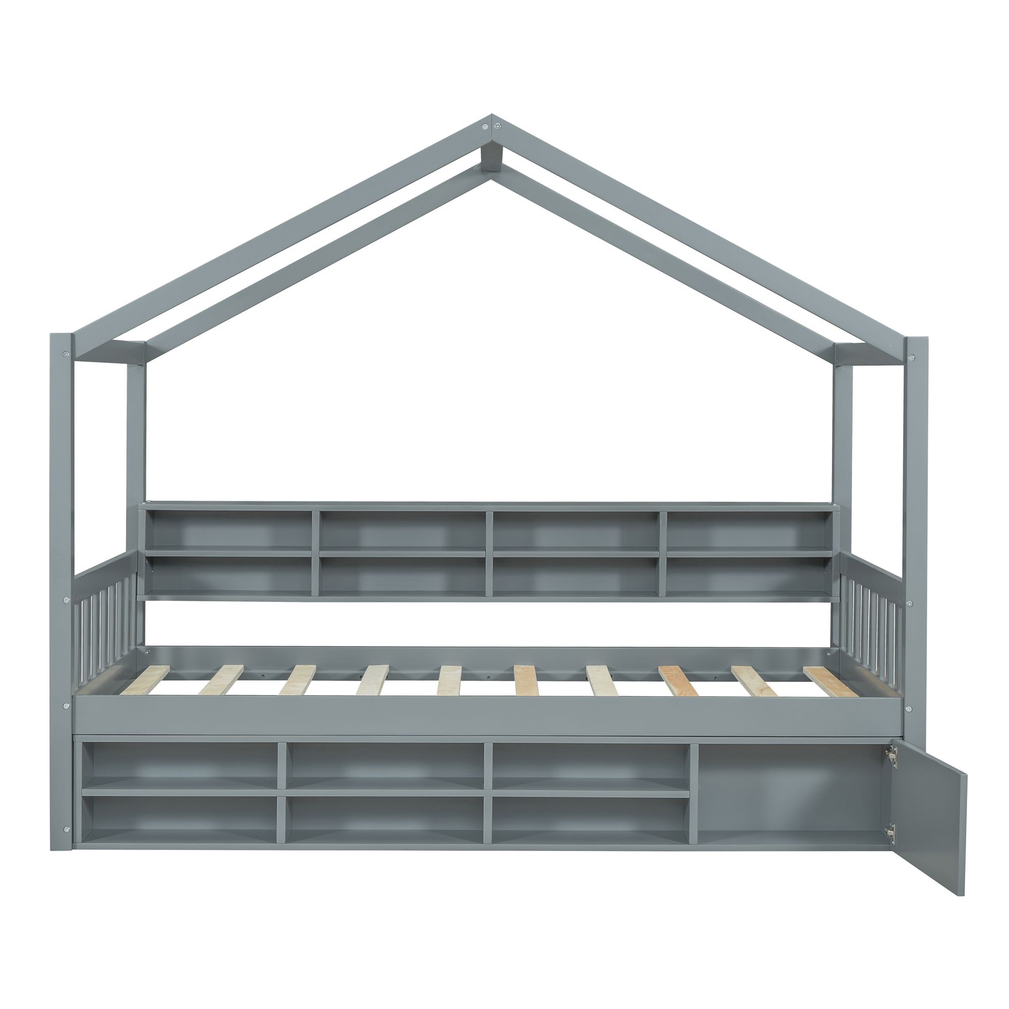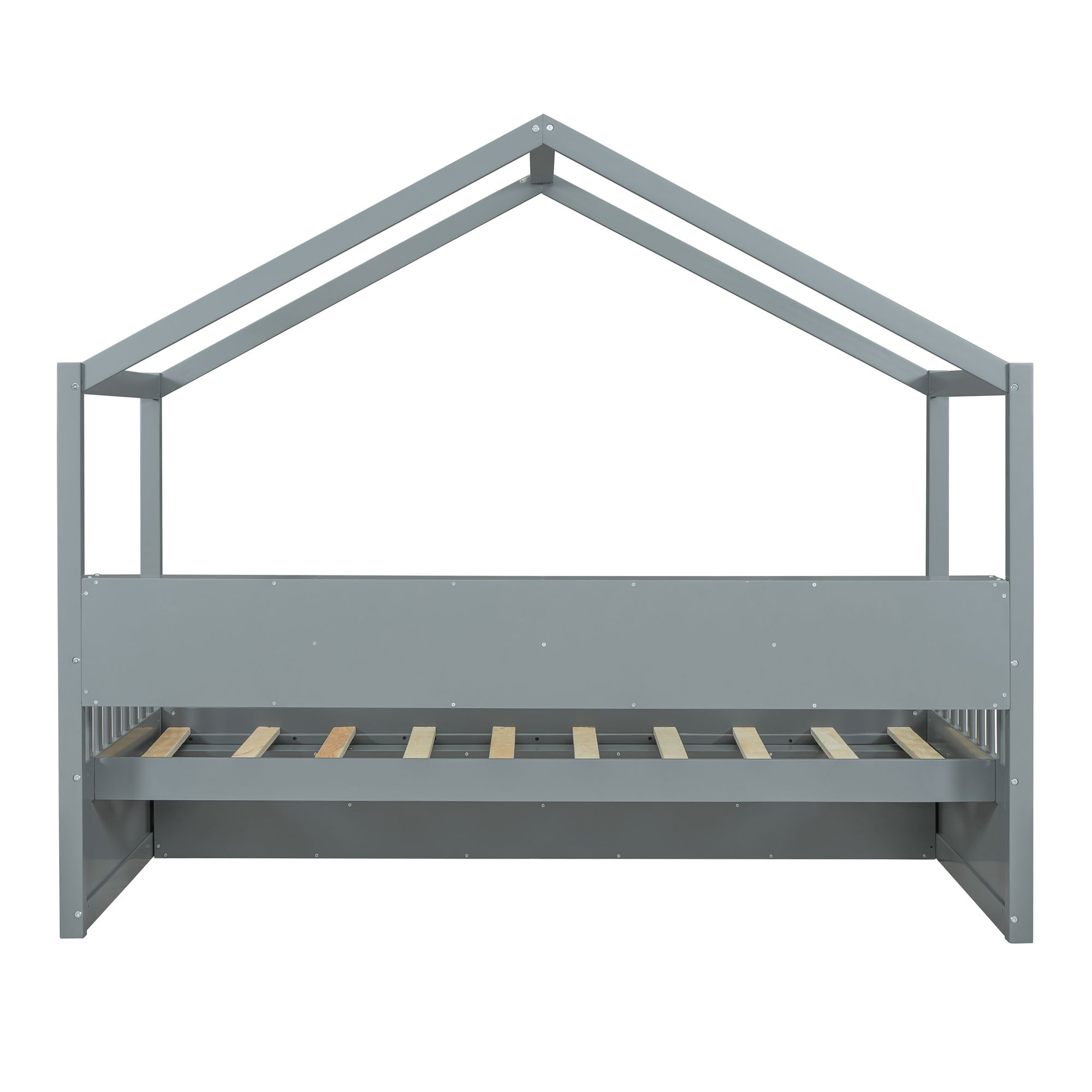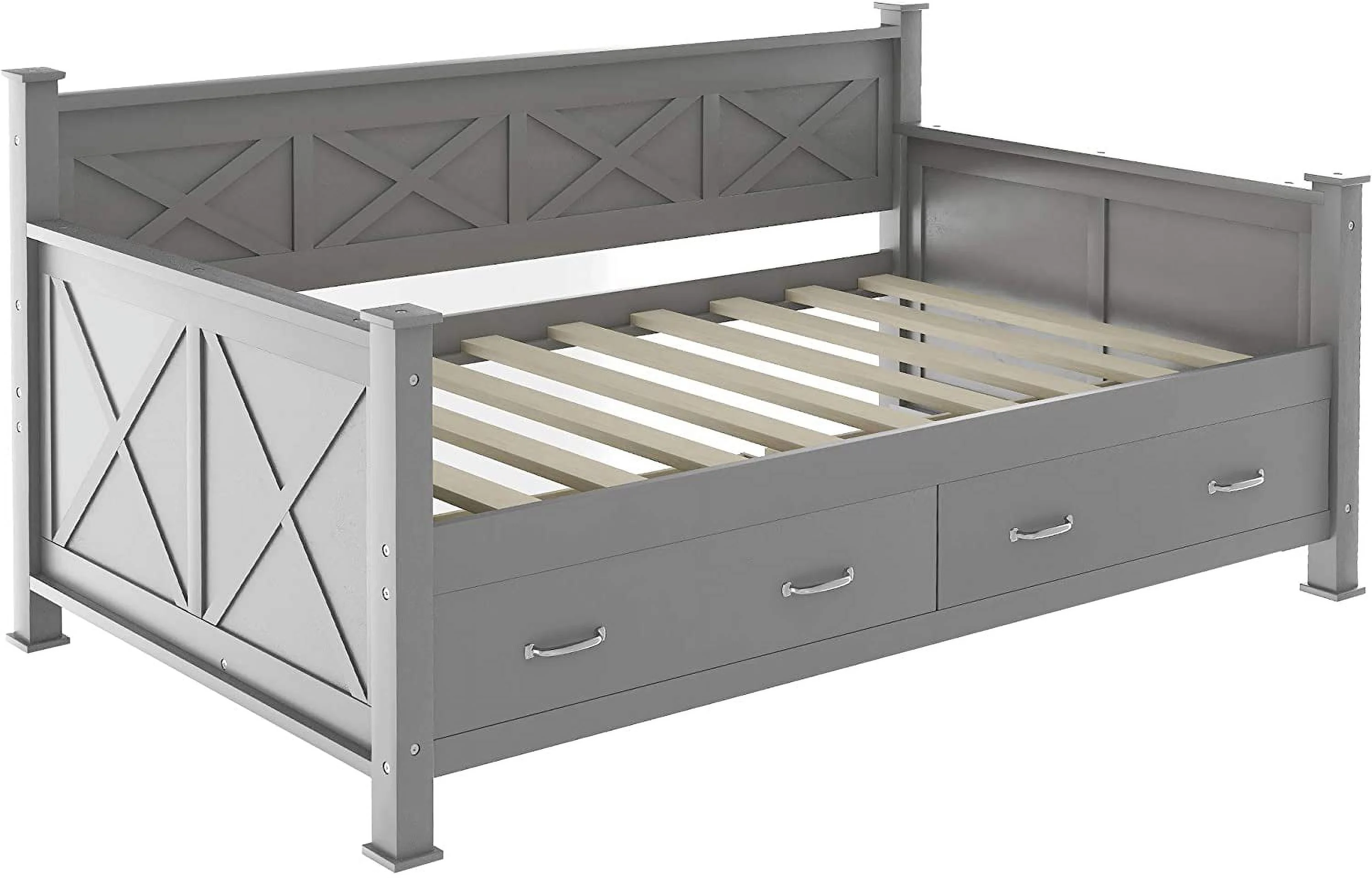 Blue Arched Back and Nailhead Trim Upholstered Daybed with Built-In Trundle Bed, Features Two Armrests,Easy Assembly, Twin