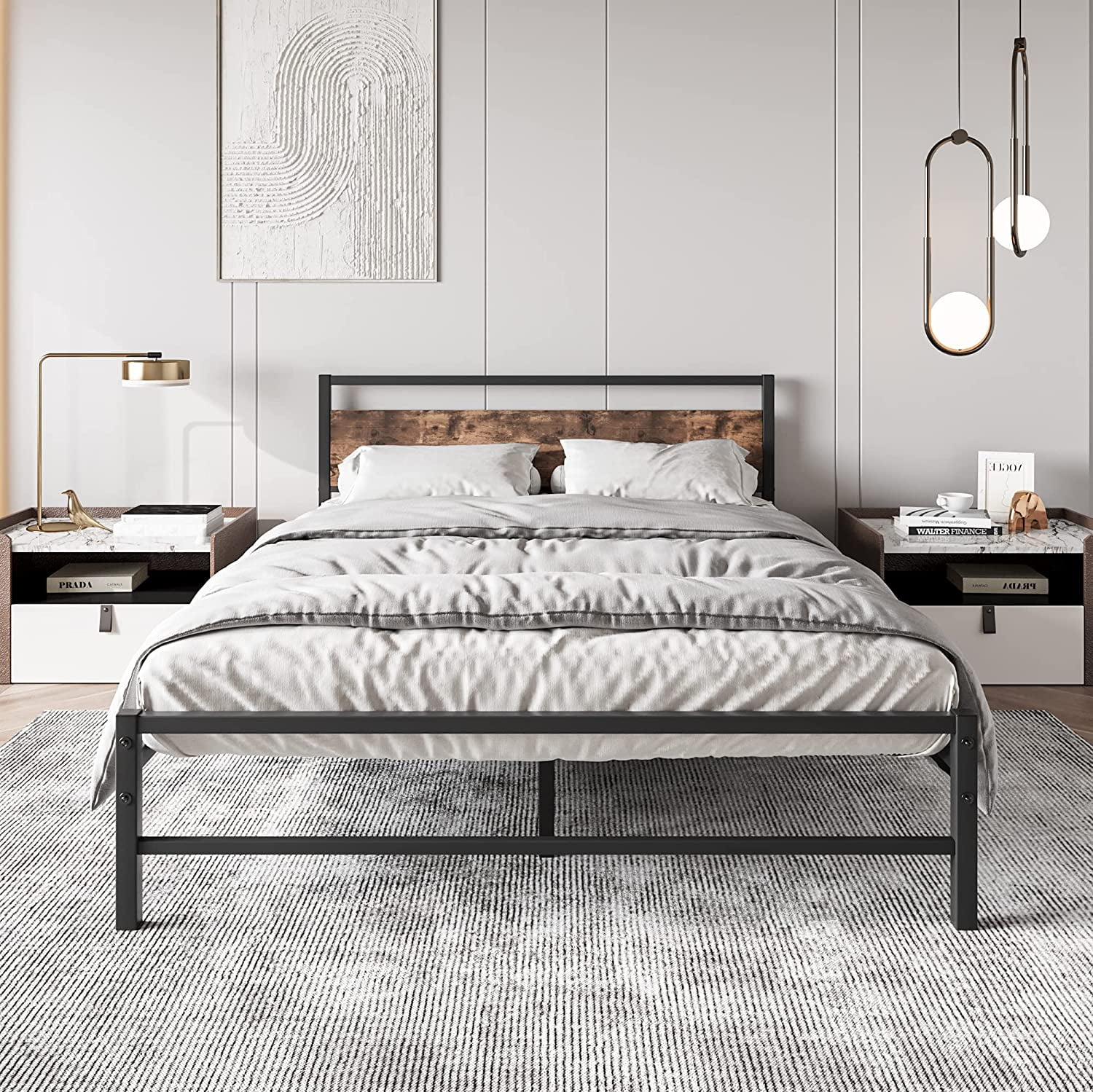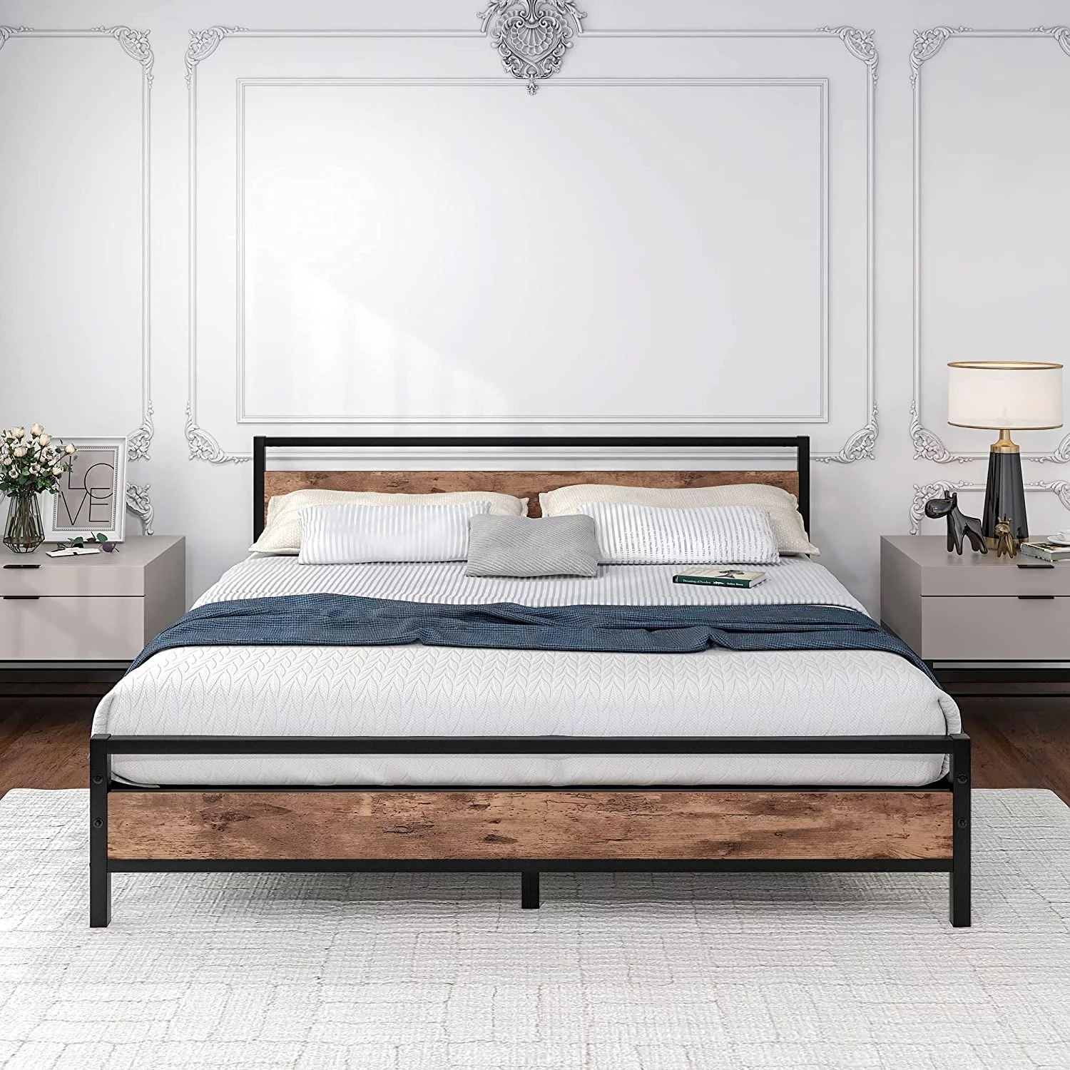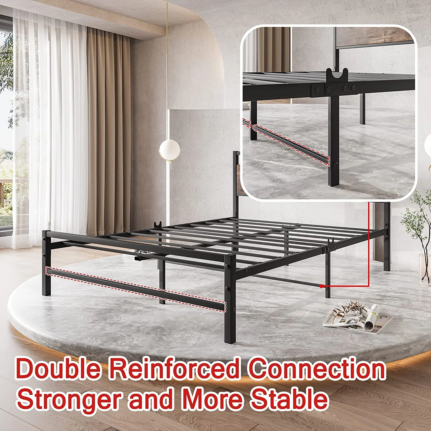 SKYSHALO Metal Bed Frame Platform Queen Size Bed Frame 1500 lbs 18 inch Noise Free