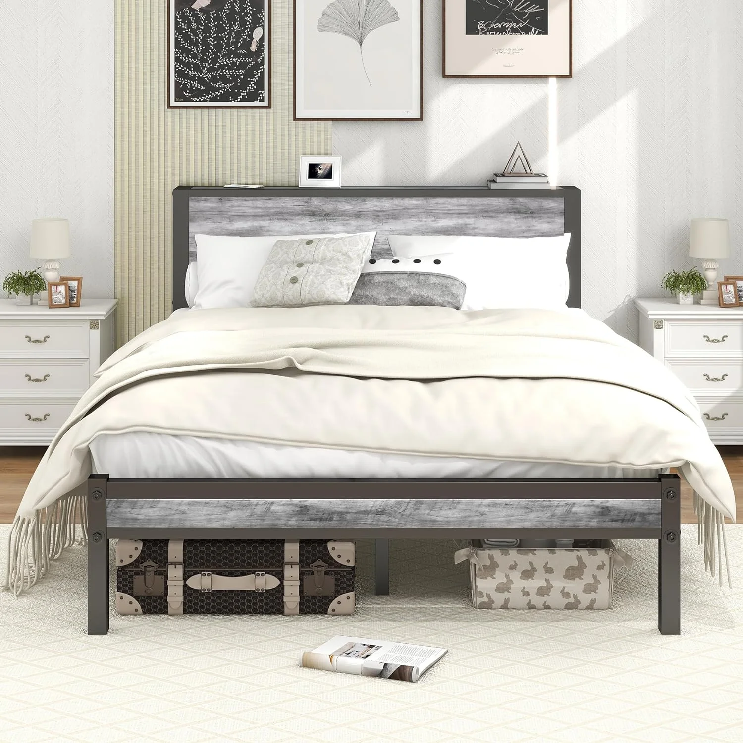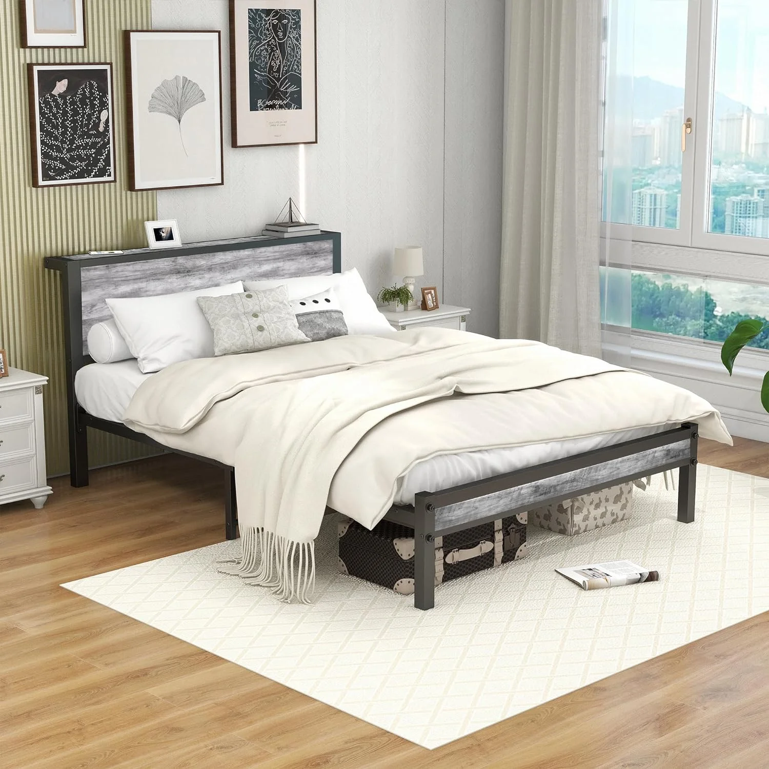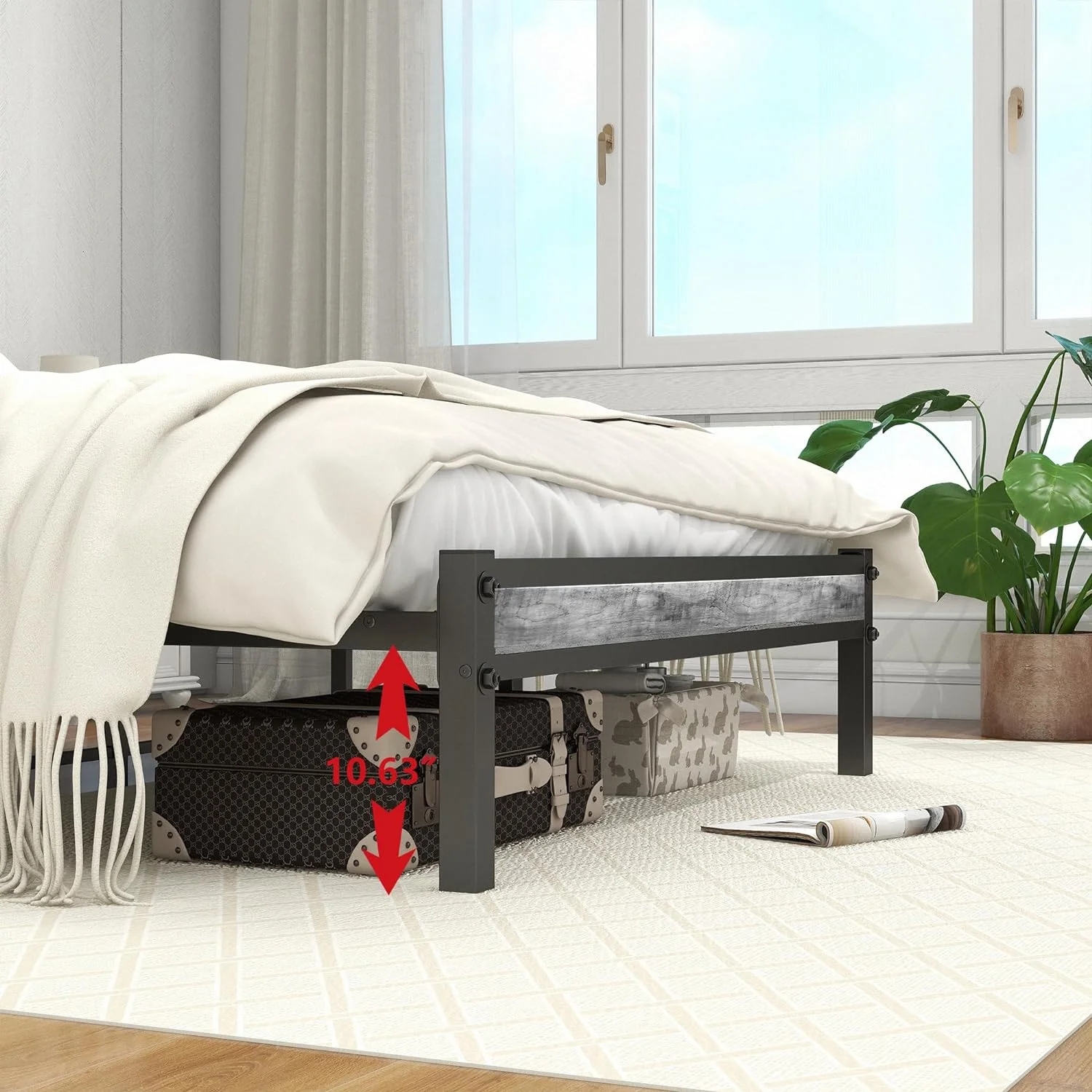SKYSHALO Metal Bed Frame Platform Queen Size Bed Frame 1500 lbs 18 inch Noise Free