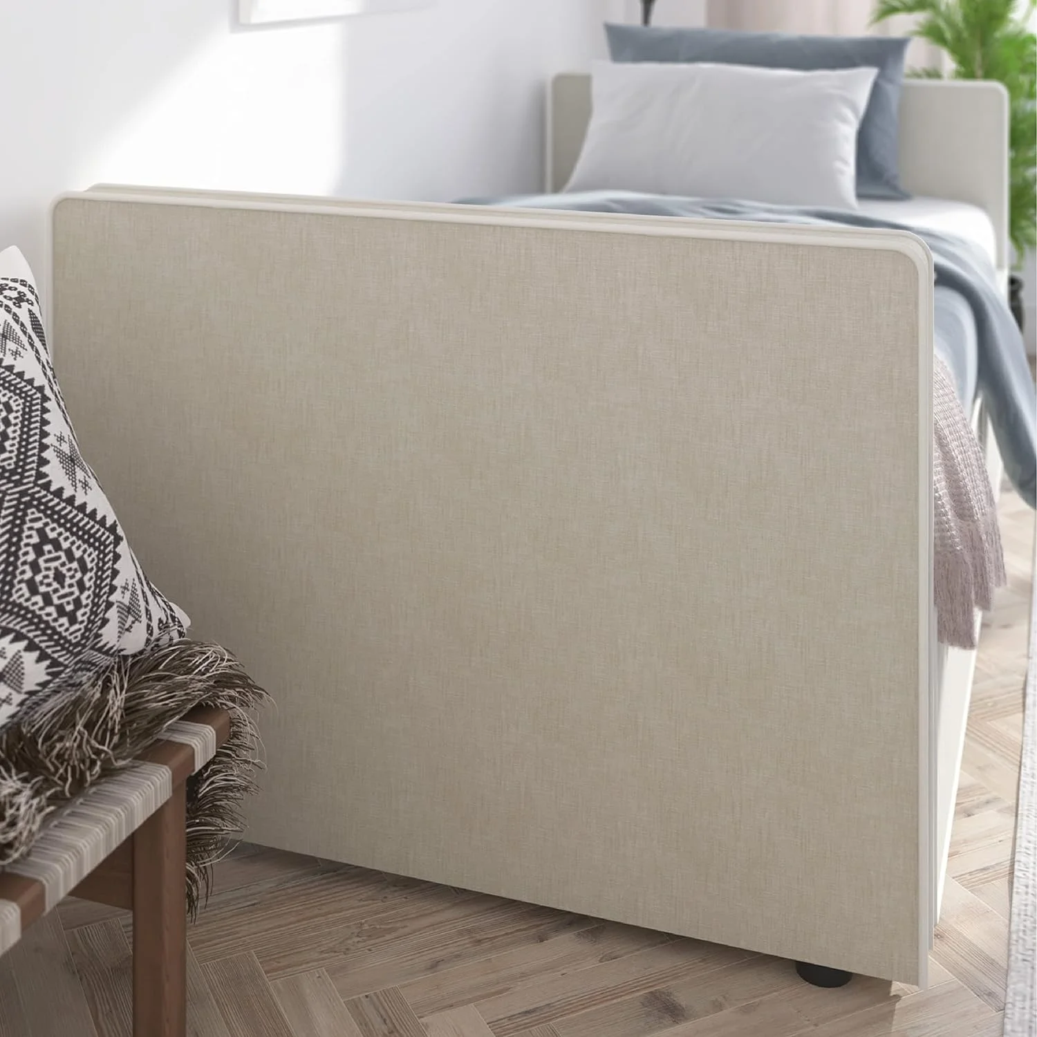 Dcenta Elegant Upholstered Curved Tufted Linen Platform Bed Frame with Diamond Tufted, King, Beige