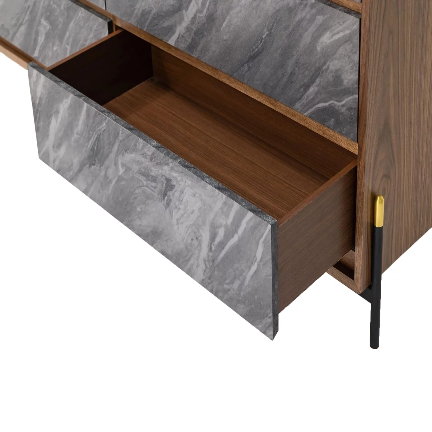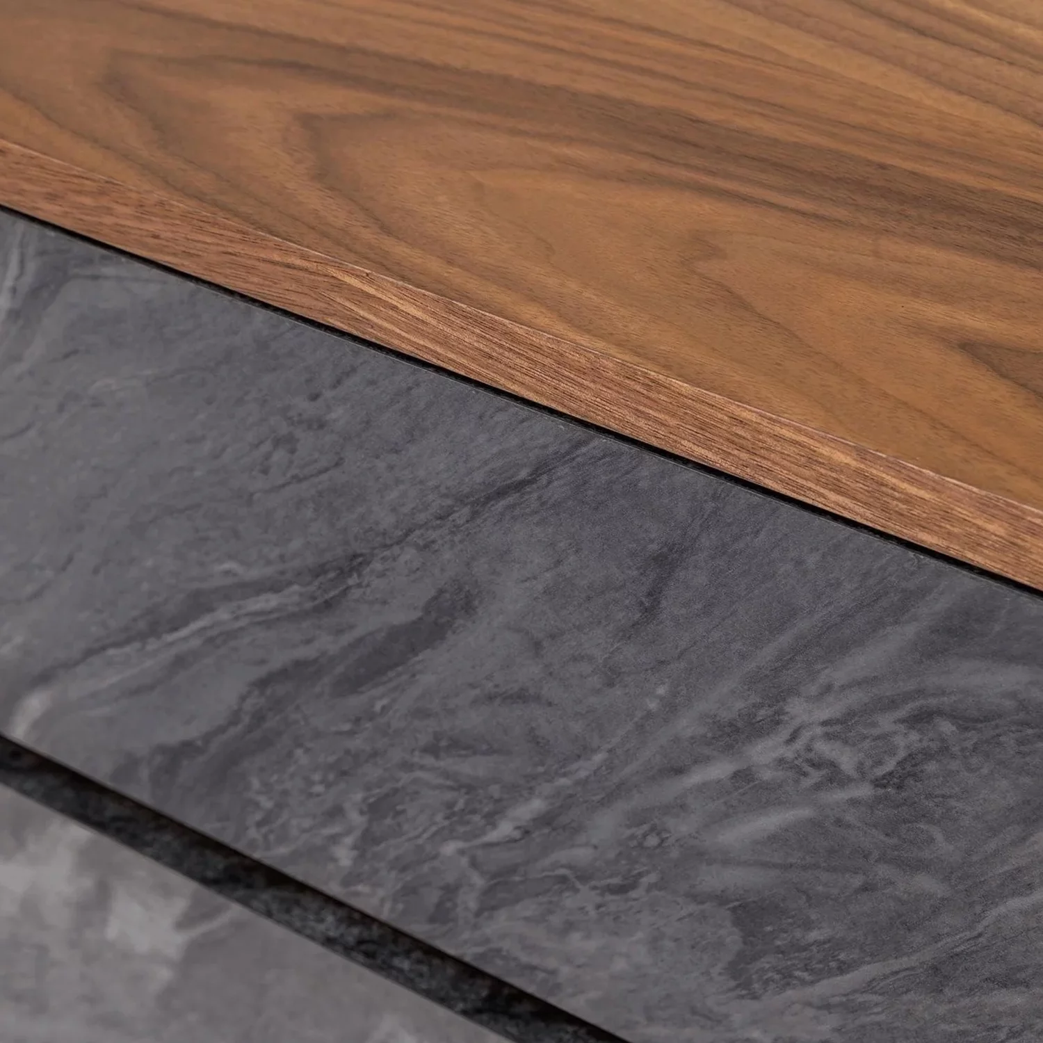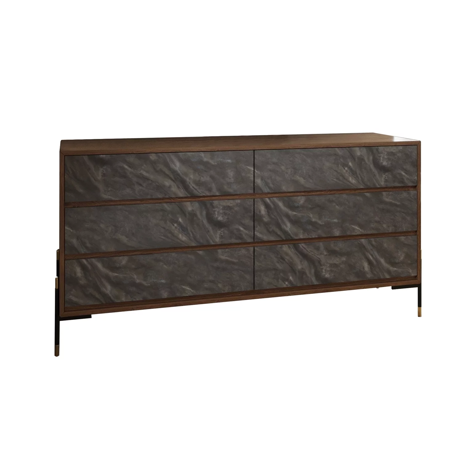 Benjara Noe Sia 63 Inch Dresser, Faux Volcanic Slate Drawer Front, Walnut Veneer