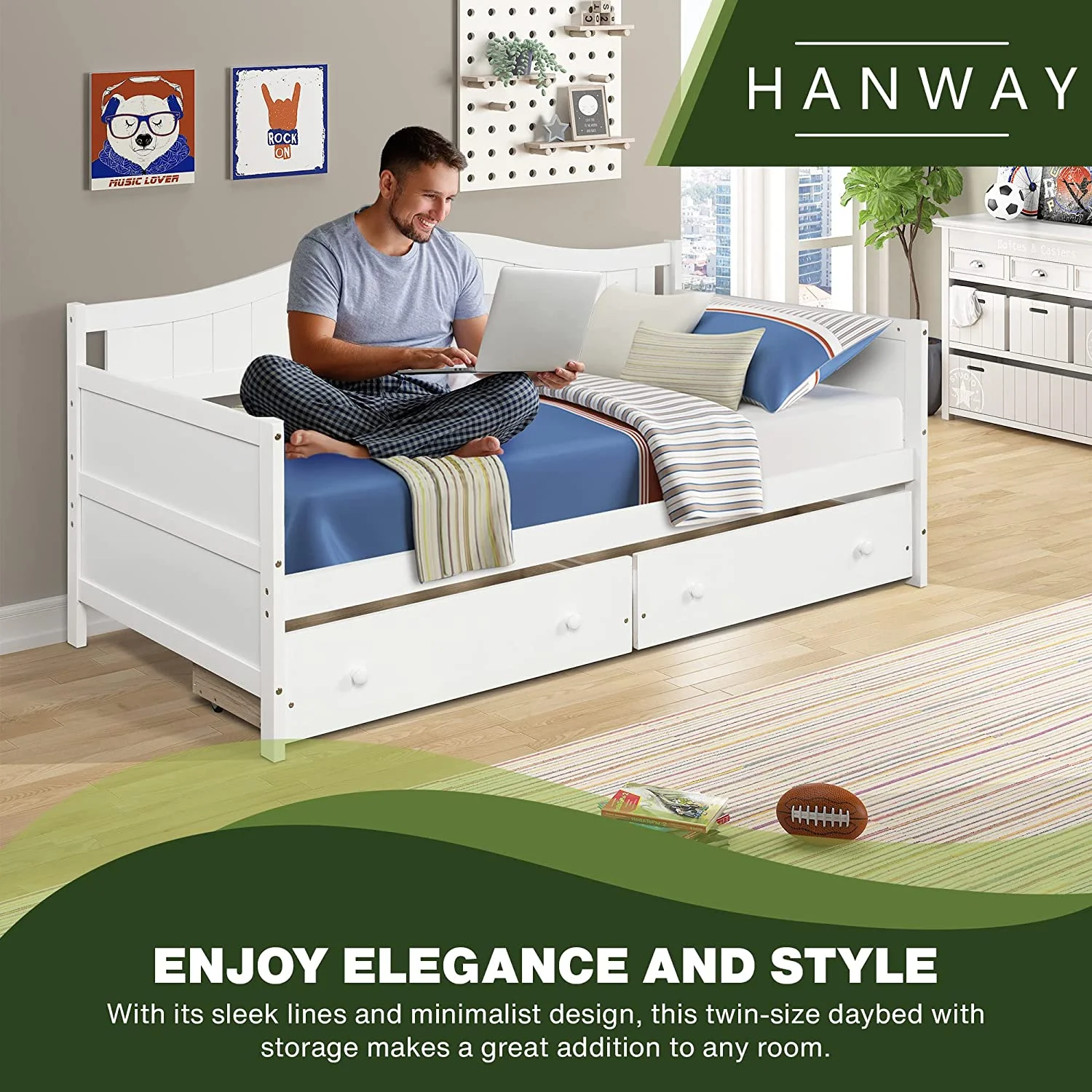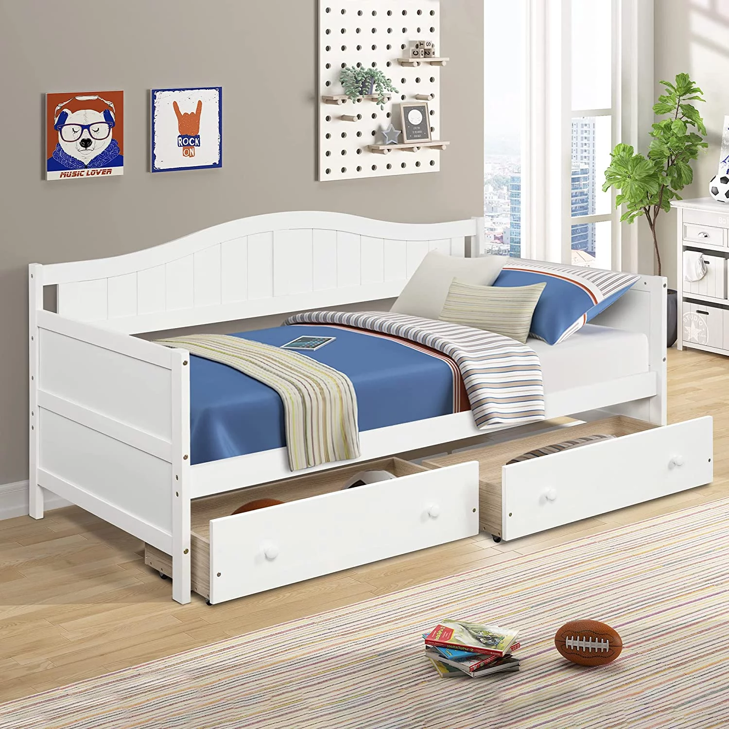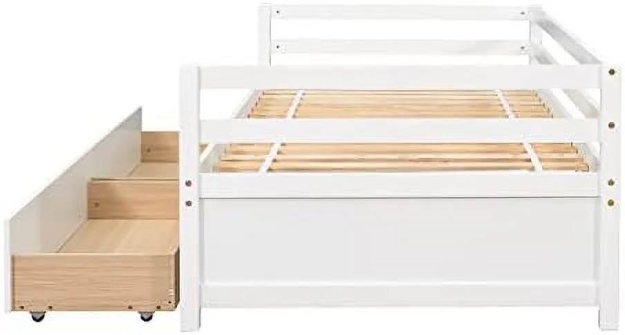 Daybed With Storage Drawers, Solid Wood Captains Bed Size Sofa Bed Platform Bed Frame ( Size, White)