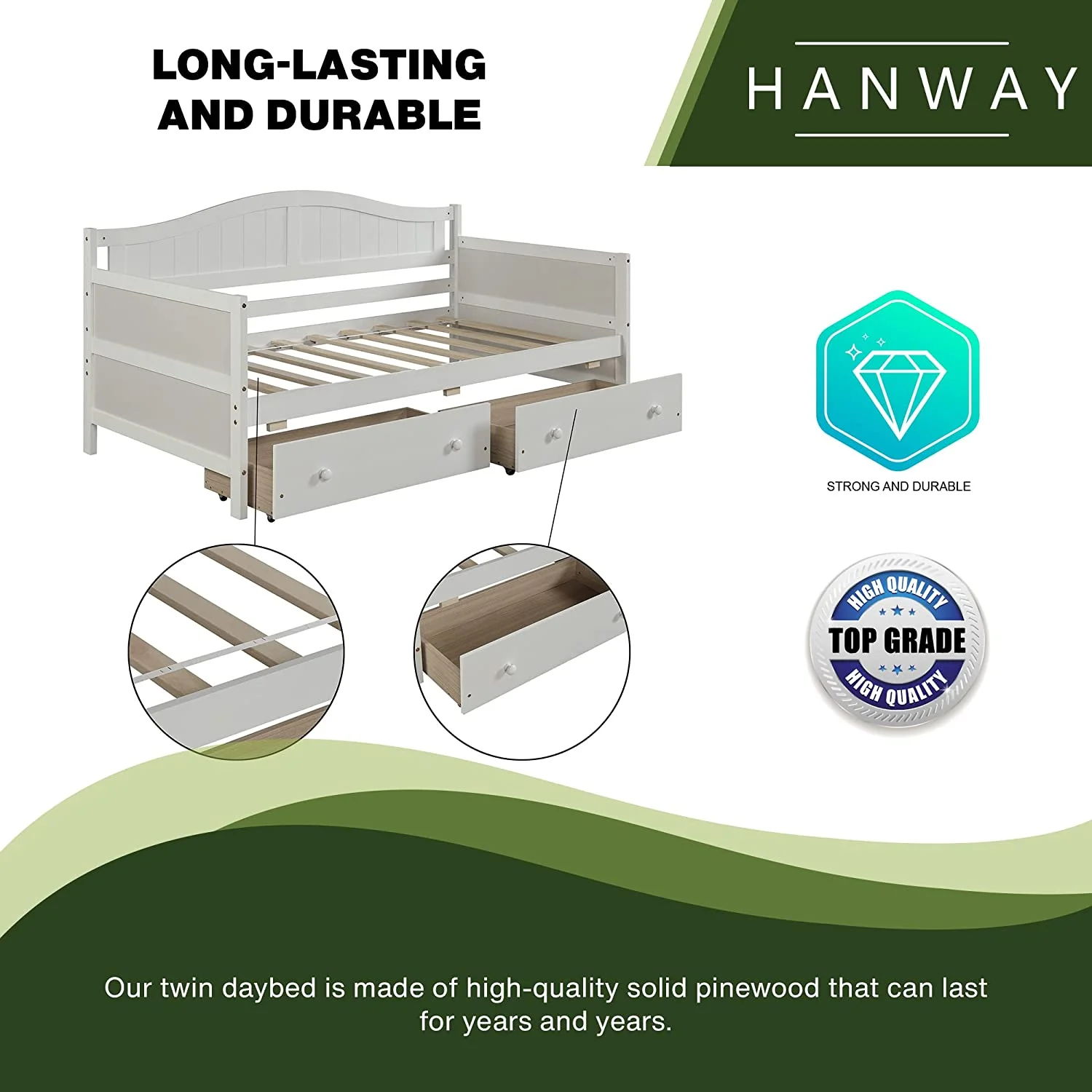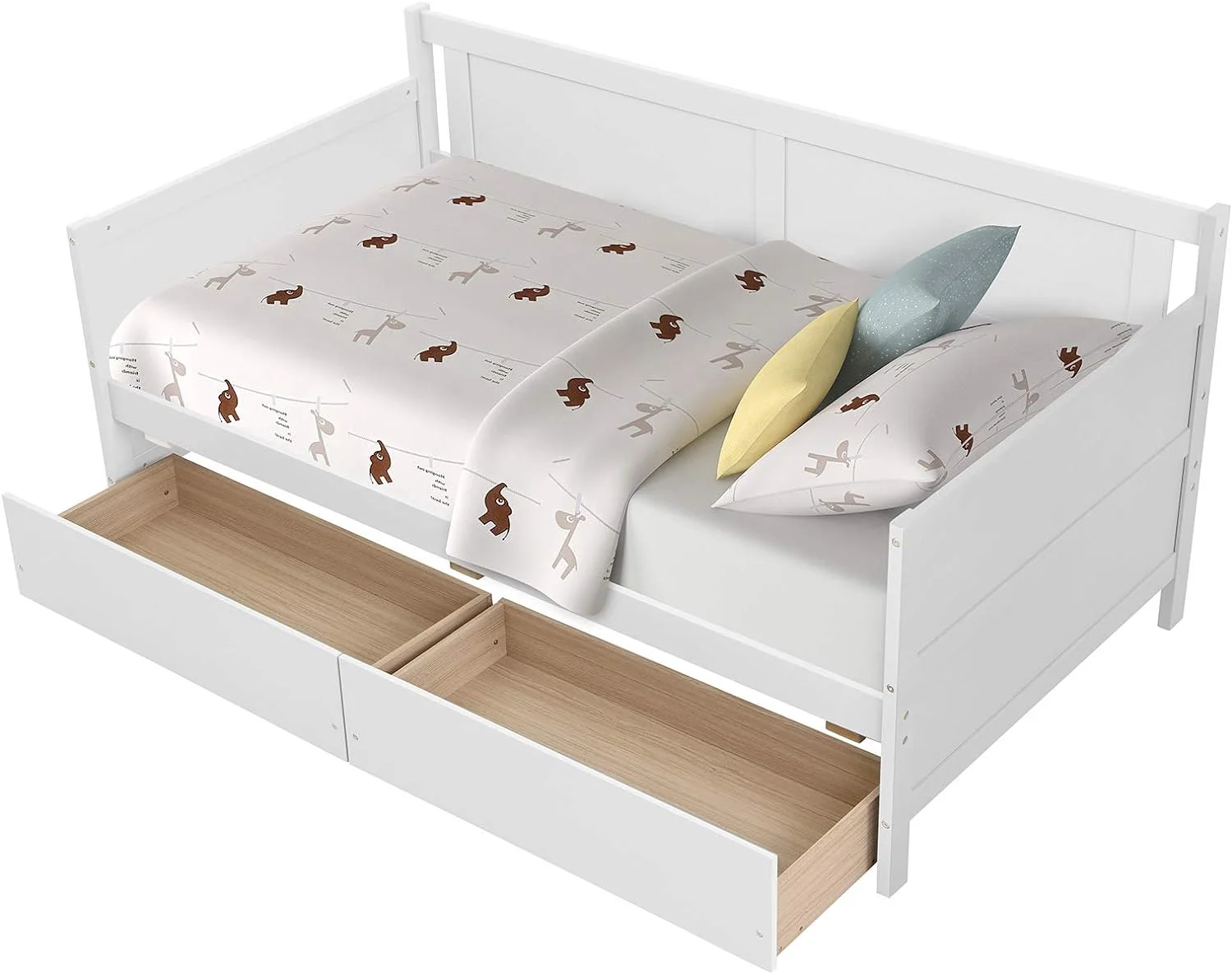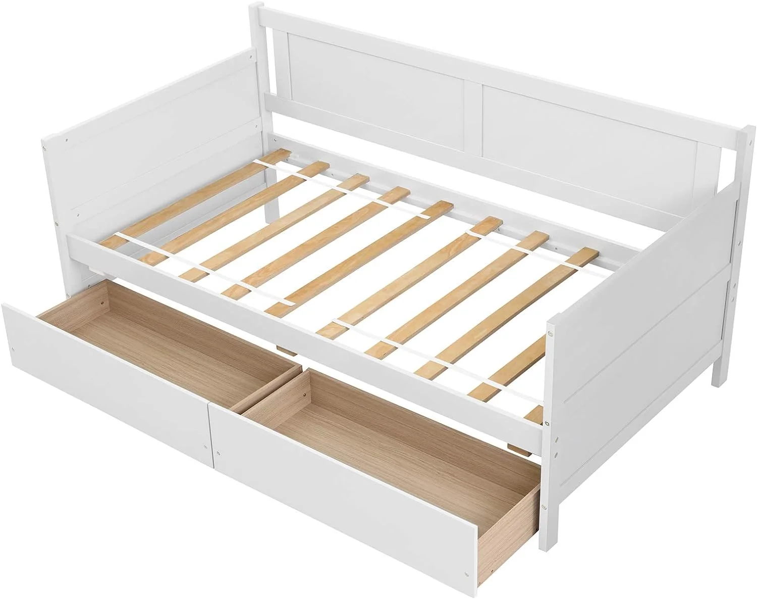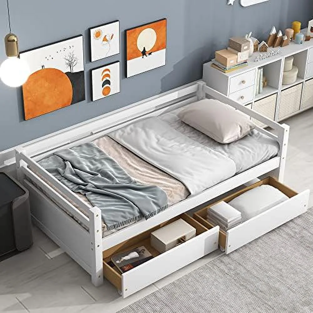 Twin Size Daybed with 2 Storage Drawers Solid Wood Sofa Bed Frame for Bedroom Living Room Apartment White