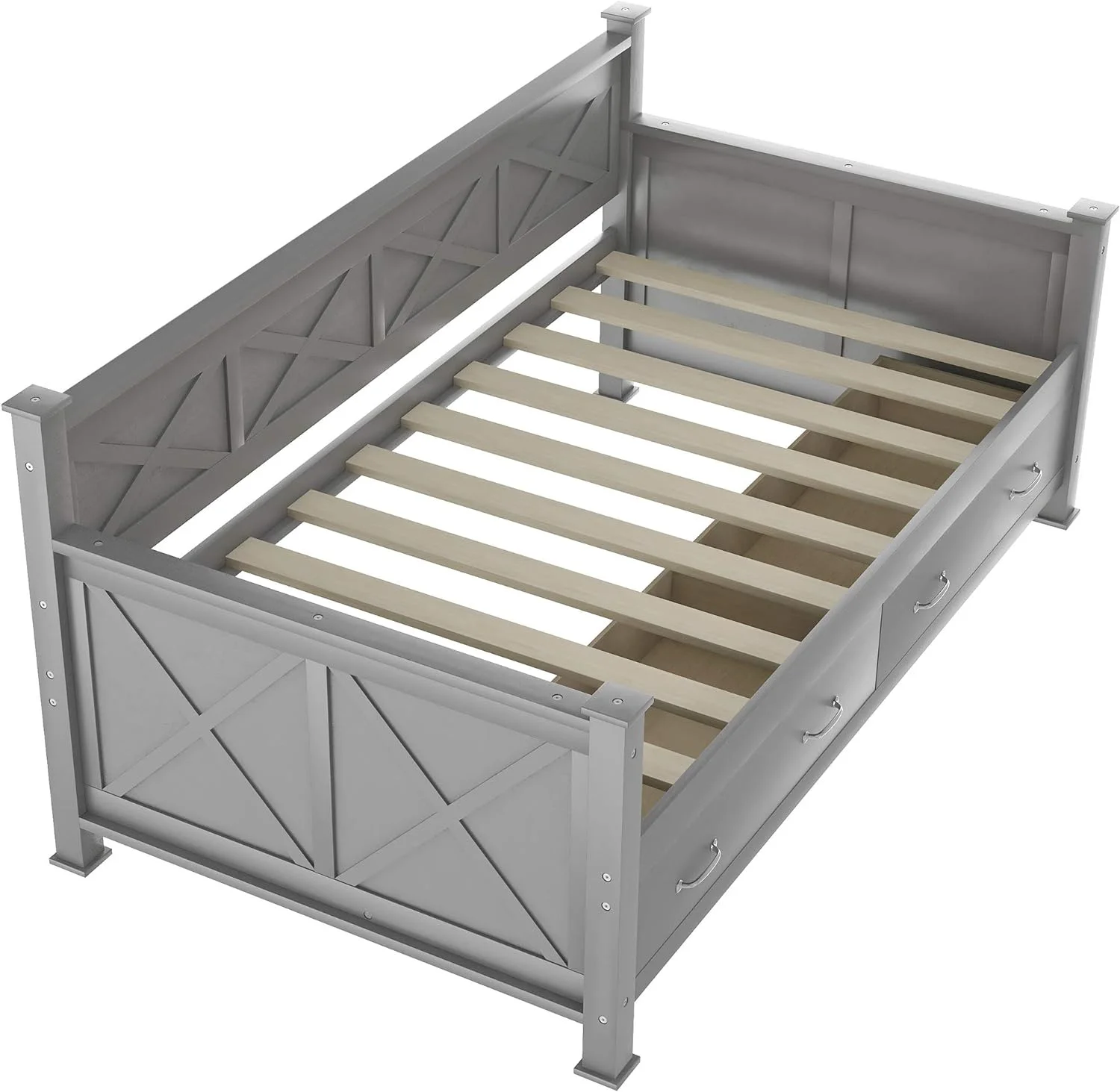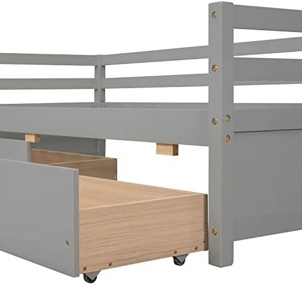 Daybed With Drawers, Wood Daybed Frame With Storage,Modern And Rustic Casual Daybed (Gray)