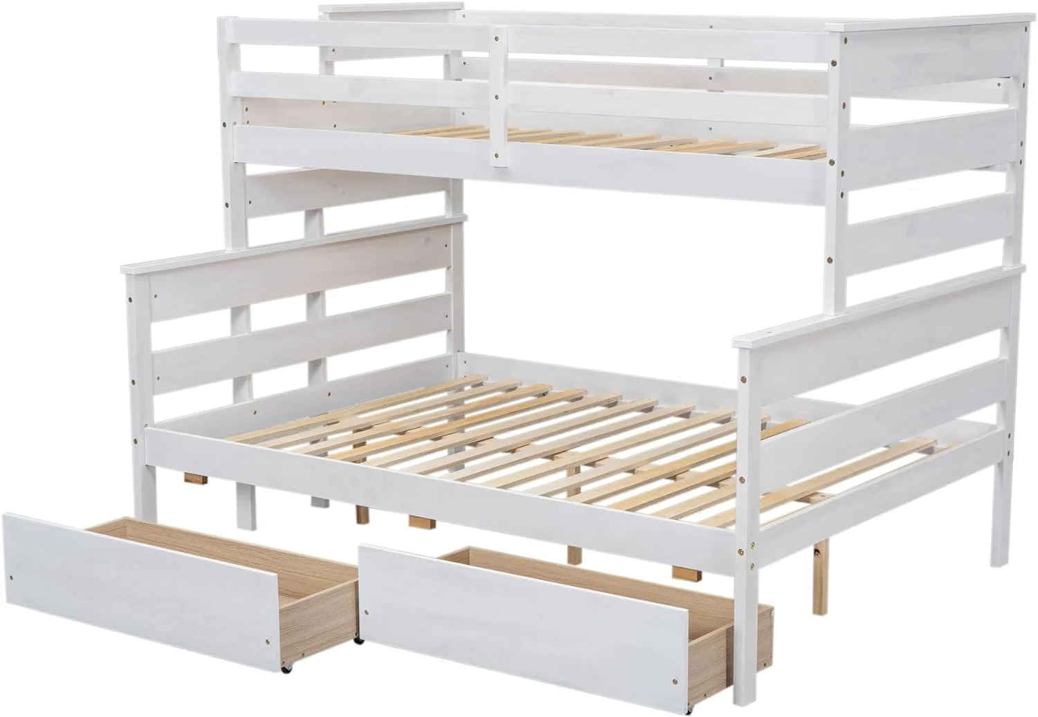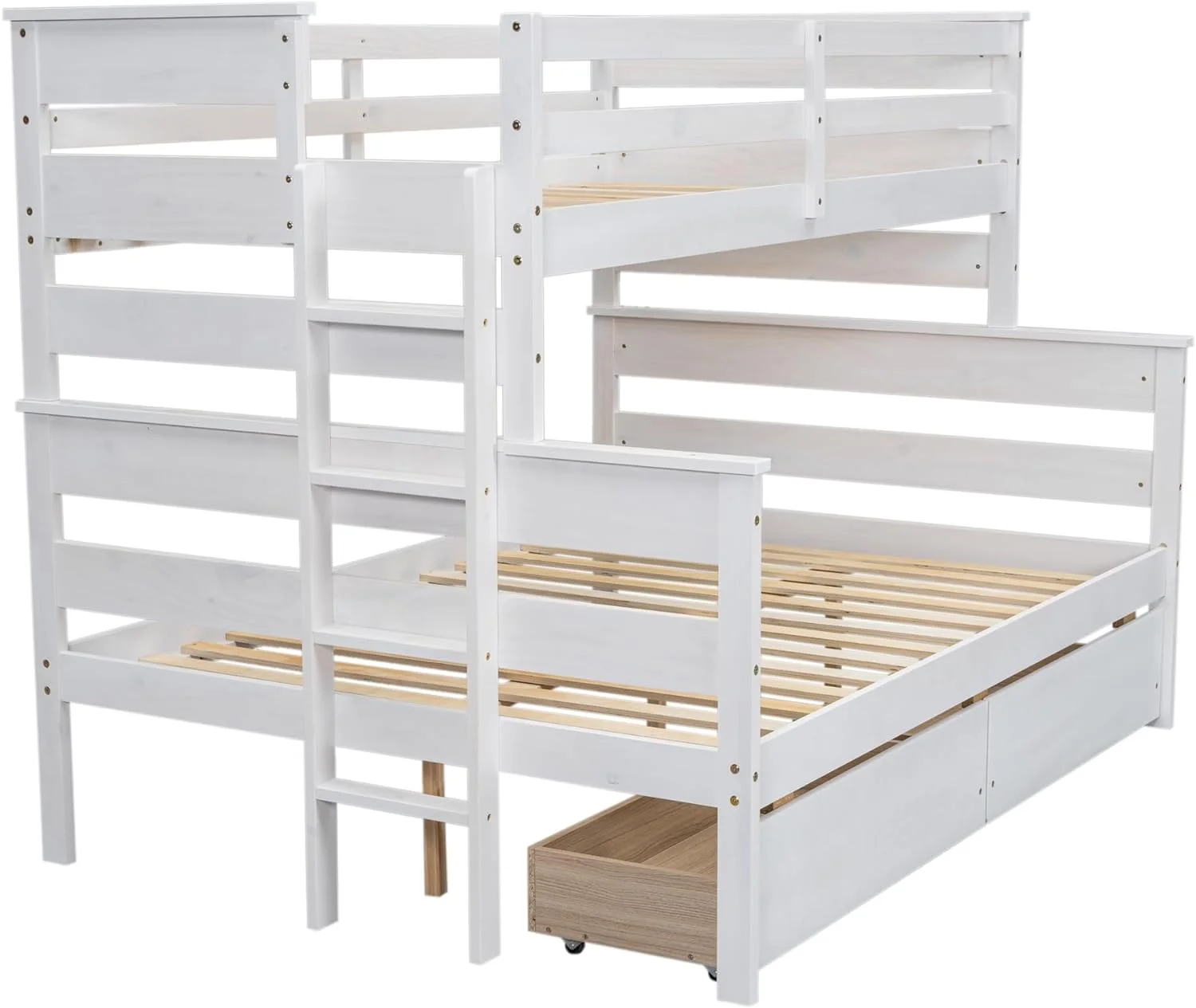 Over Full Buk Bed With Drawers, Wood Buk Bed Frame With Ladder, o Box Sprig eeded, White