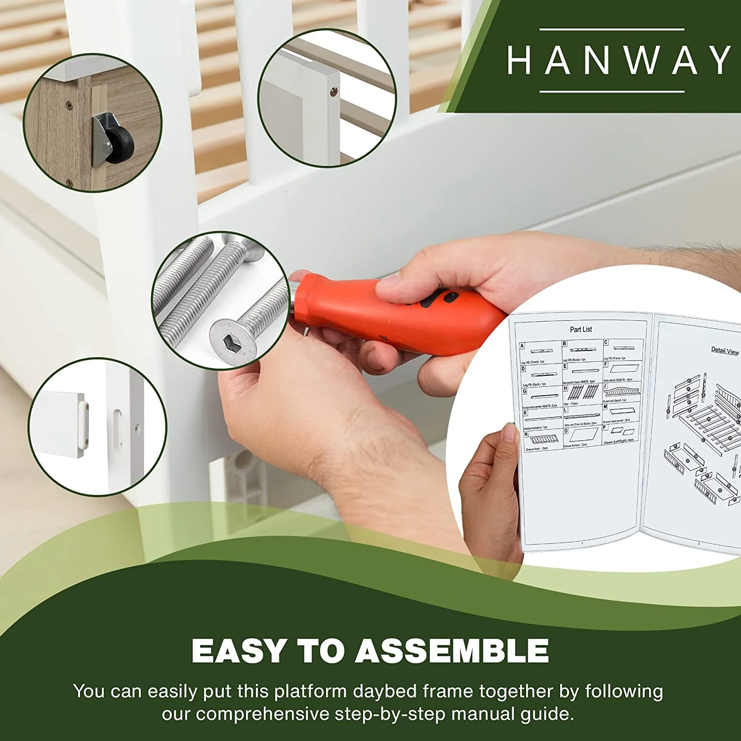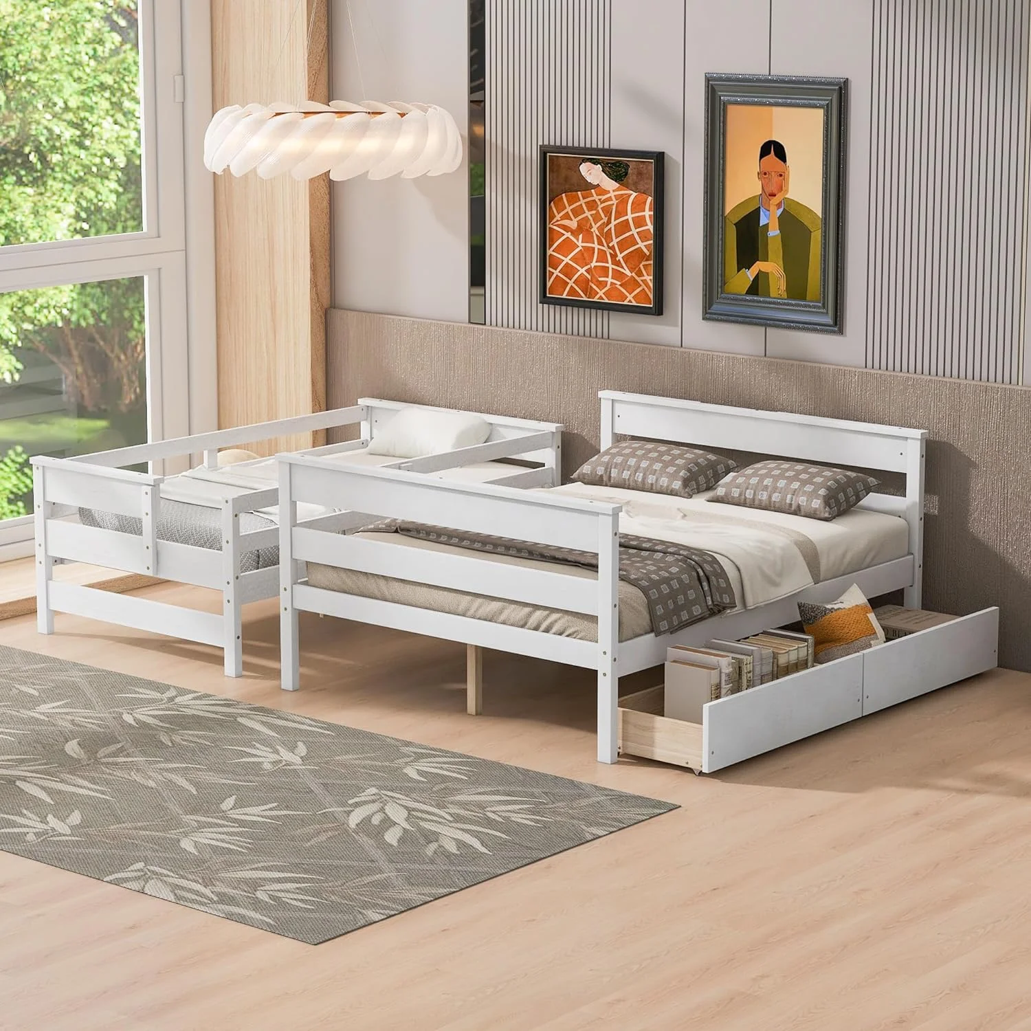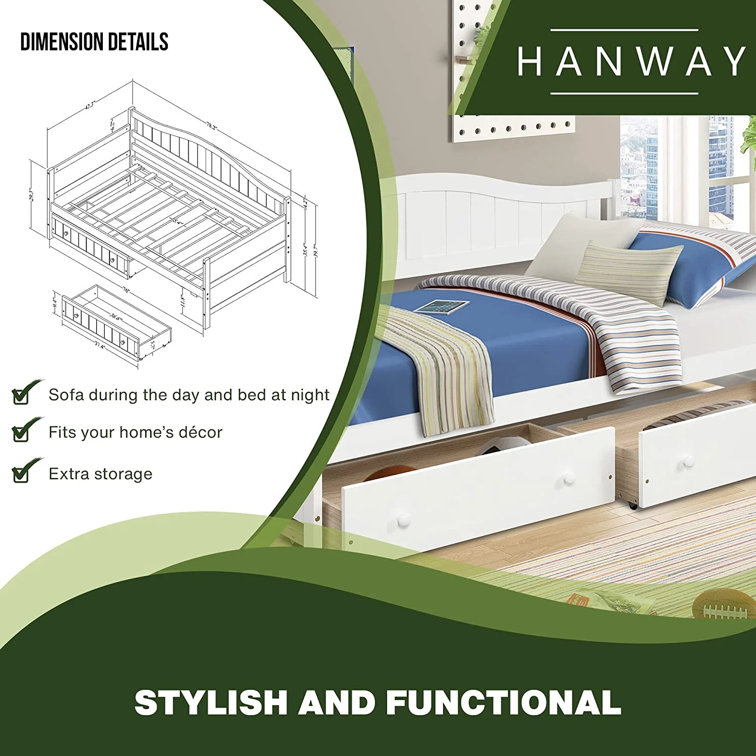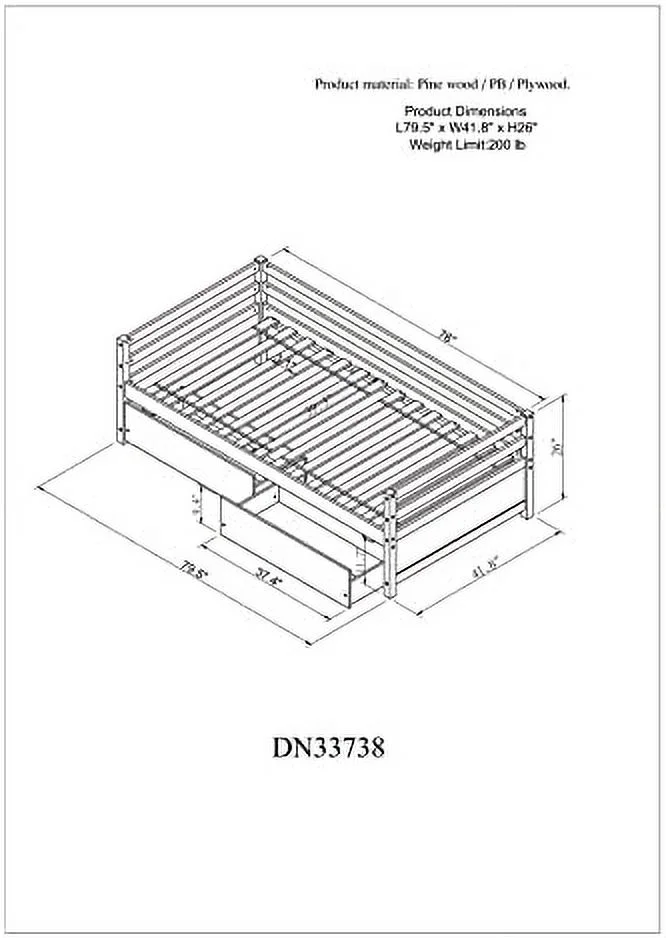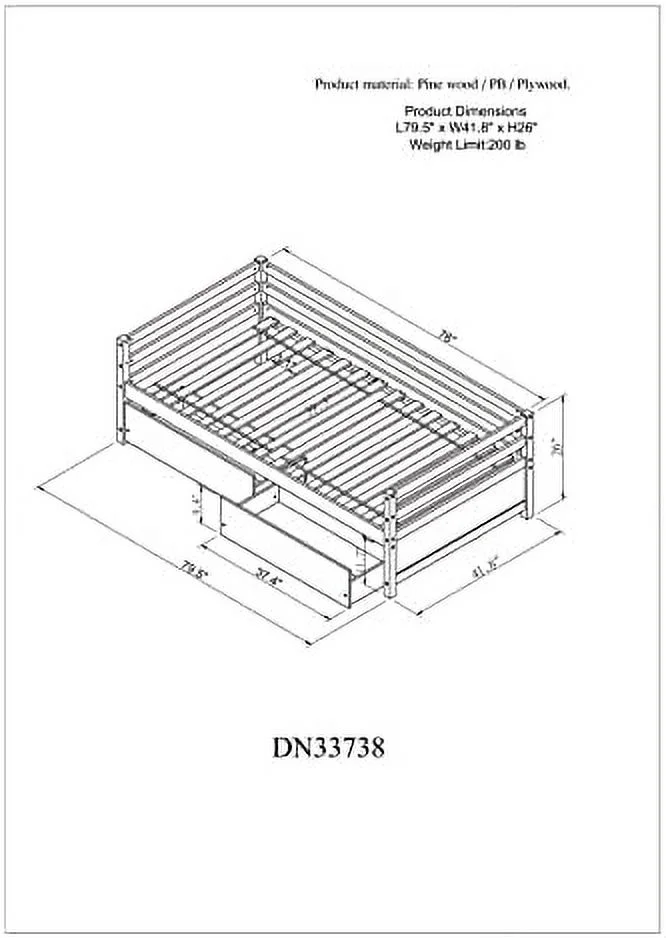 Daybed Wih Sorage Drawers, Solid Wood Capais Bed Size Sofa Bed Plaform Bed Frame ( Size, Whie)