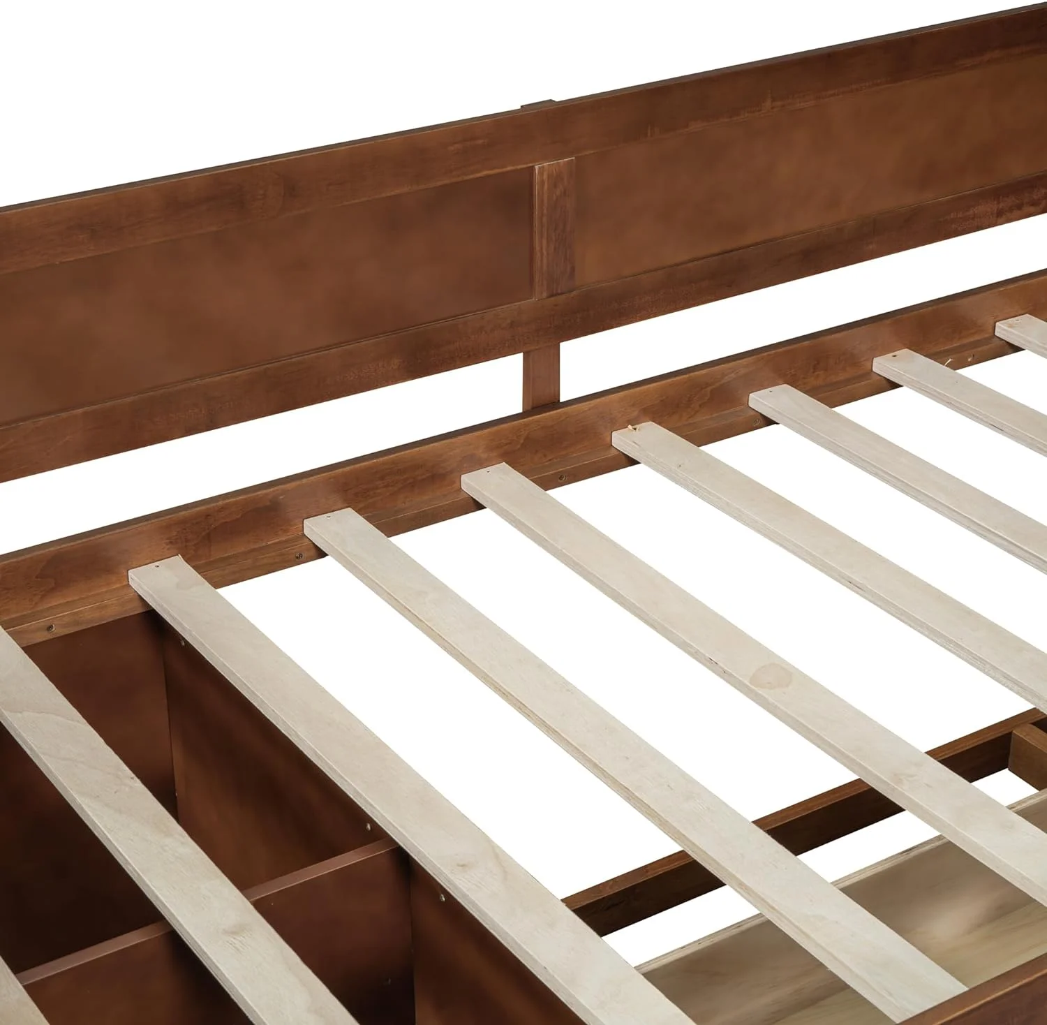 Twin Size Wood Daybed with 4 Storage Drawers and Storage Shelf, Solid Wood Bed Frame for Bedroom, No Box Spring Needed