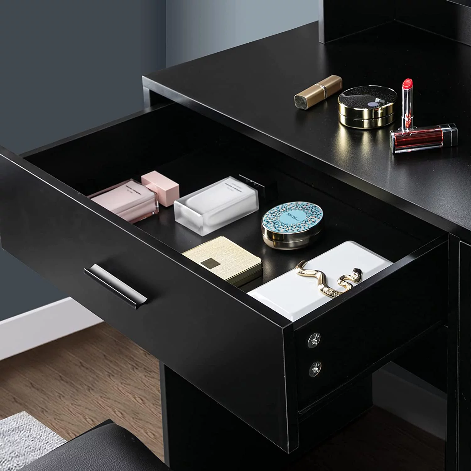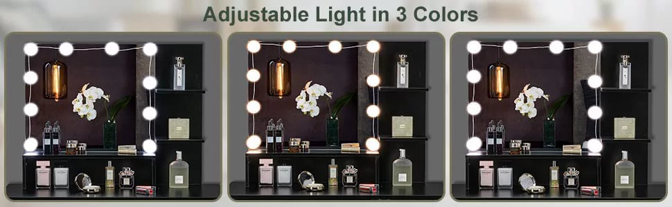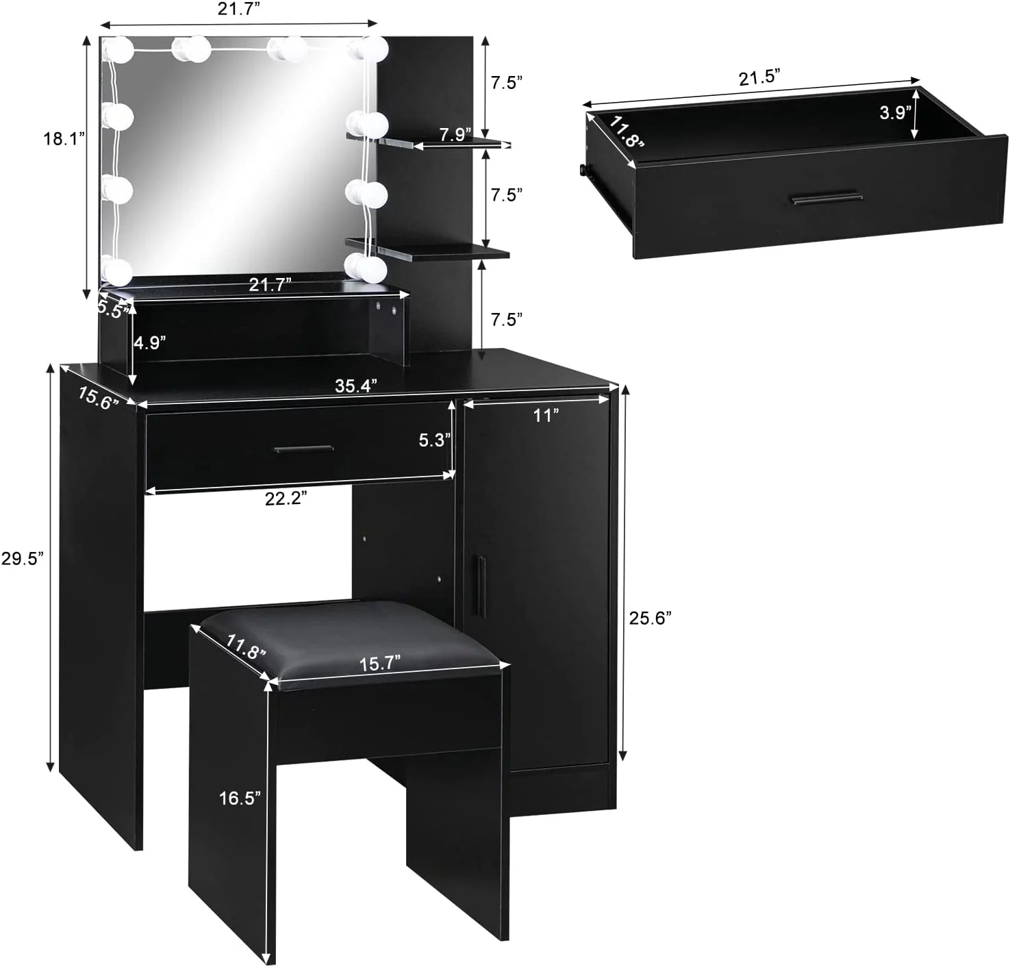 Makeup Vanity Desk with Mirror and Lights Adjustable Brightness 3 Color Modes for Bedroom Black