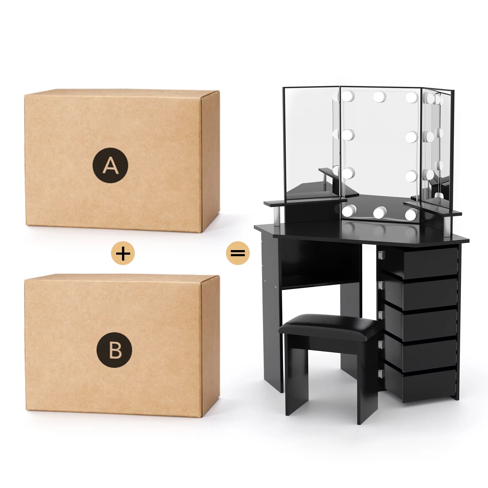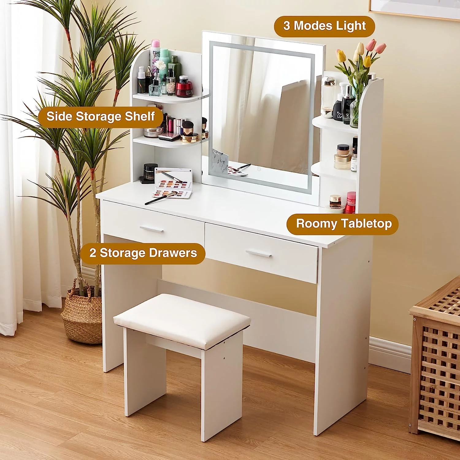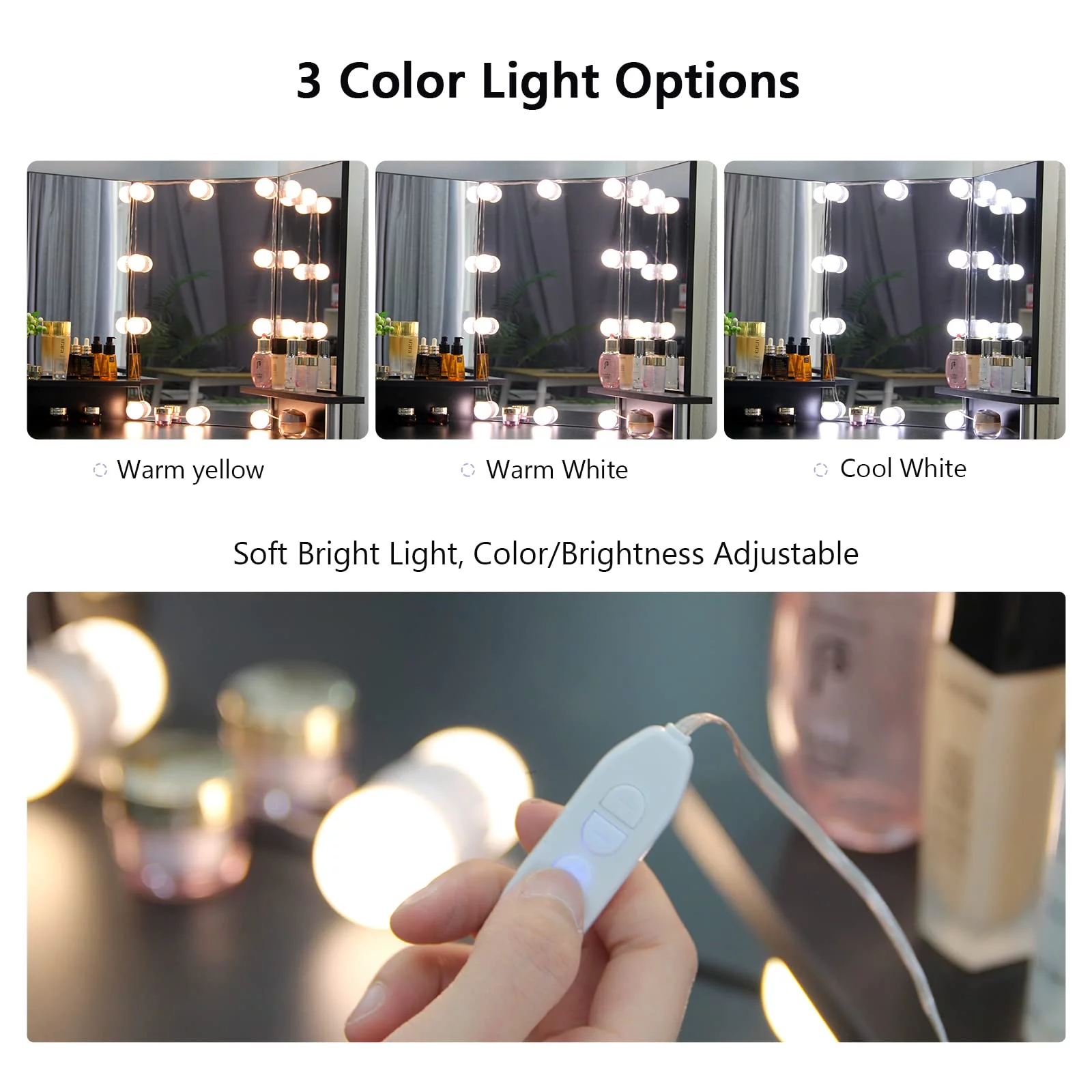 Makeup Vanity Desk with Mirror and Lights Adjustable Brightness 3 Color Modes for Bedroom Black