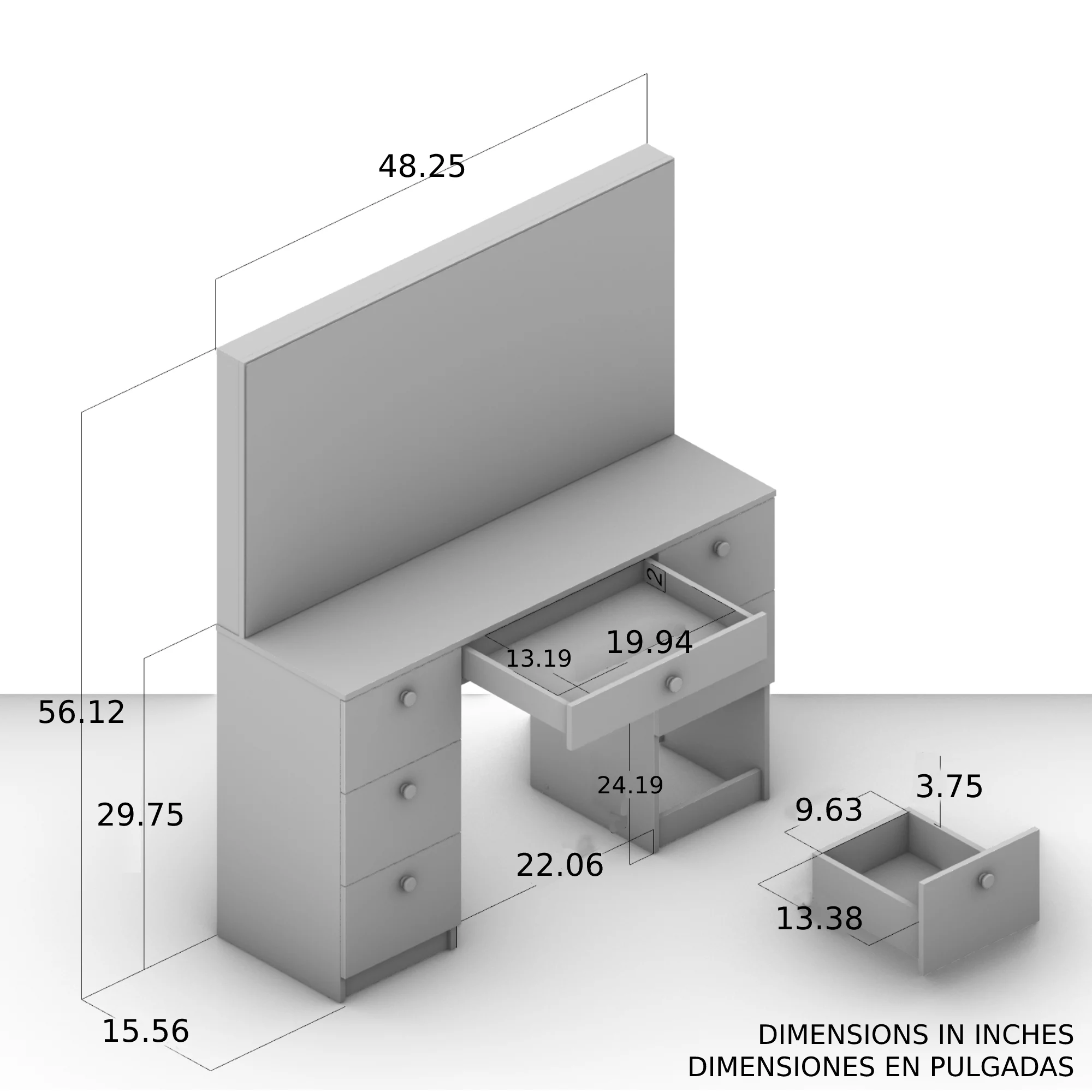 Ember Interiors Ghada Modern Painted Vanity Table, Lights, for Bedroom