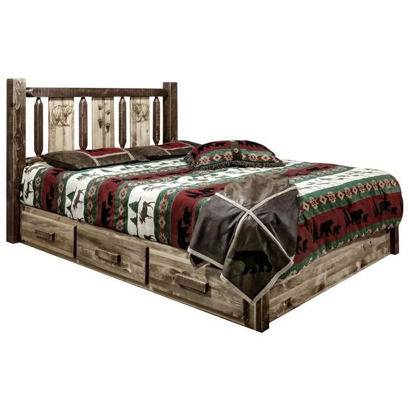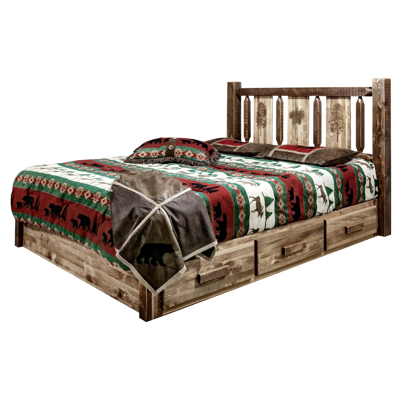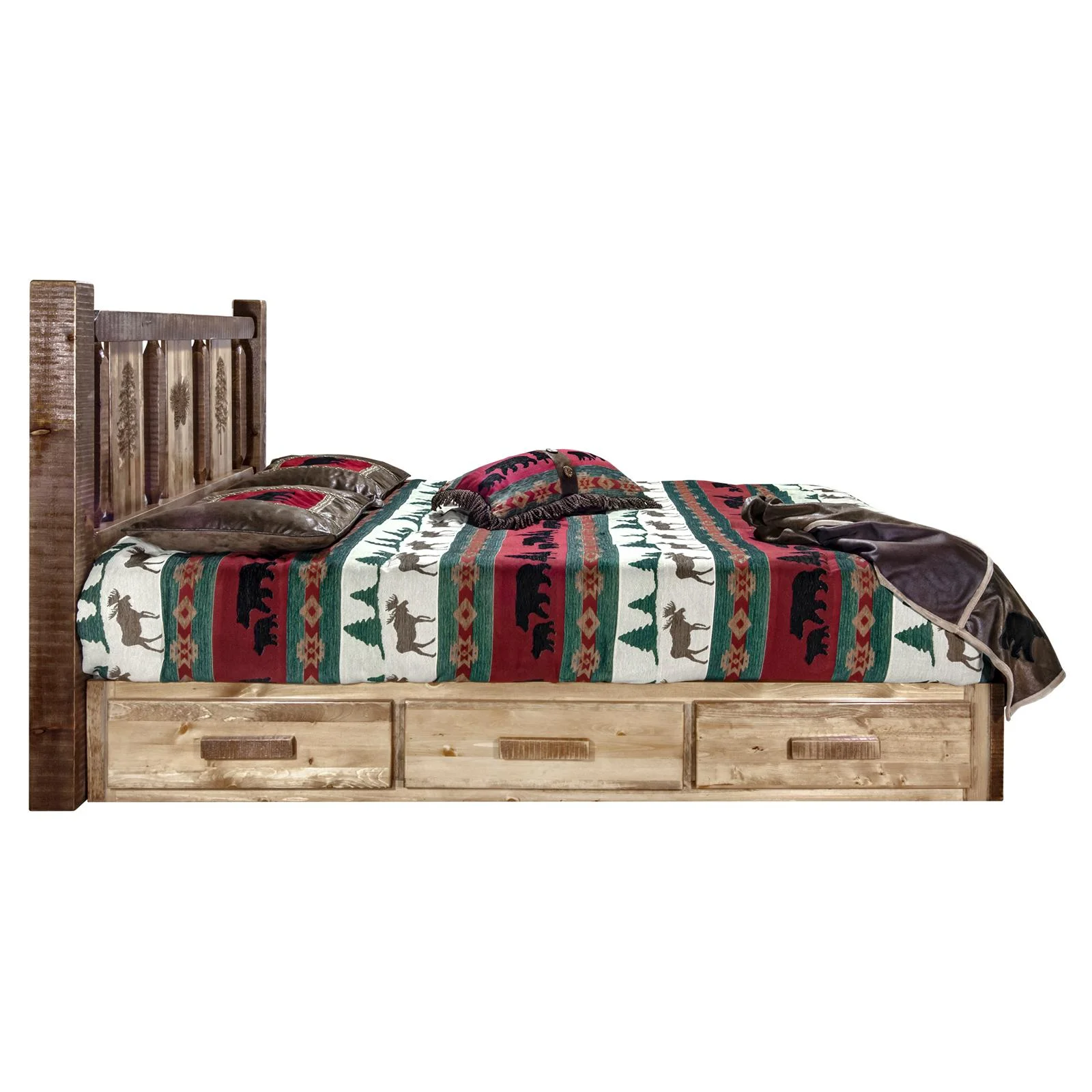 Glacier Country Collection Queen Storage Bed w/ Laser Engraved Elk Design