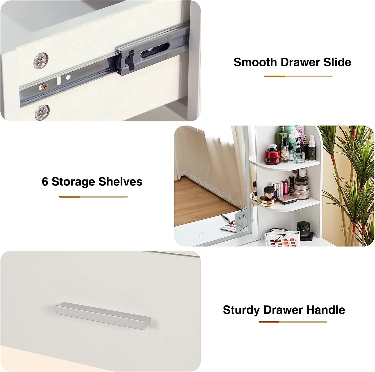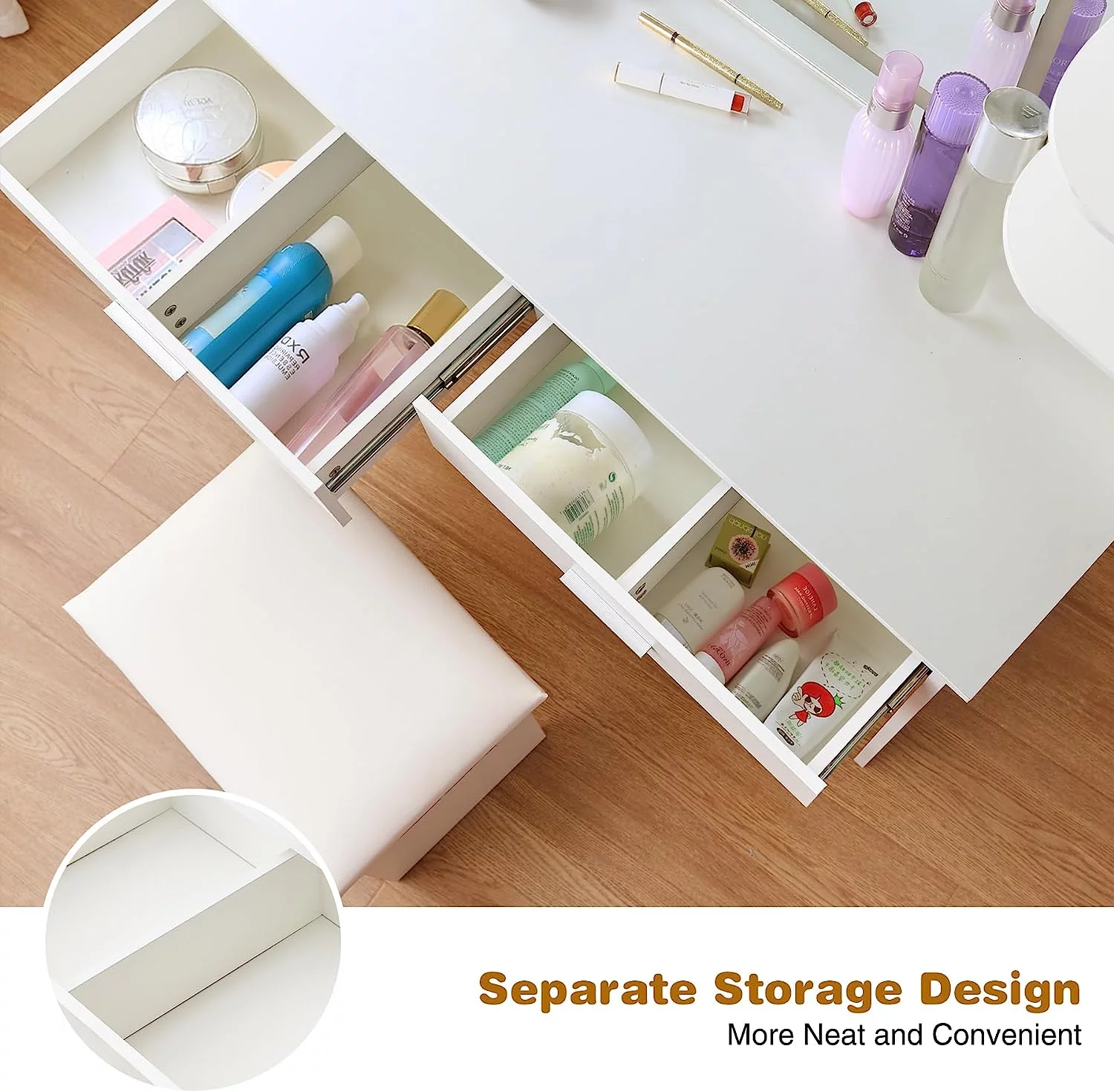 REDCAMP Vanity Set with Lighted Mirror, Makeup Vanity Desk with Drawers Padded Stool, White