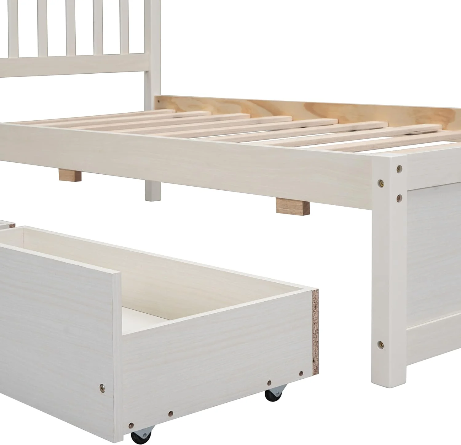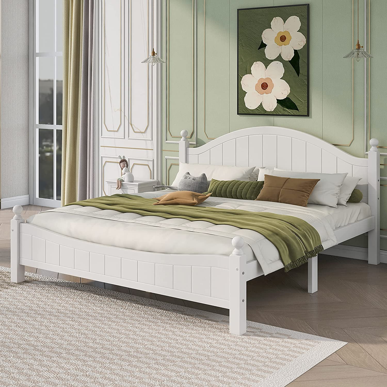 Quee Size Platform Bed With 4 Drawers, Woode Quee Platform Bed Frame With Support Legs, o Box Sprig eeded, White