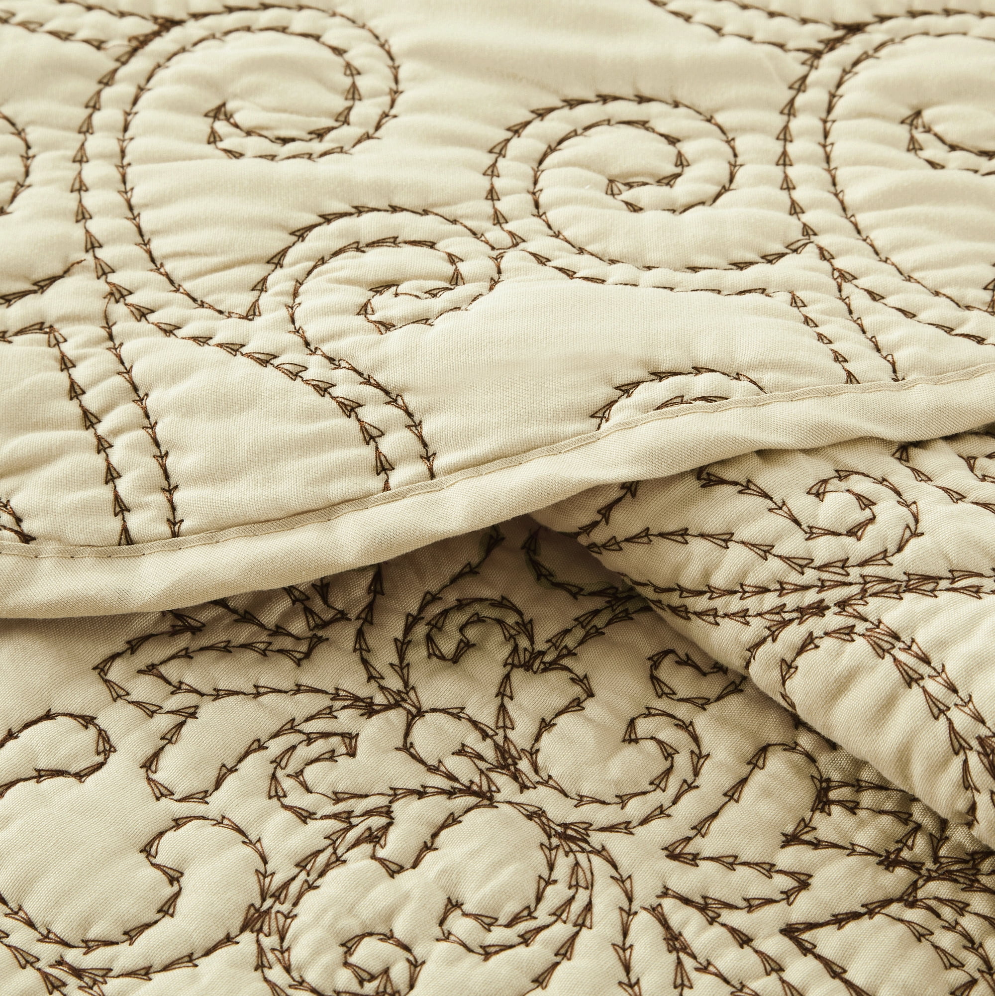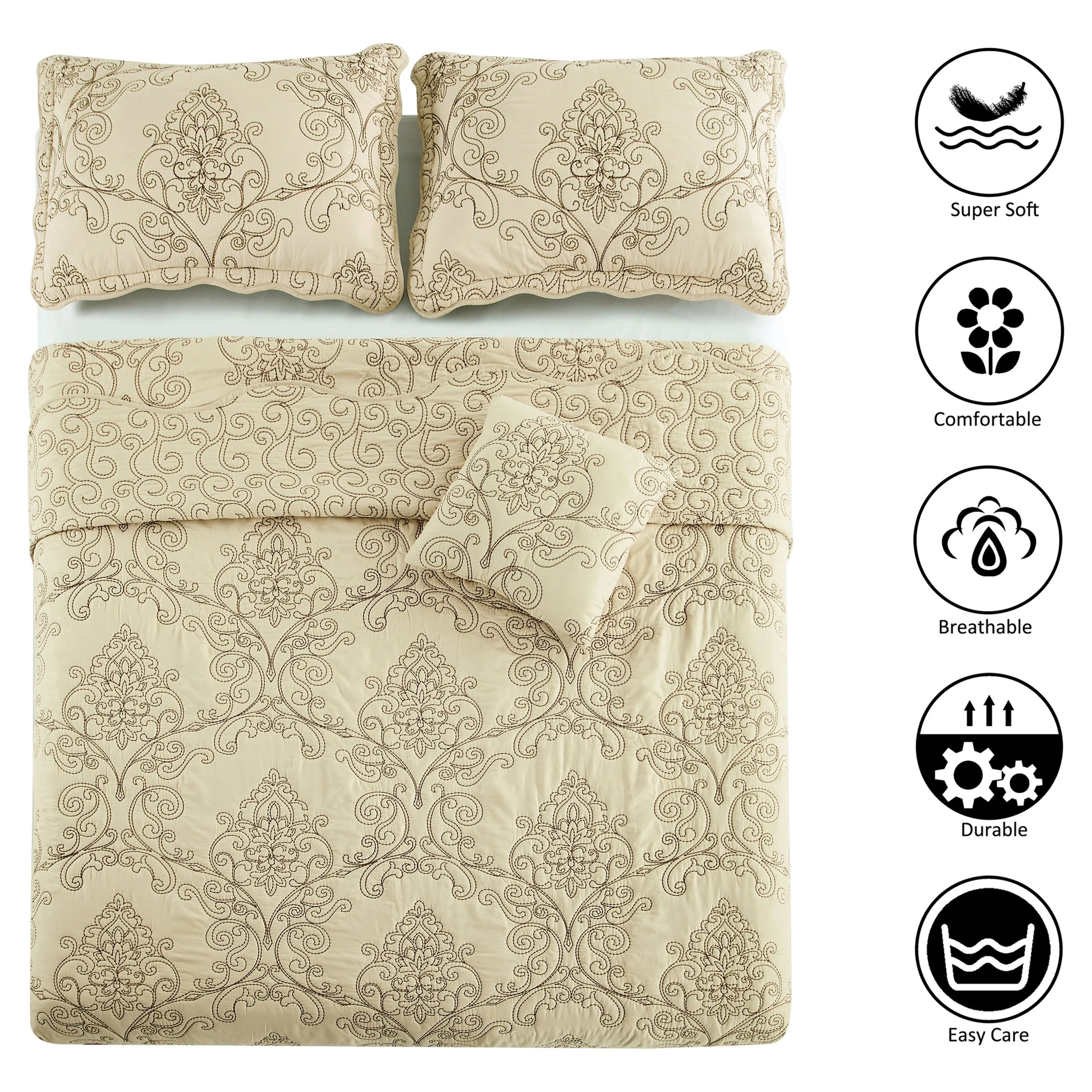 Home Soft Things 4 Piece Damask Embroidery Bedspread Set - Beige - Oversize King (120" x 120")