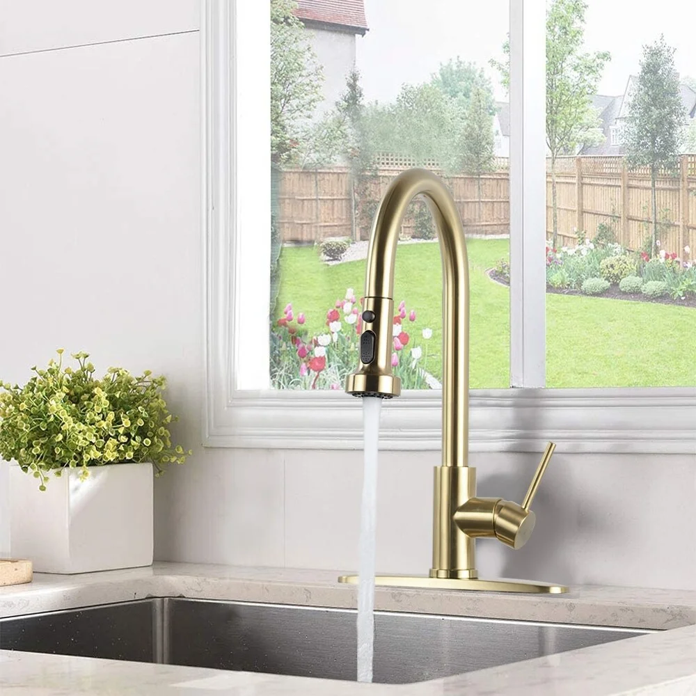 DORNBERG SUS 304 Stainless Steel Kitchen Faucet with Pull Down Sprayer Brushed Gold Brushed