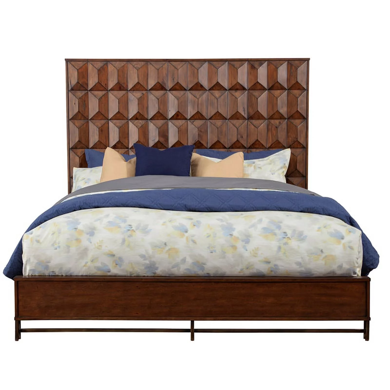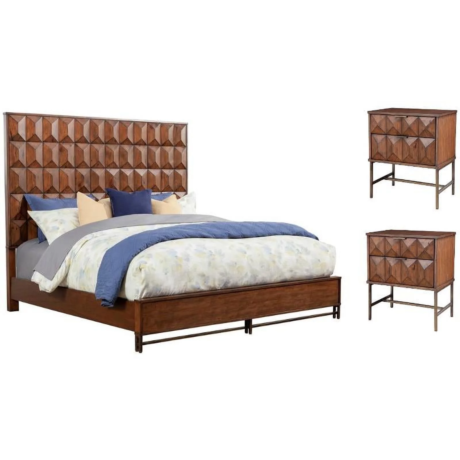 3 Piece Fannin Platform Queen Size Bedroom Set - Mist Beige, Black & Distressed Jacobean