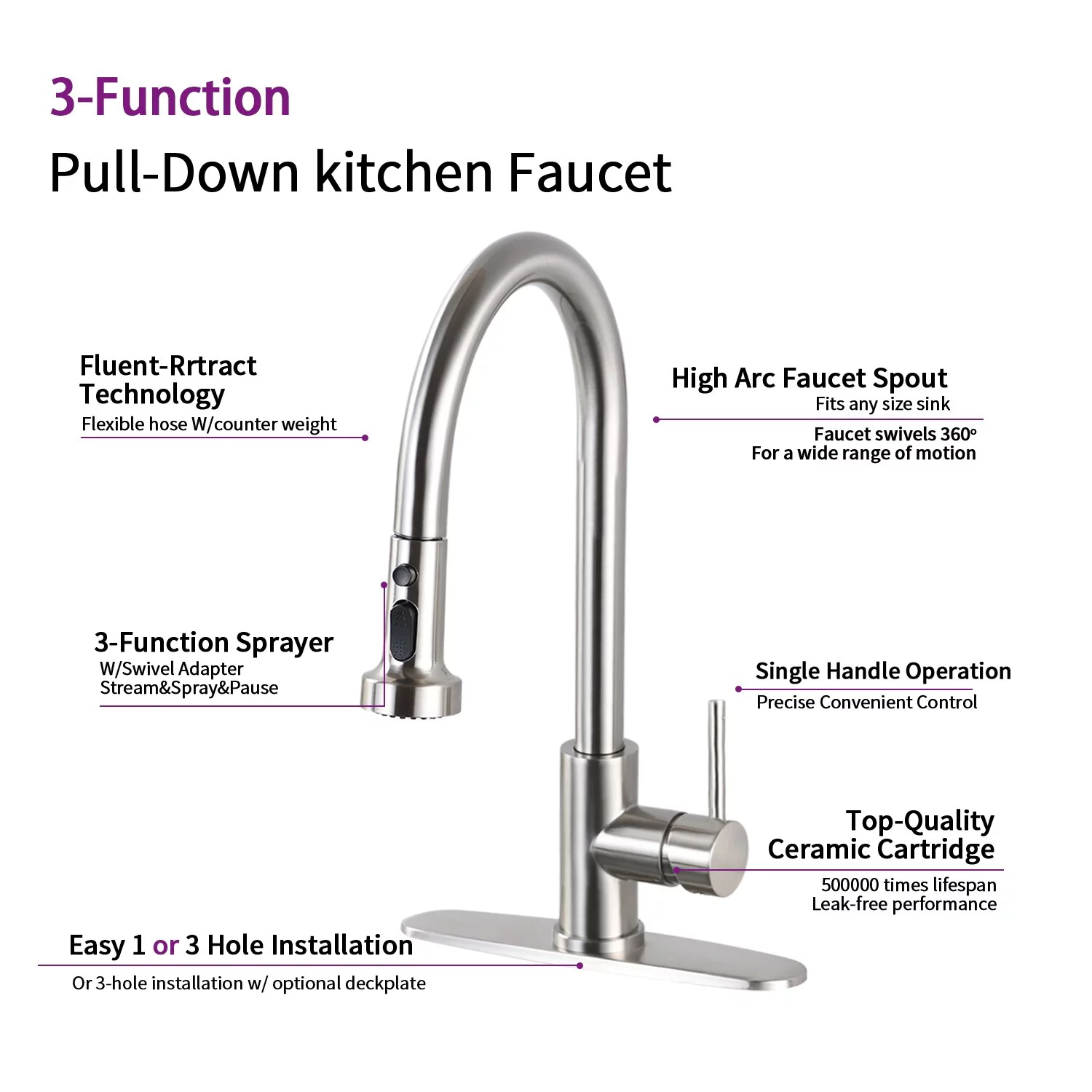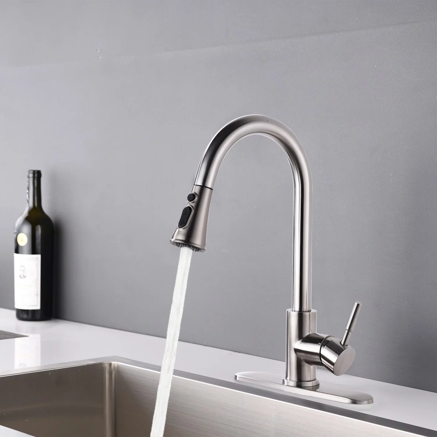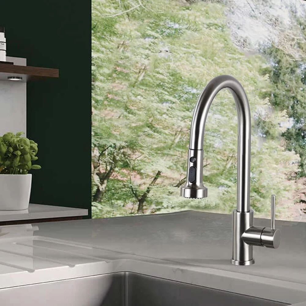 DORNBERG Stainless Steel Pull Down Kitchen Faucet with Sprayer Brushed Nickel Brushed