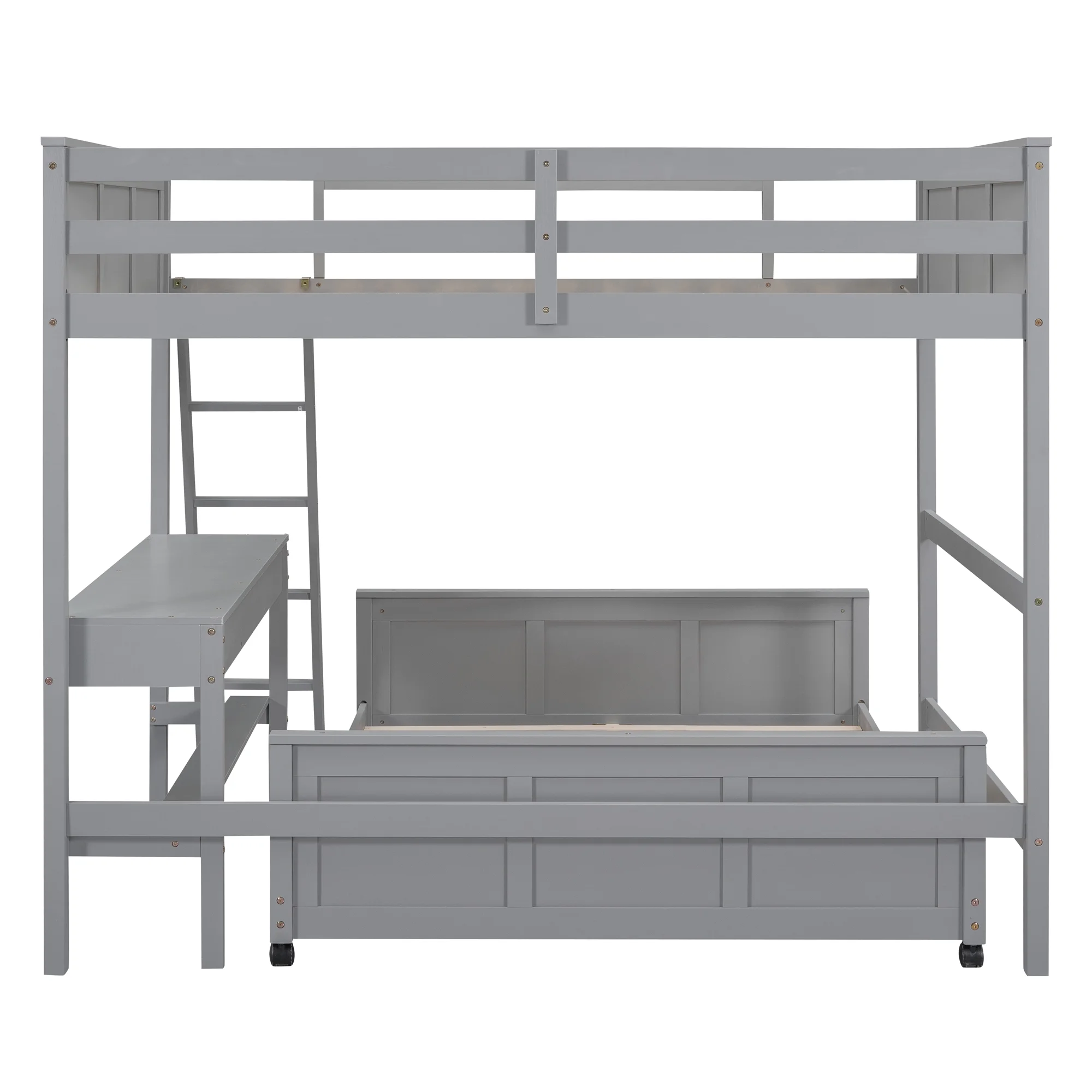 GUTALOR Full Over Full Bunk Bed with Desk - Space-Saving Gray Metal Bunk Bed for Kids/Teens
