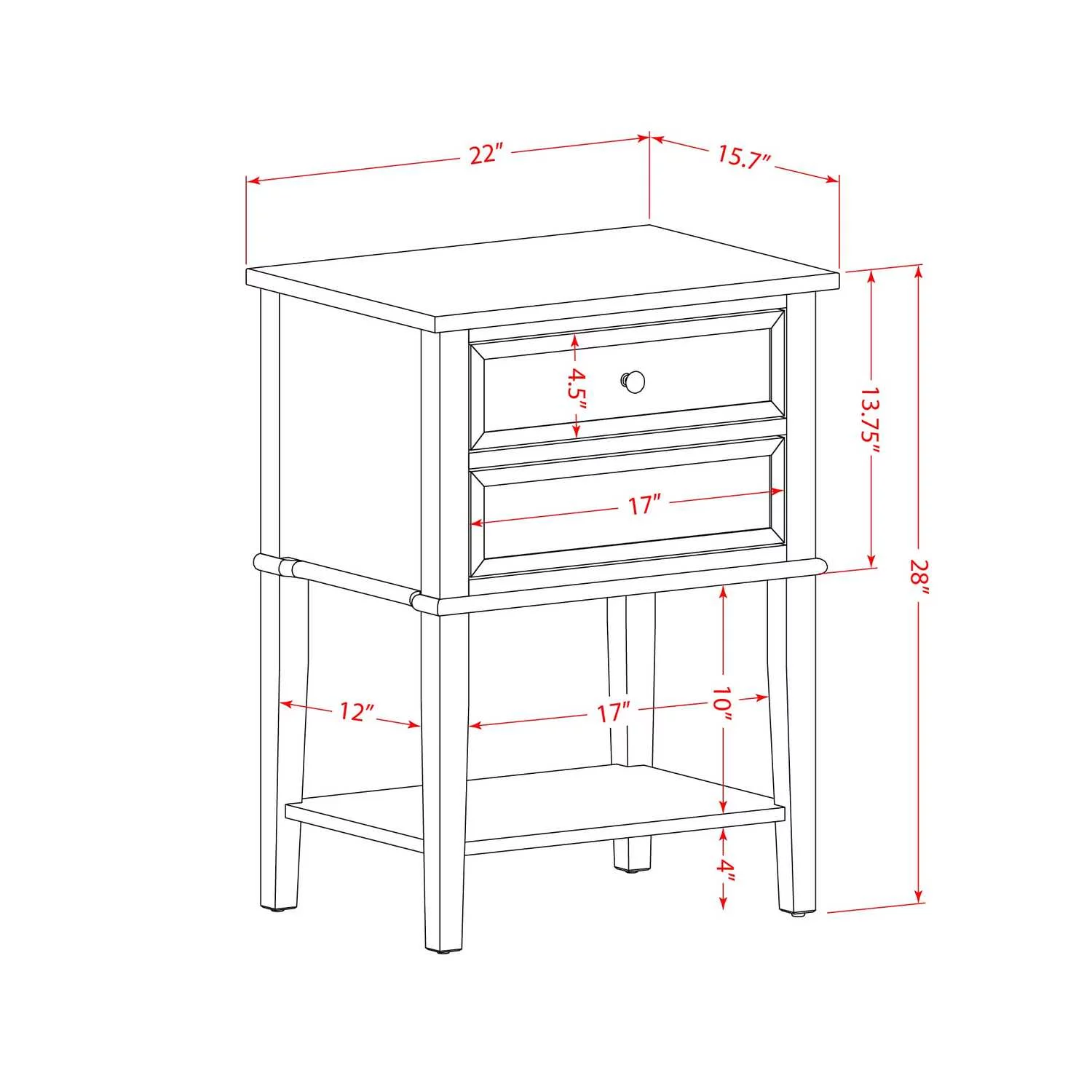 Benton Technology Kerrogee 4-Drawer Dresser - Wood Storage Chest - Walnut/White White