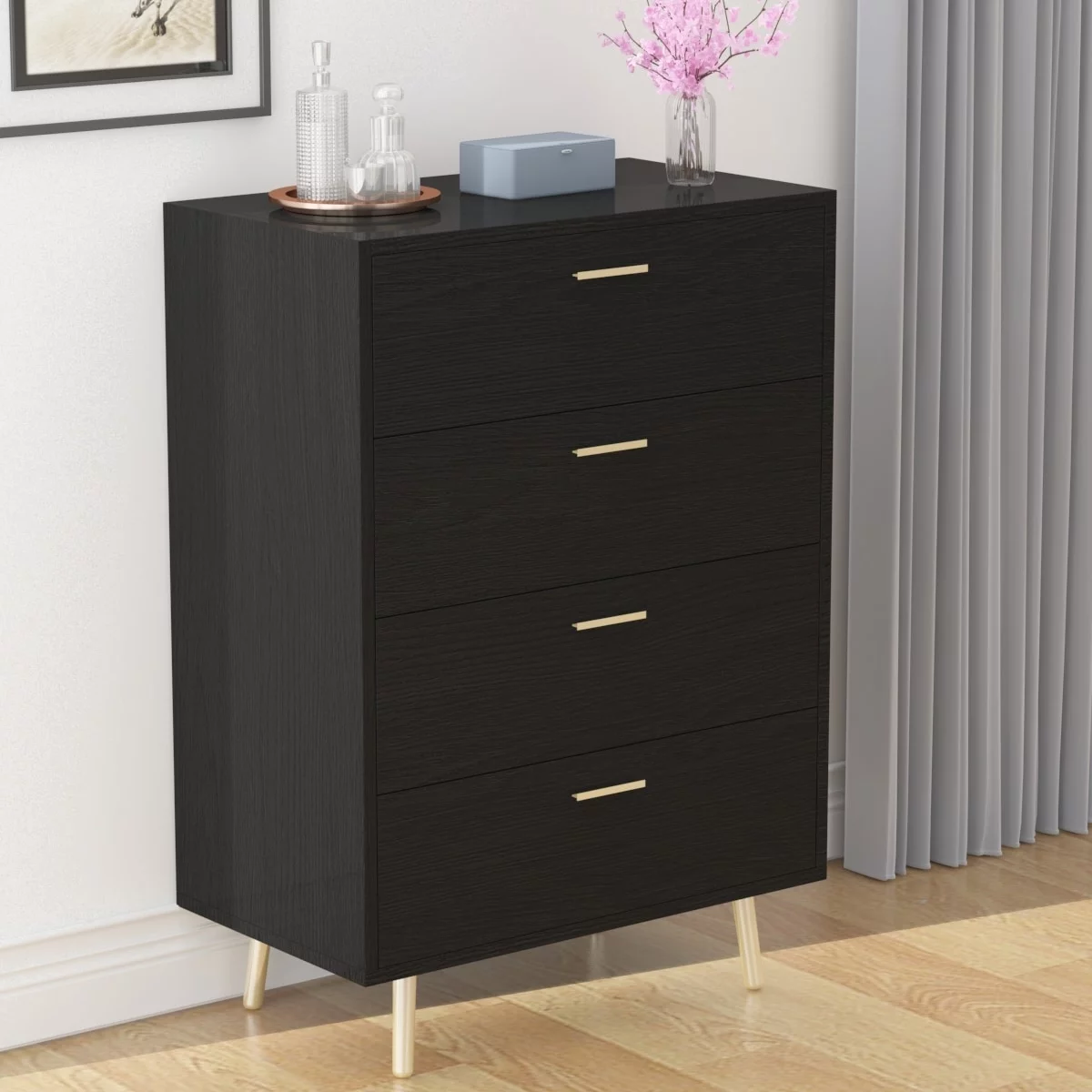 Benton Technology Kerrogee 3-Drawer Chest - Wooden Storage Dresser with Metal Legs