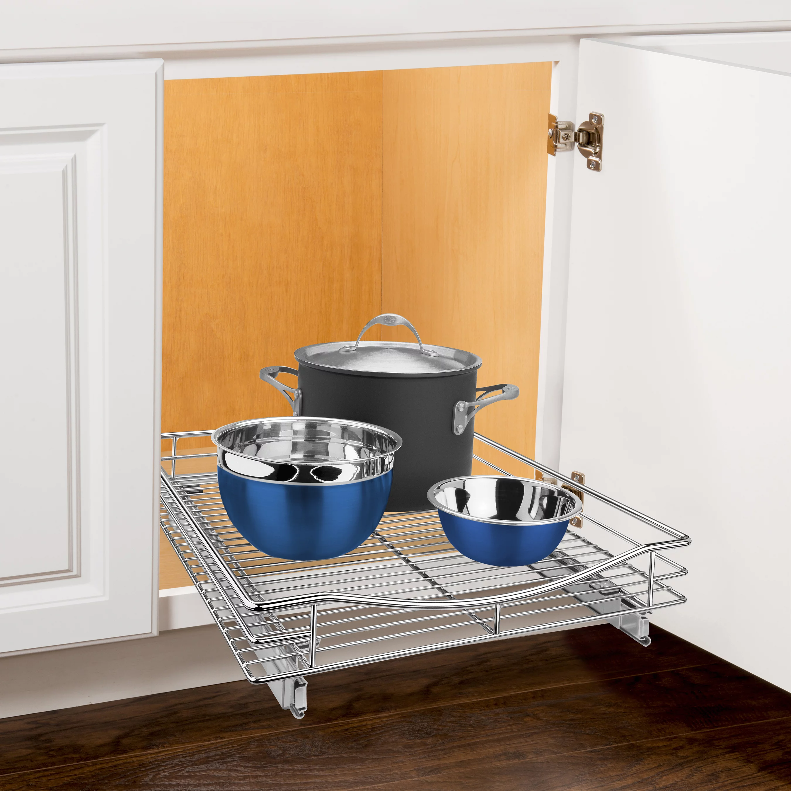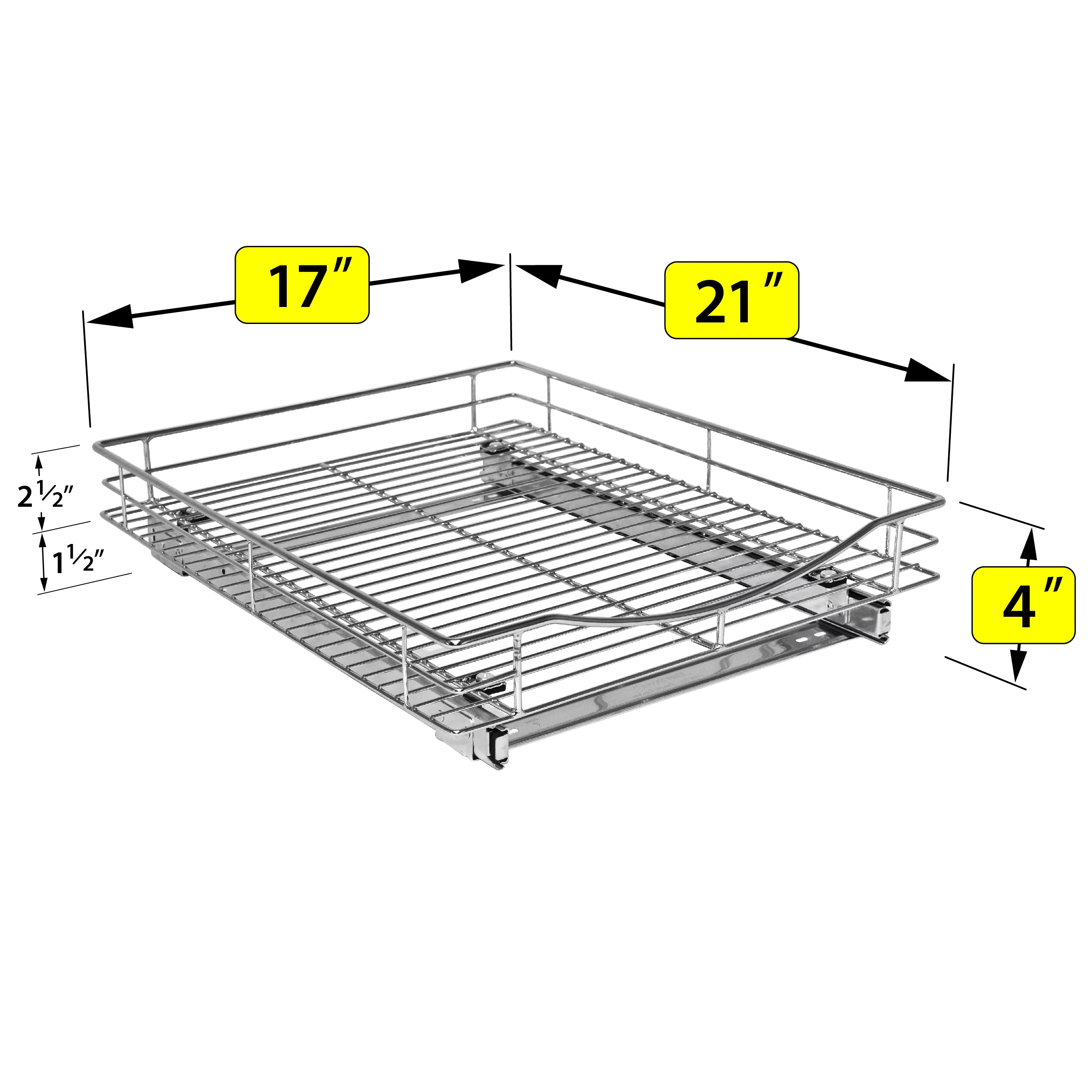LYNK PROFESSIONAL 17"W x 21"D Pull Out Cabinet Organizer, Slide Out Pantry Shelf - Chrome