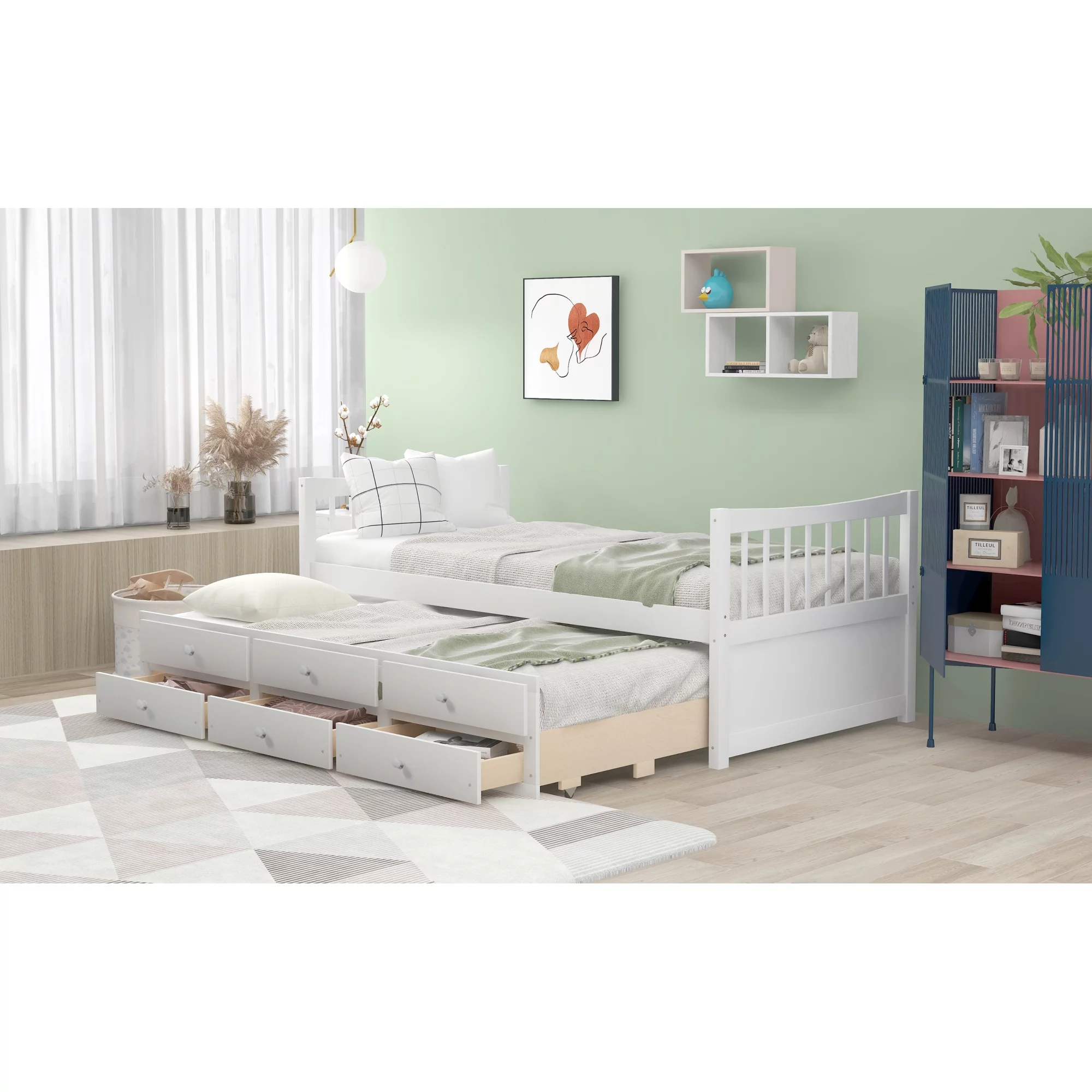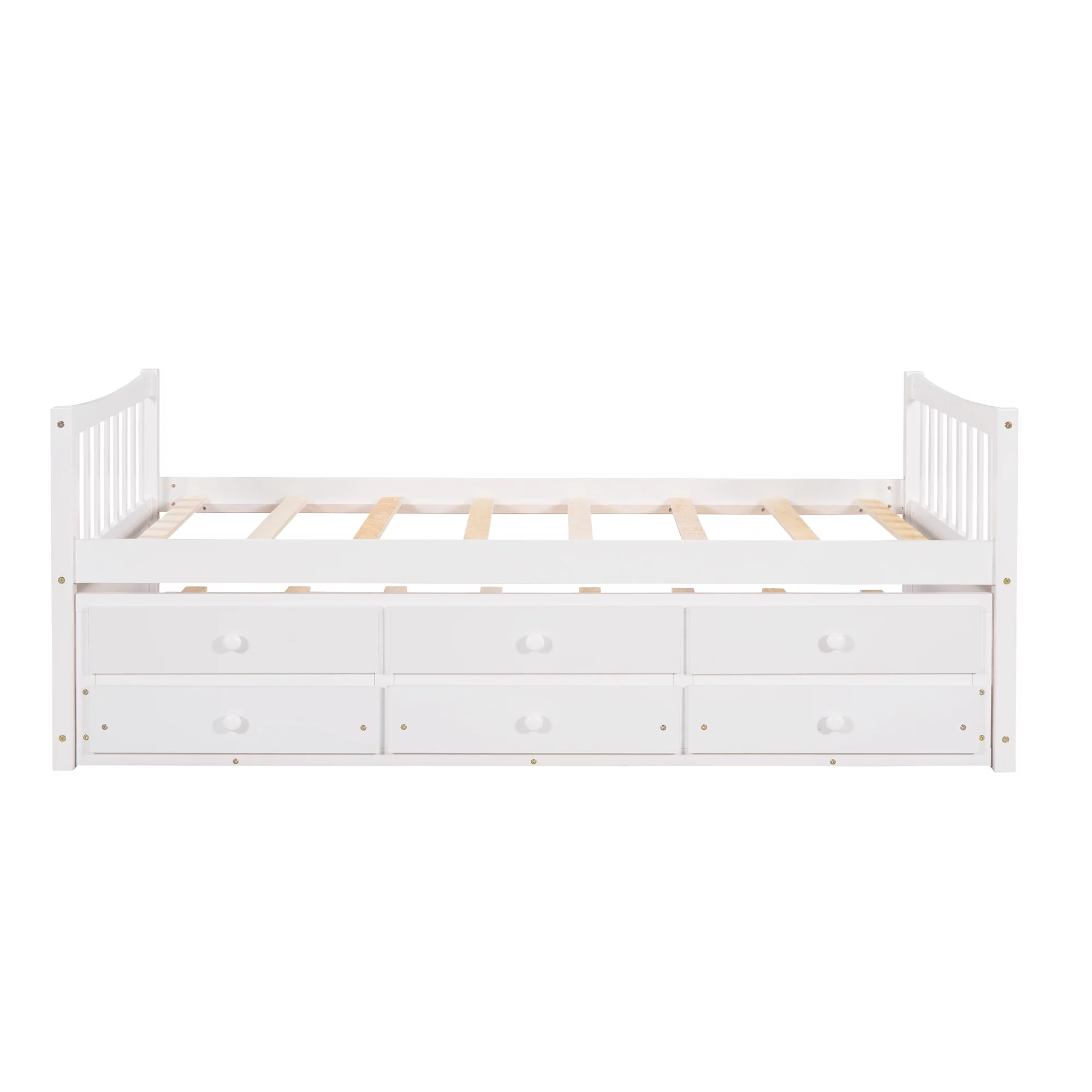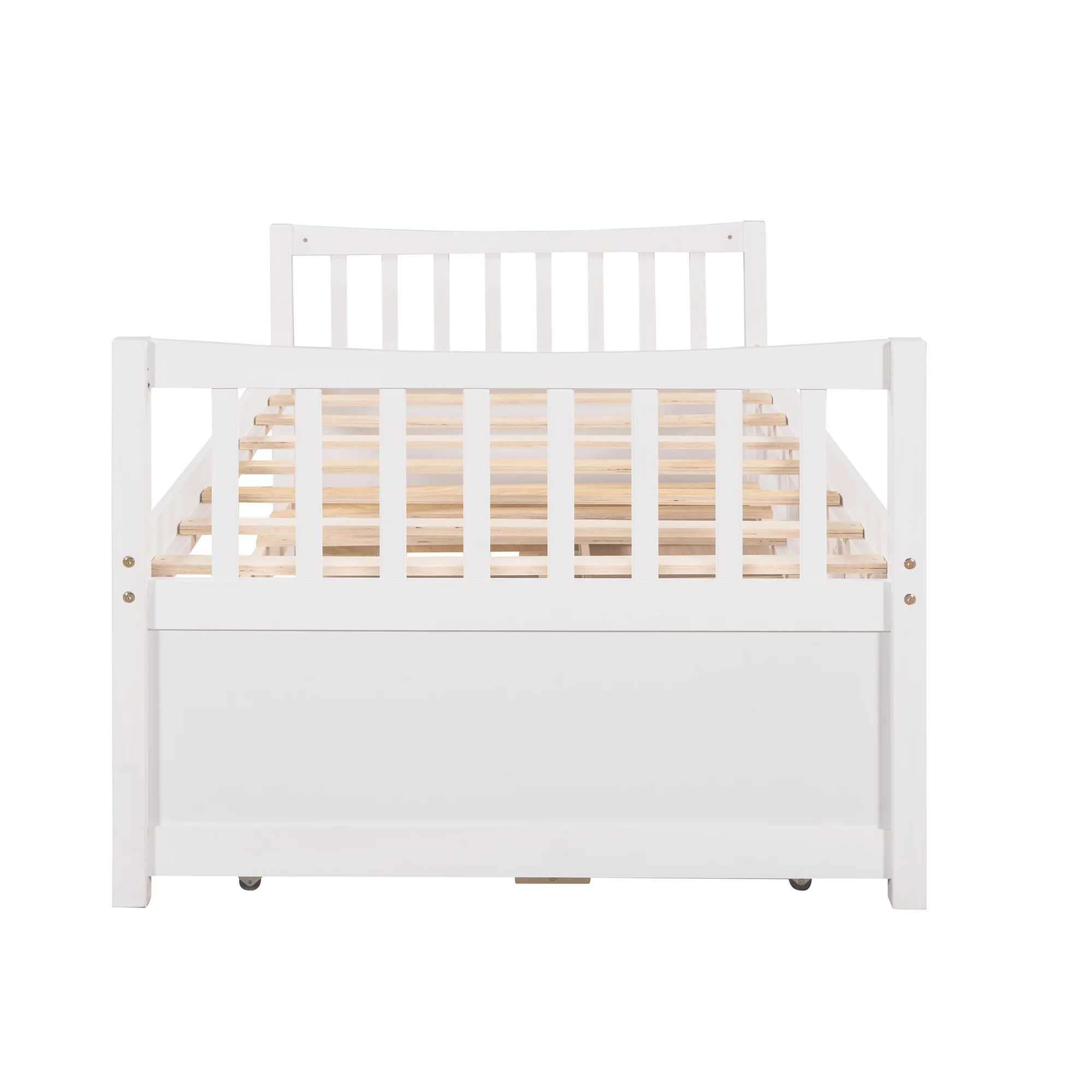 Wooden Daybed with Trundle Bed and Two Storage Drawers , Extendable Bed Daybed,Sofa Bed for Bedroom Living Room,White
