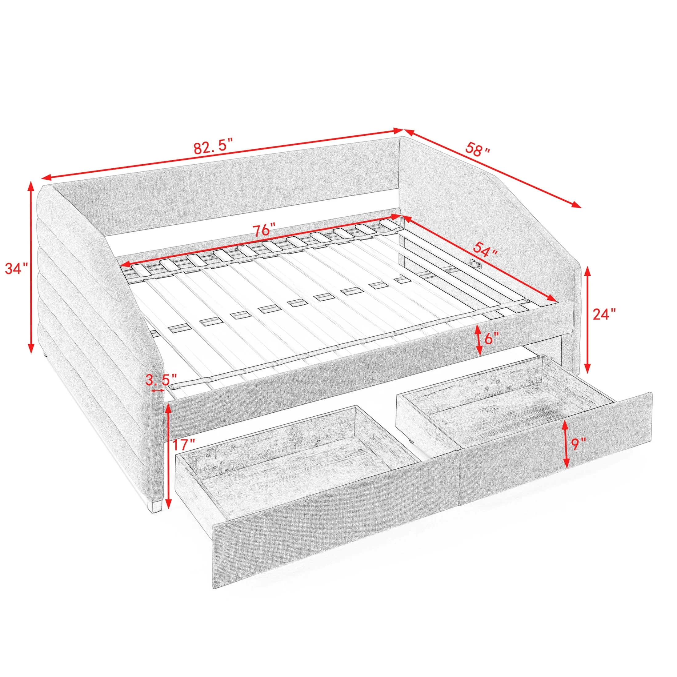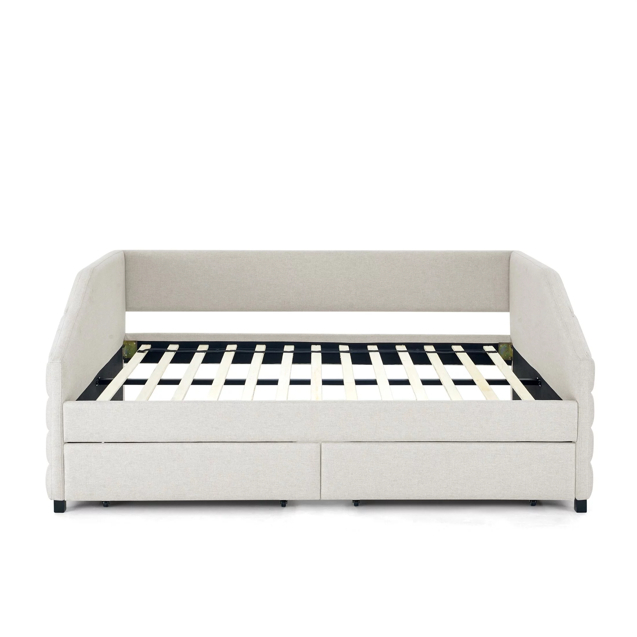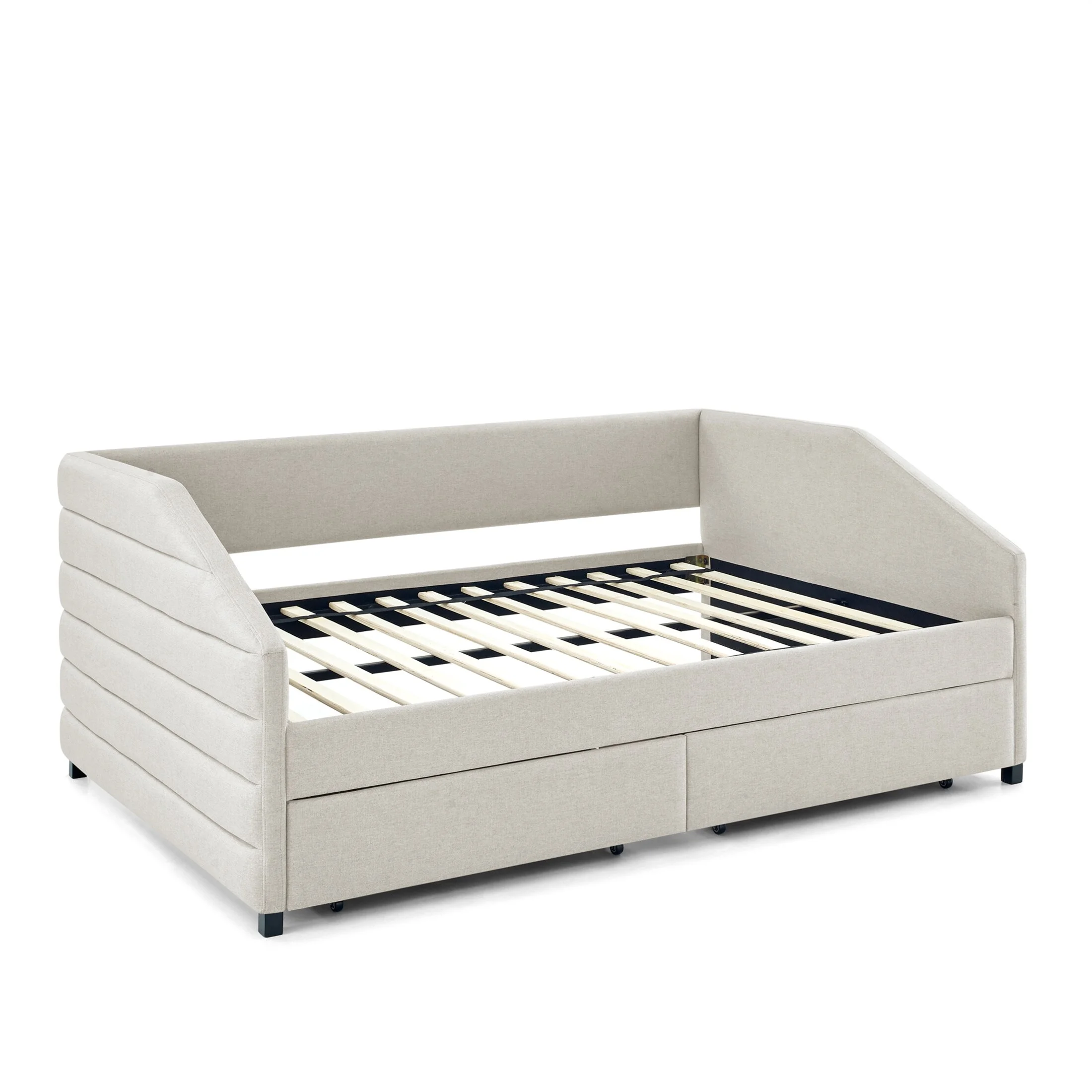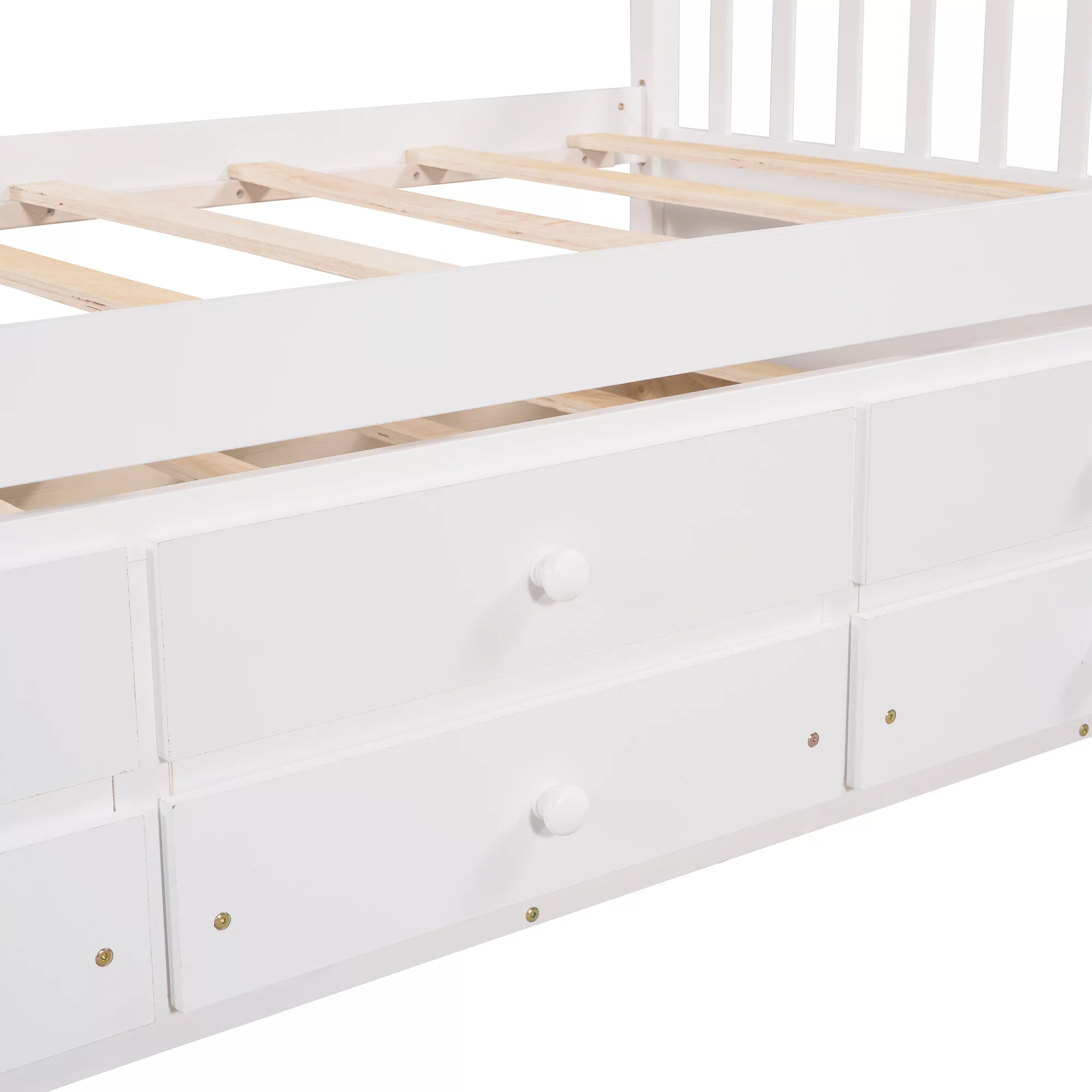 Wooden Daybed with Trundle Bed and Two Storage Drawers , Extendable Bed Daybed,Sofa Bed for Bedroom Living Room,White