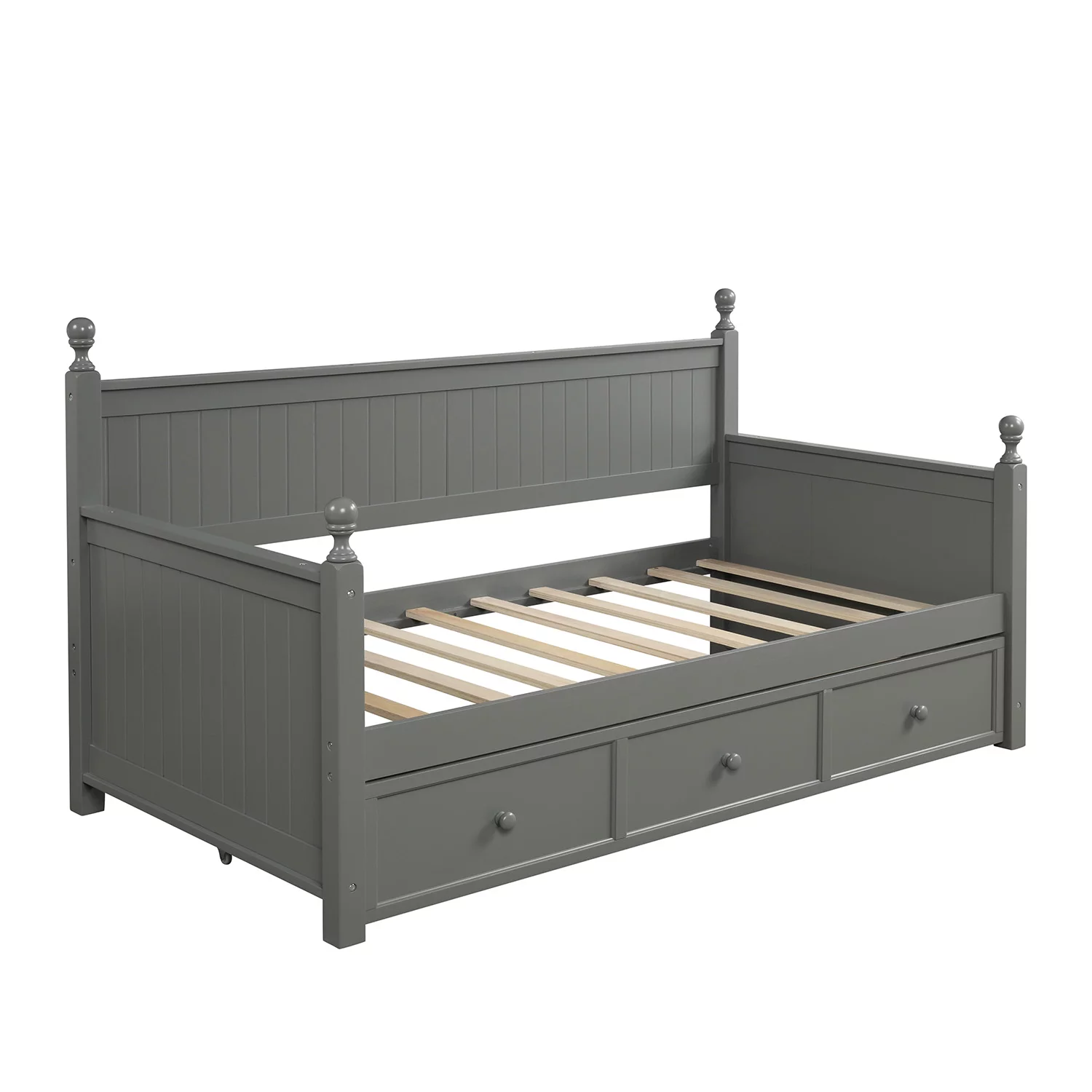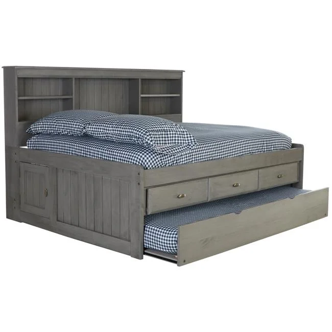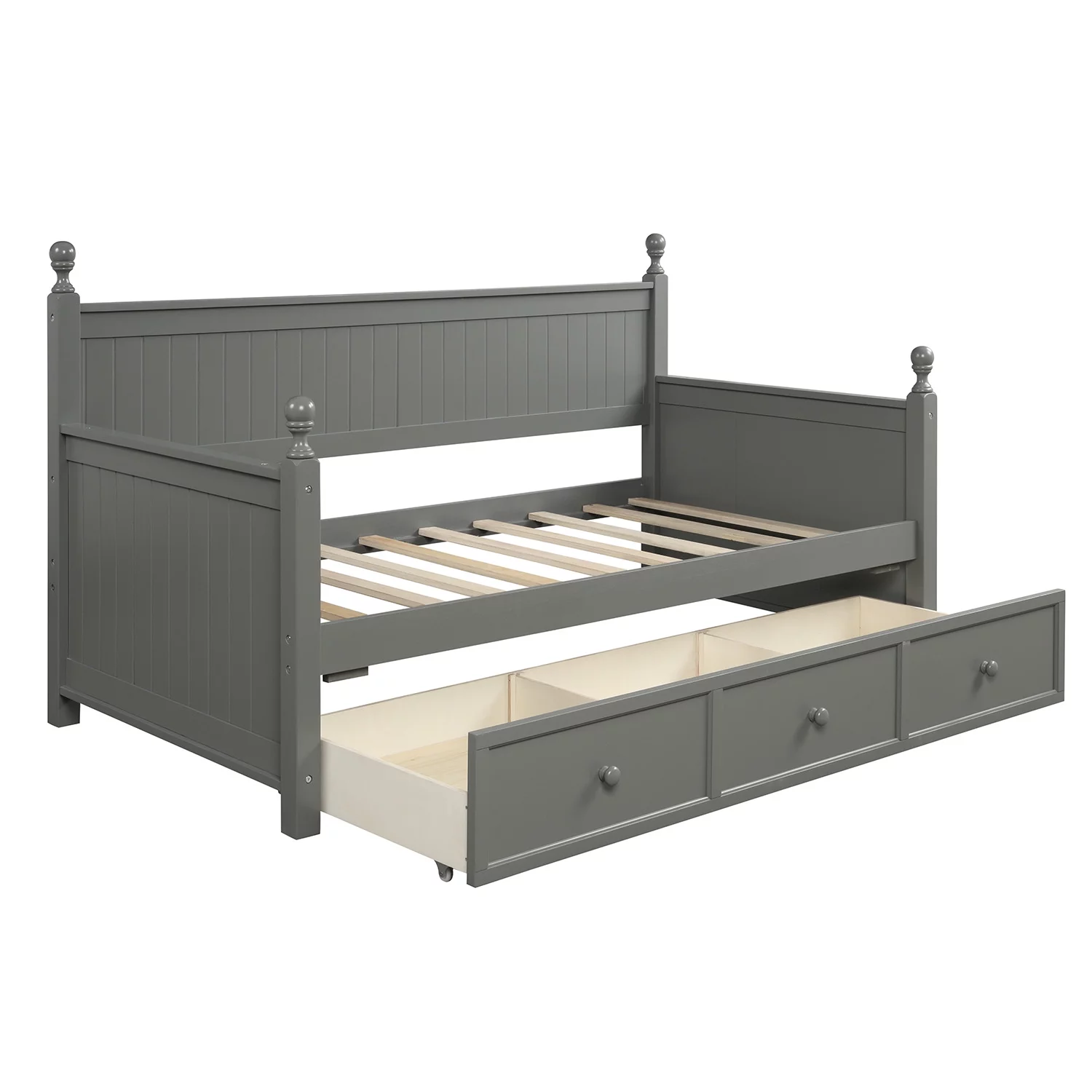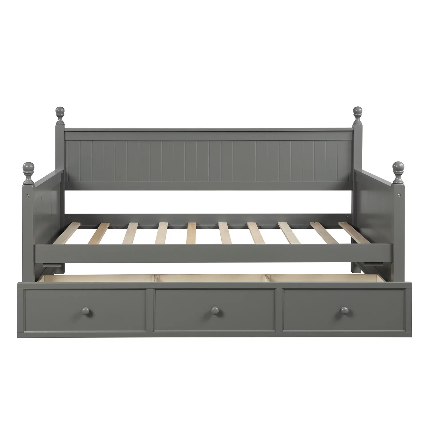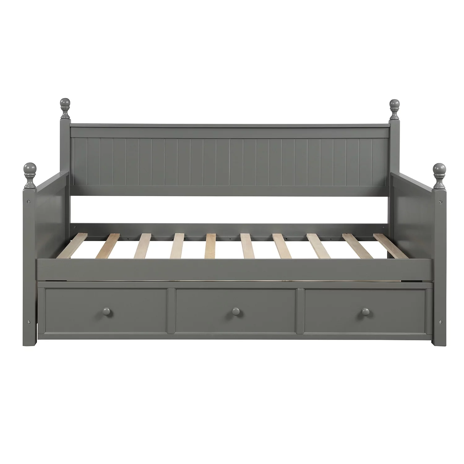 49.5 x 77 x 62.5 in. Solid Pine Full Daybed with Three Drawers & Twin Trundle, Charcoal Gray