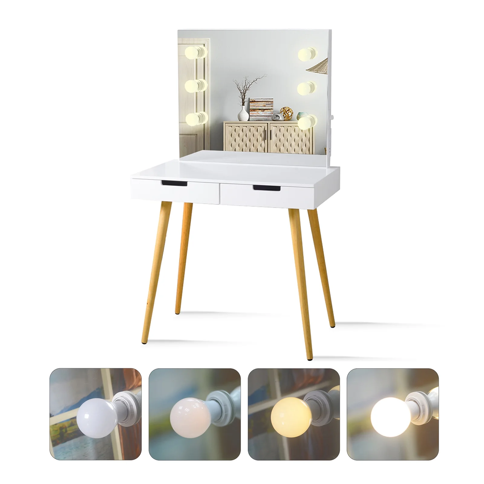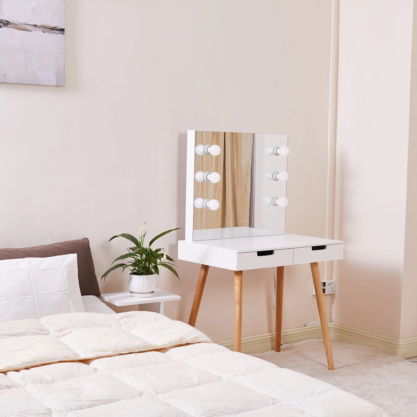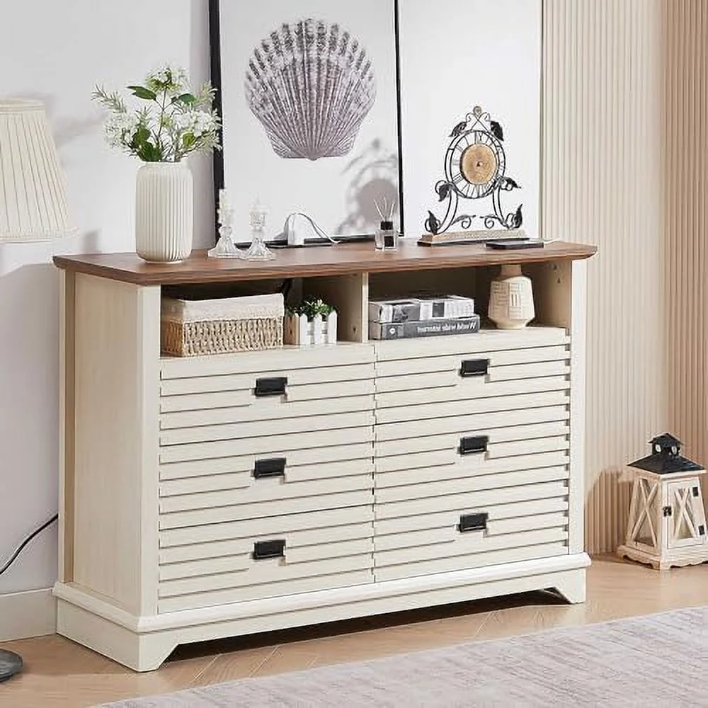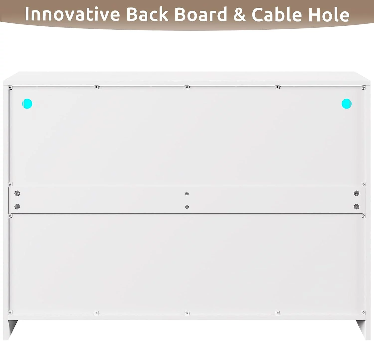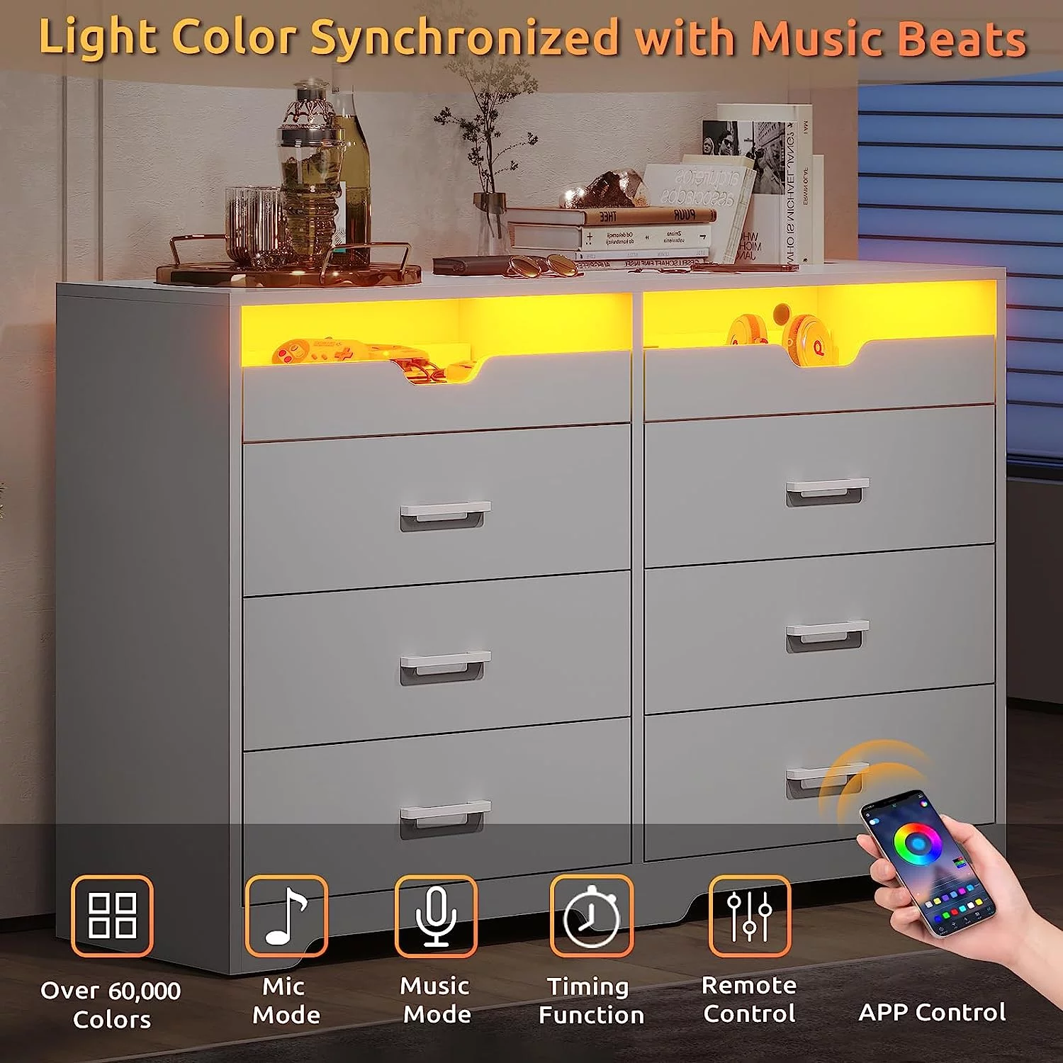 Dresser with LED Lights for Bedroom, Double Dresser with 6 Drawers and Pull-Out Tray, White