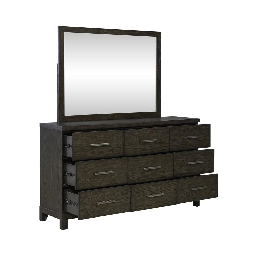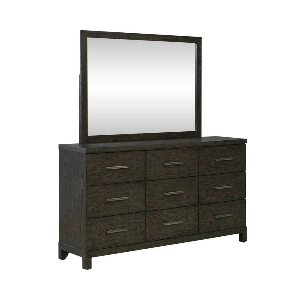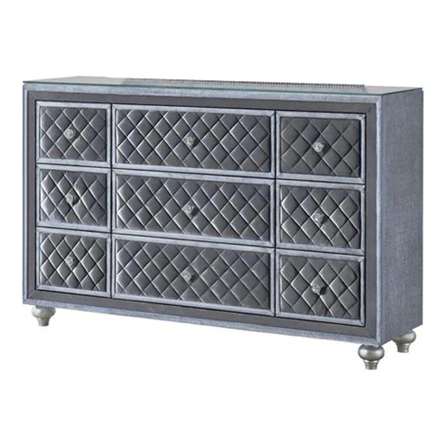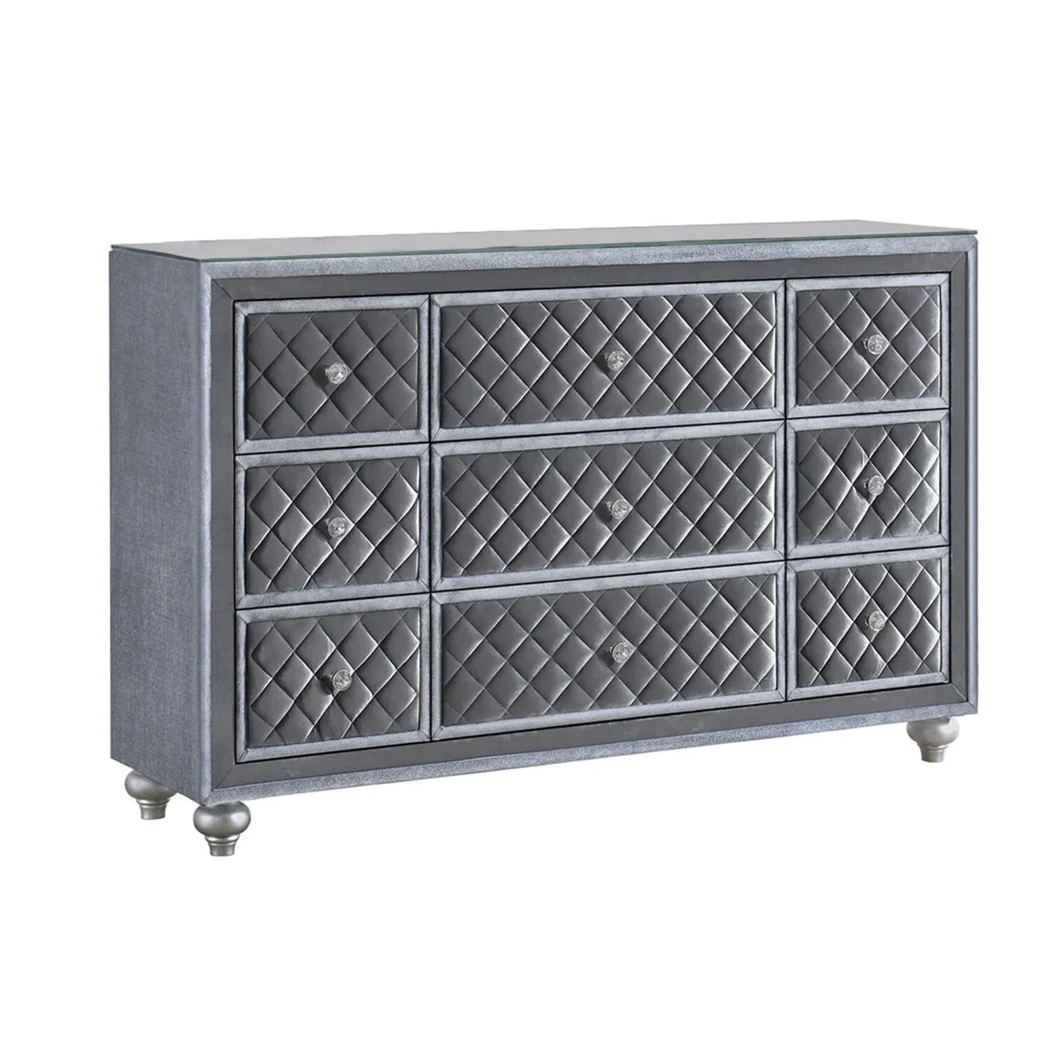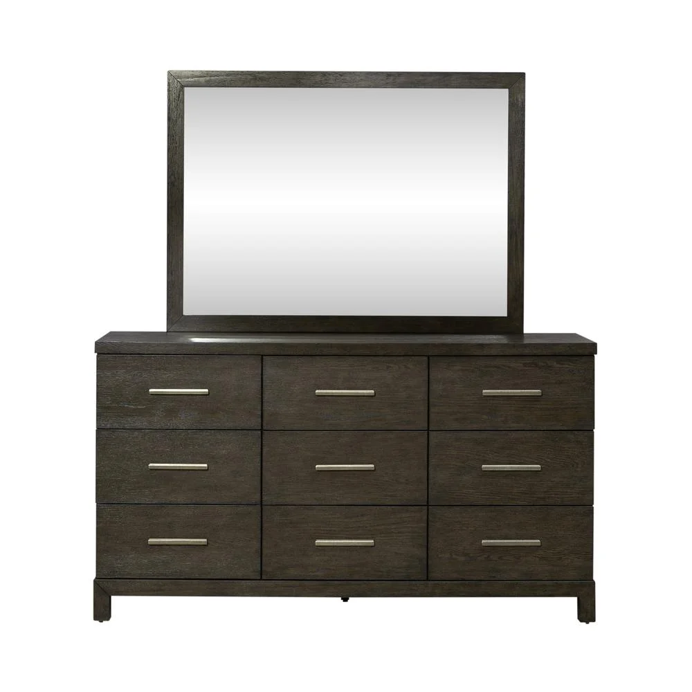 Benjara Rall 61 Inch Wide Dresser with Mirror, 9 Drawers, Modern, Turned Legs, Gray