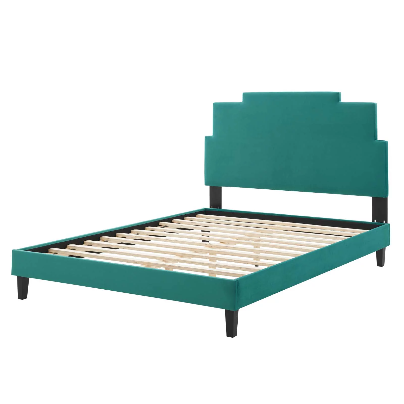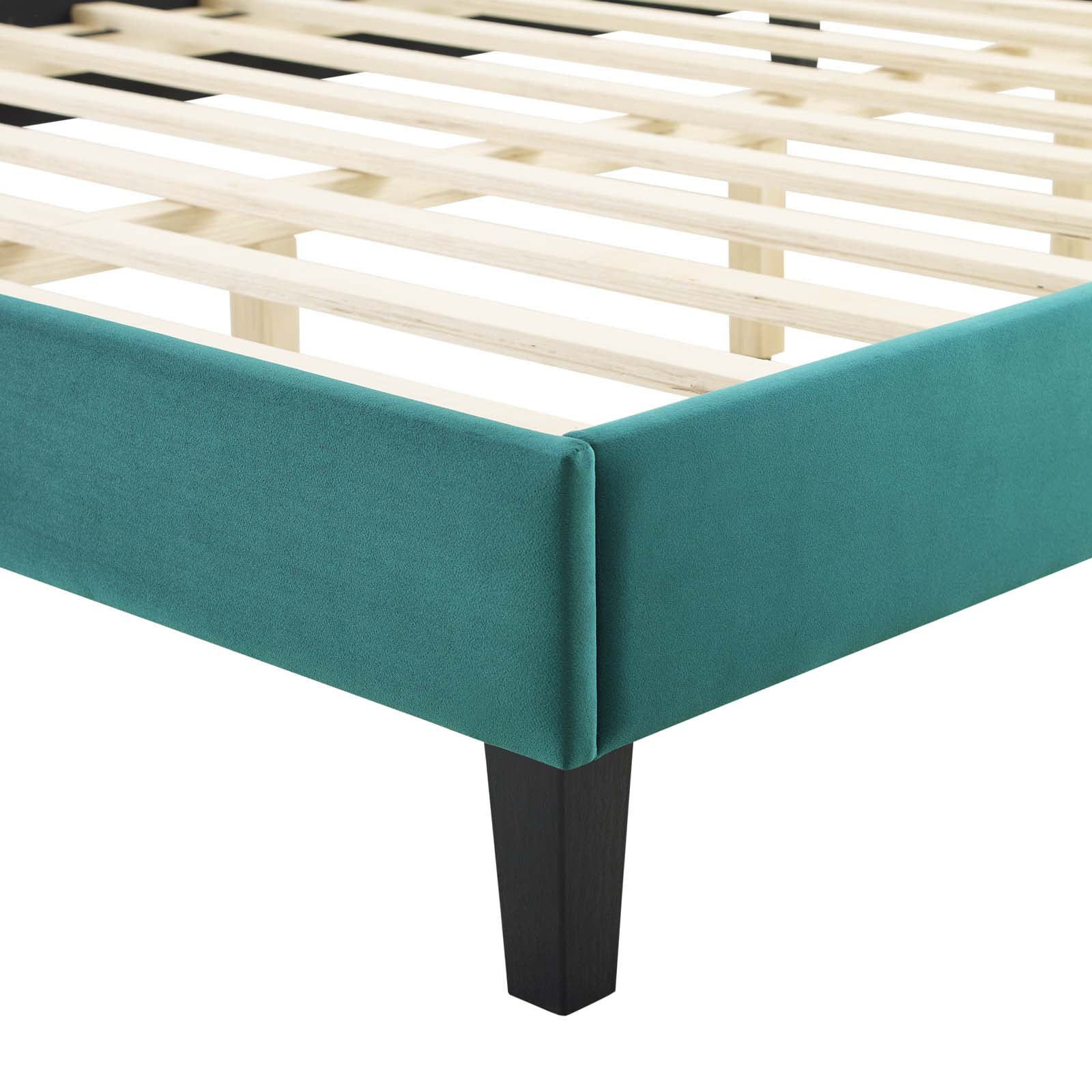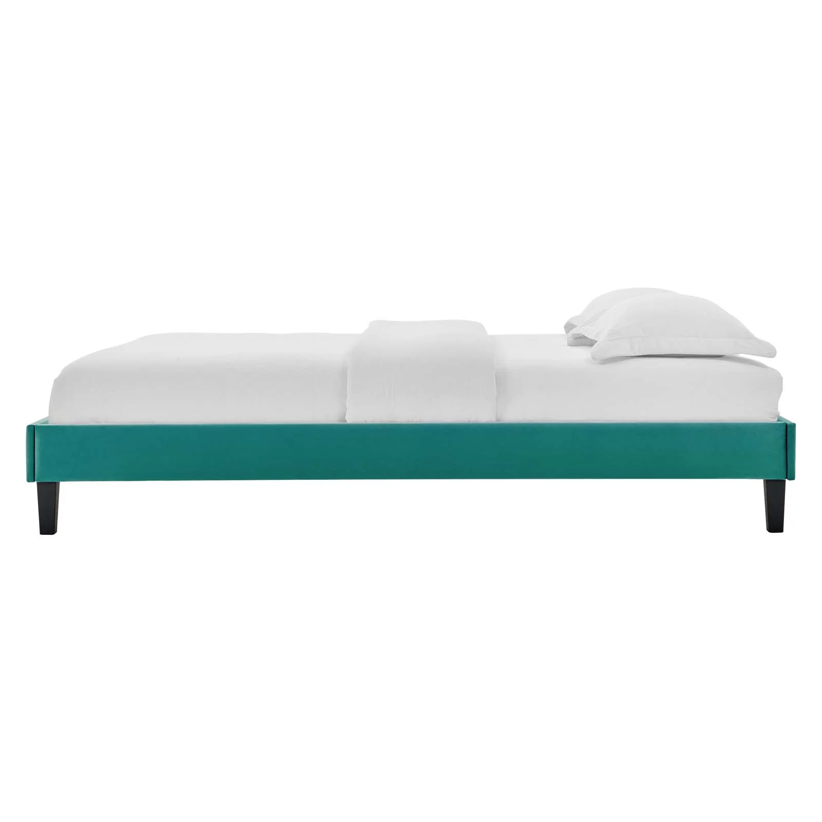 Platform Bed Frame, Twin Size, Velvet, Teal Blue, Modern Contemporary Urban Design, Bedroom Master Guest Suite