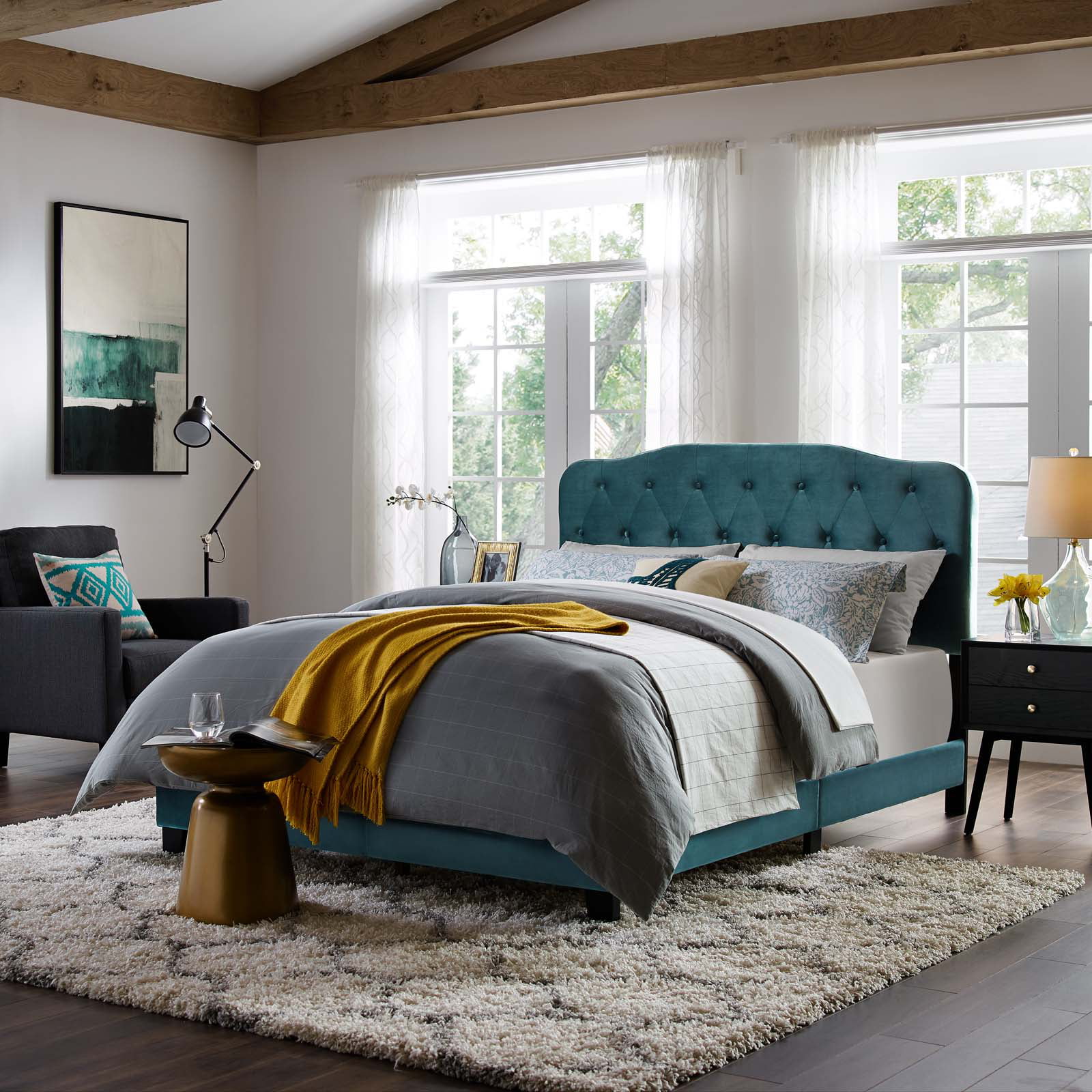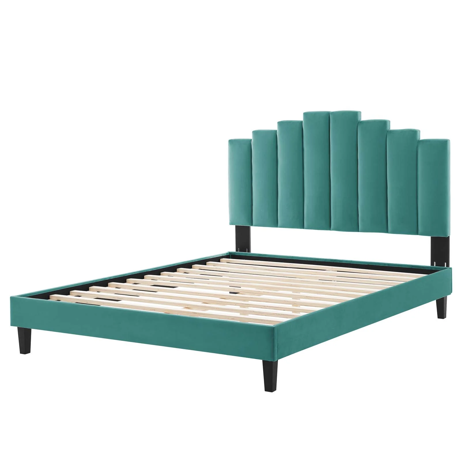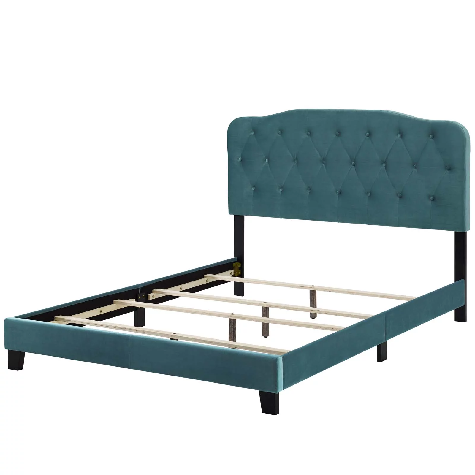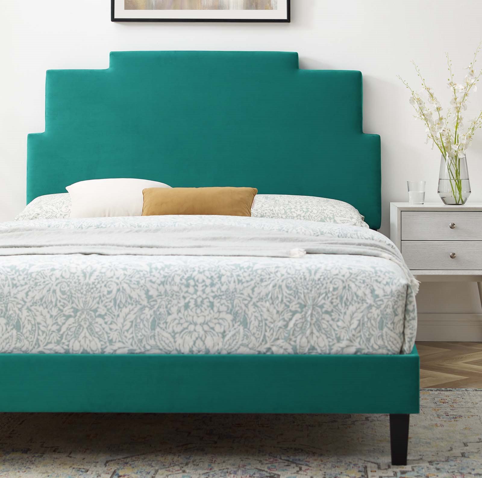Platform Bed Frame, Twin Size, Velvet, Teal Blue, Modern Contemporary Urban Design, Bedroom Master Guest Suite