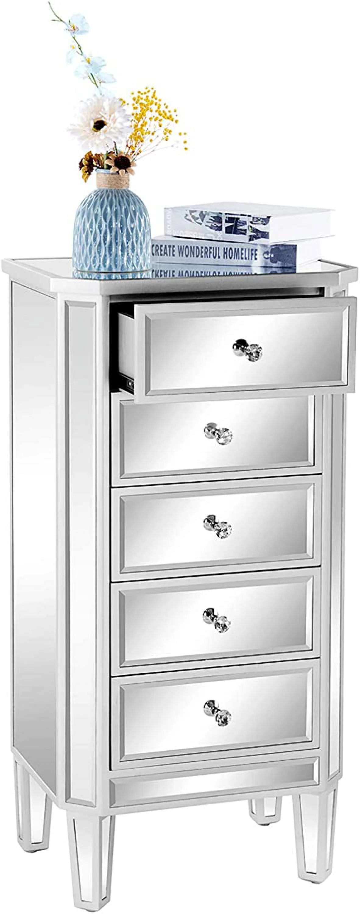 TJUNBOLIFE Mirrored Dresser 5 Drawers Modern Chest for Bedroom Dressing Room Living Room