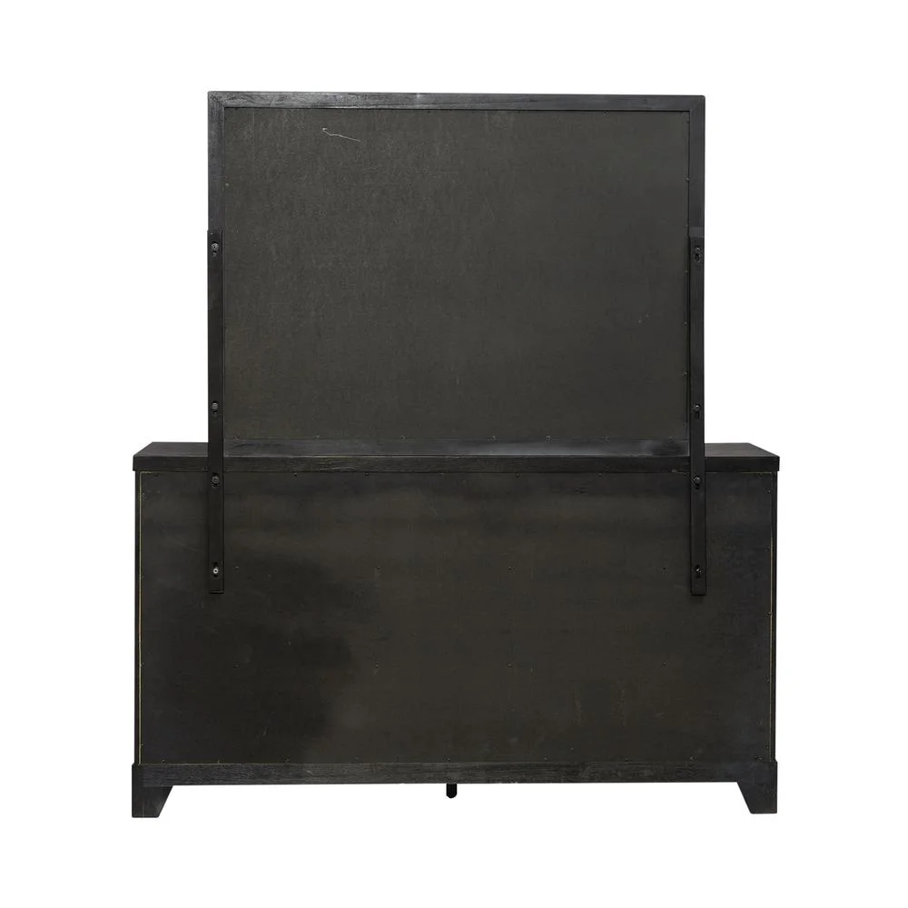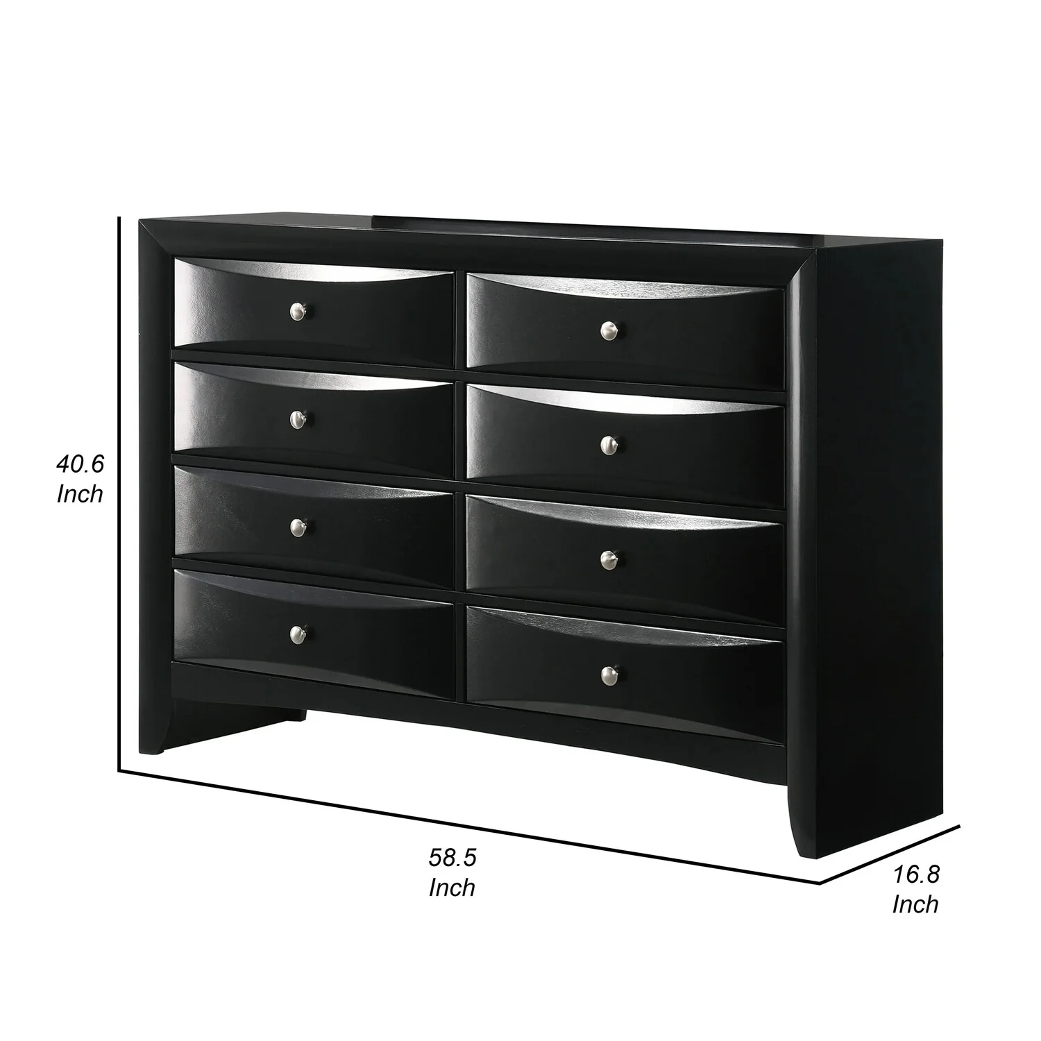 Benjara Flash 58 Inch Wide Dresser with Mirror, 8 Beveled Drawers, Modern Black
