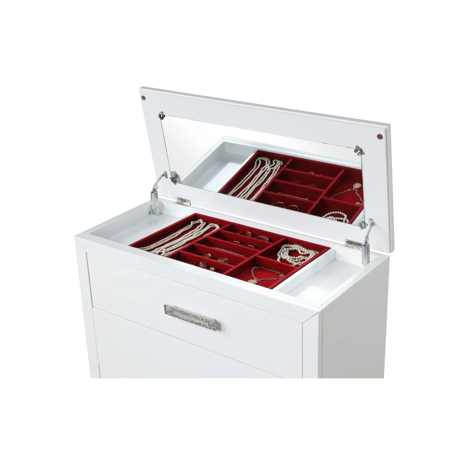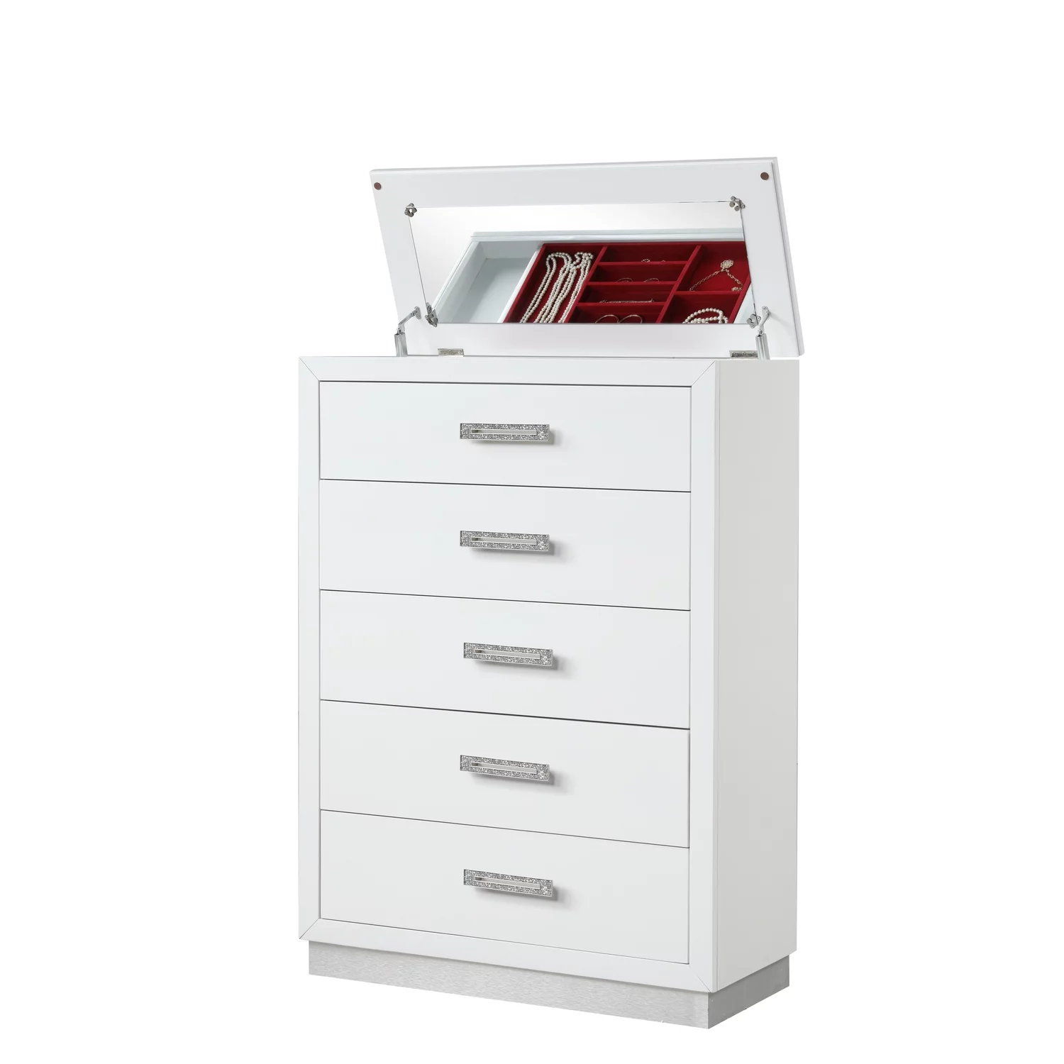 Galaxy Home Furnishings Coco 5-Drawer Modern Wood Chest with Mirror in White