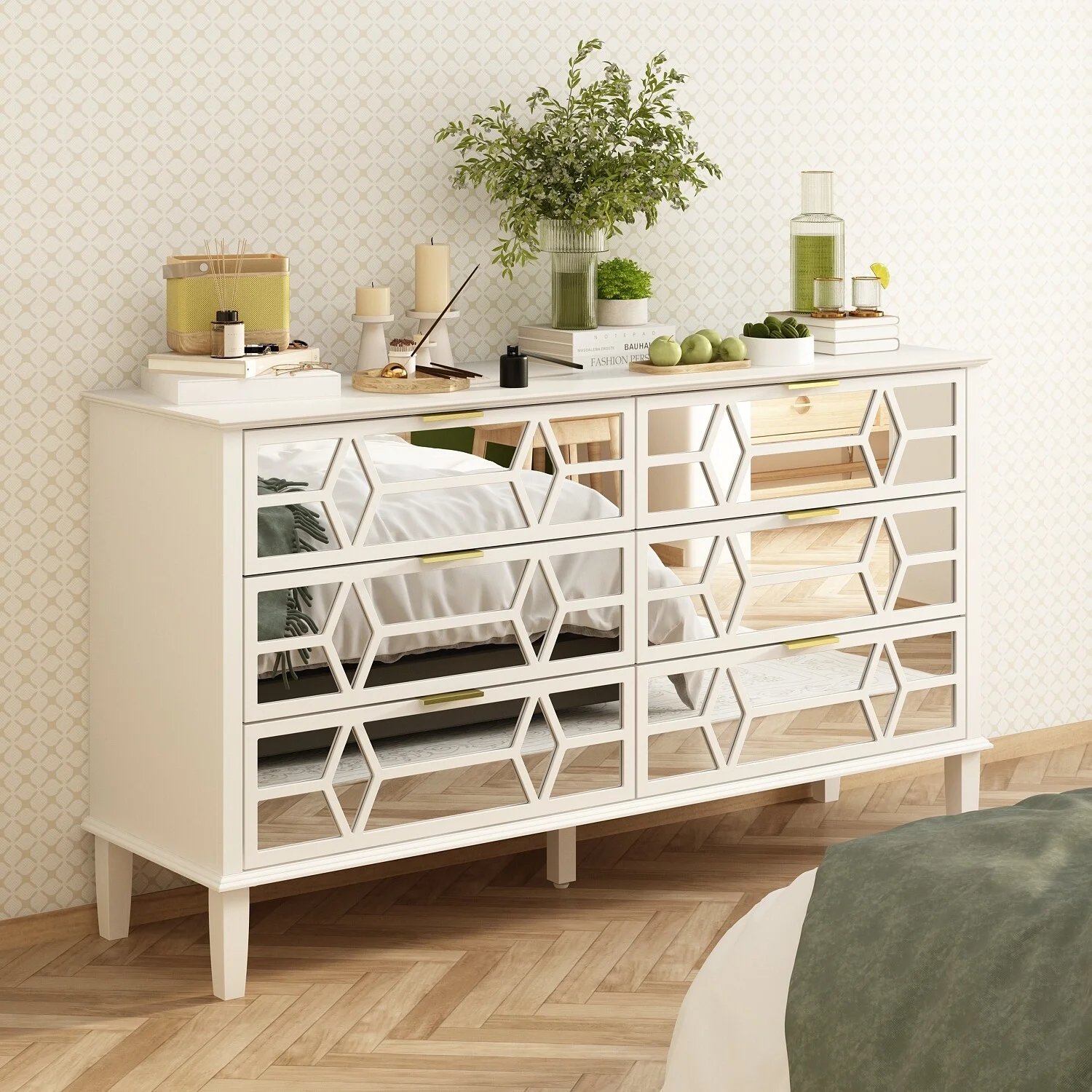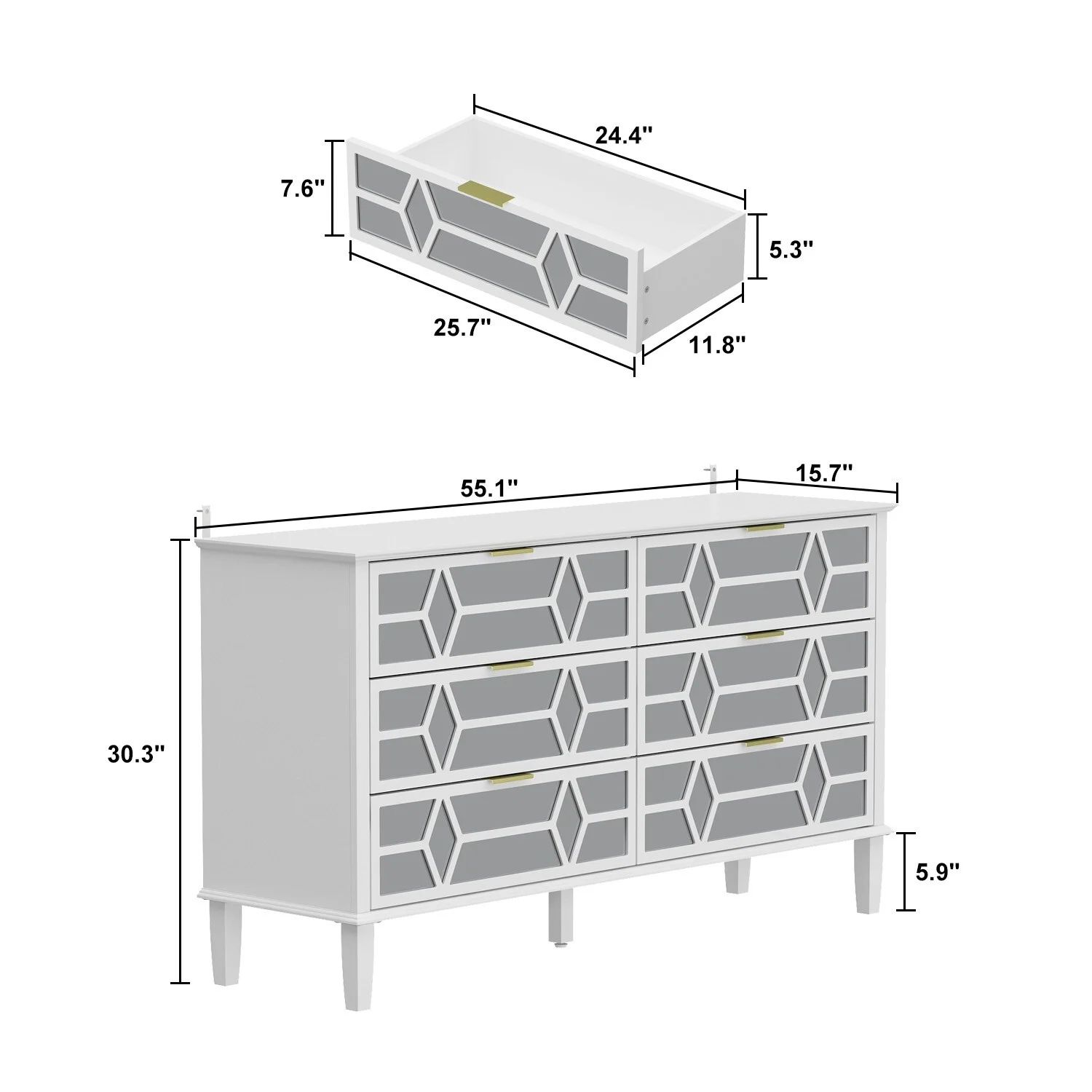 Mirrored Dresser 5 Drawers Modern Chest for Bedroom, Dressing Room, Living Room