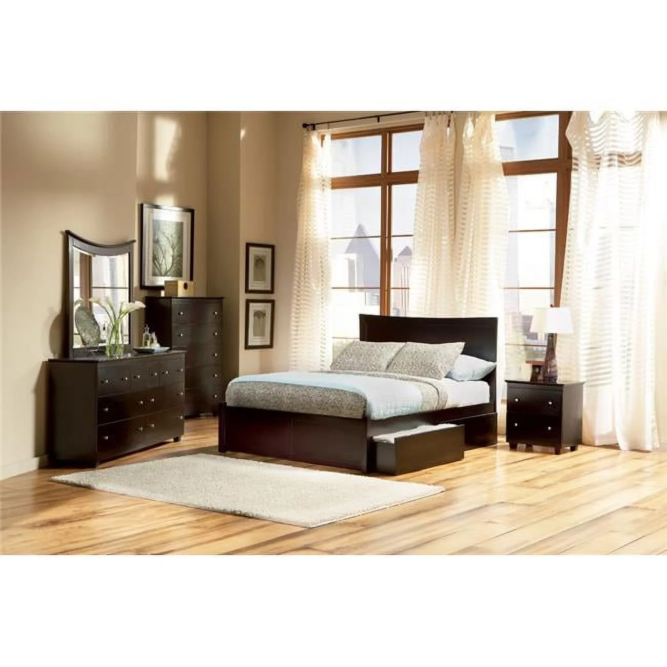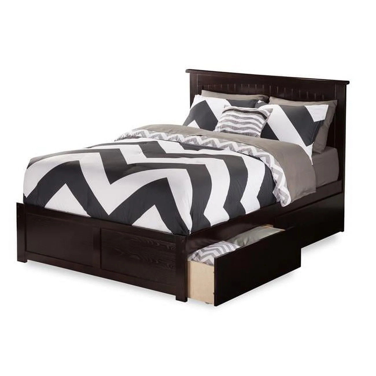 Atlantic Furniture Miami Flat Panel Footboard with Matching Bed Drawer x 1 - Espresso, Queen Size