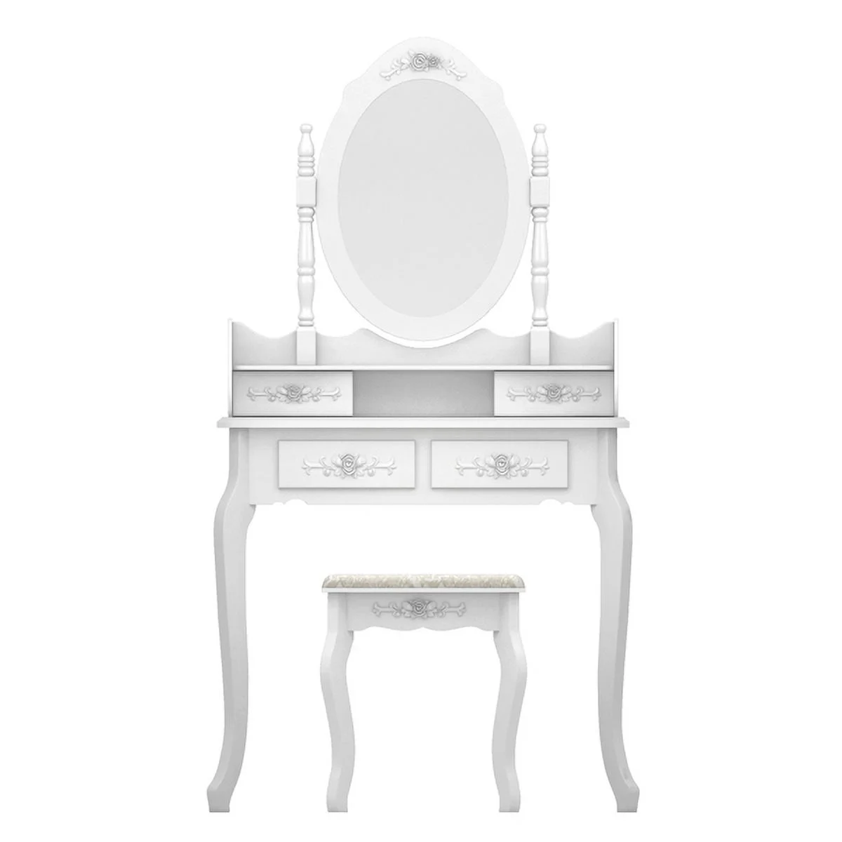 Modern Concise 4-Drawer 360-Degree Rotation Removable Mirror Dresser White