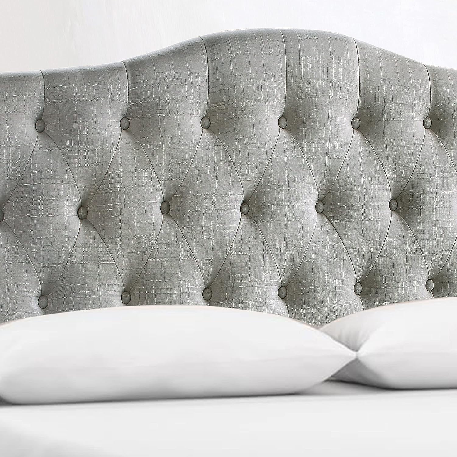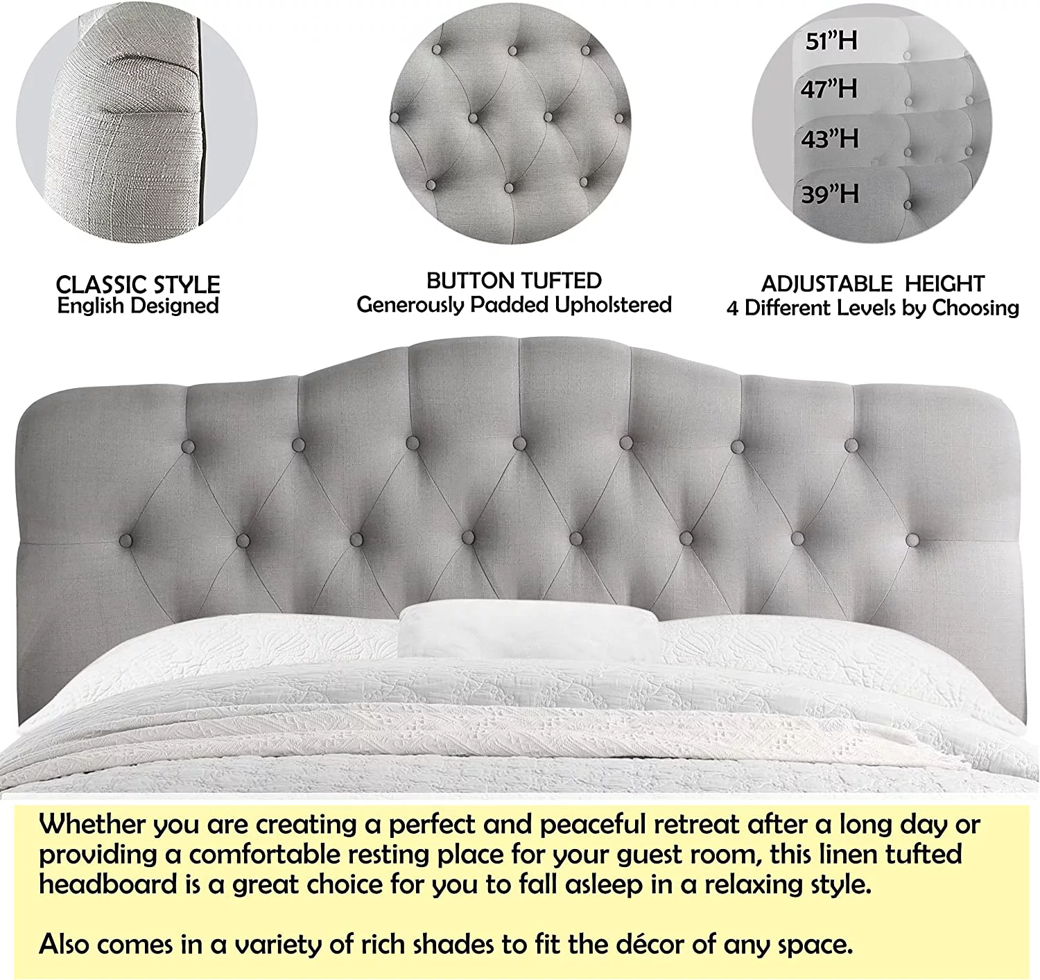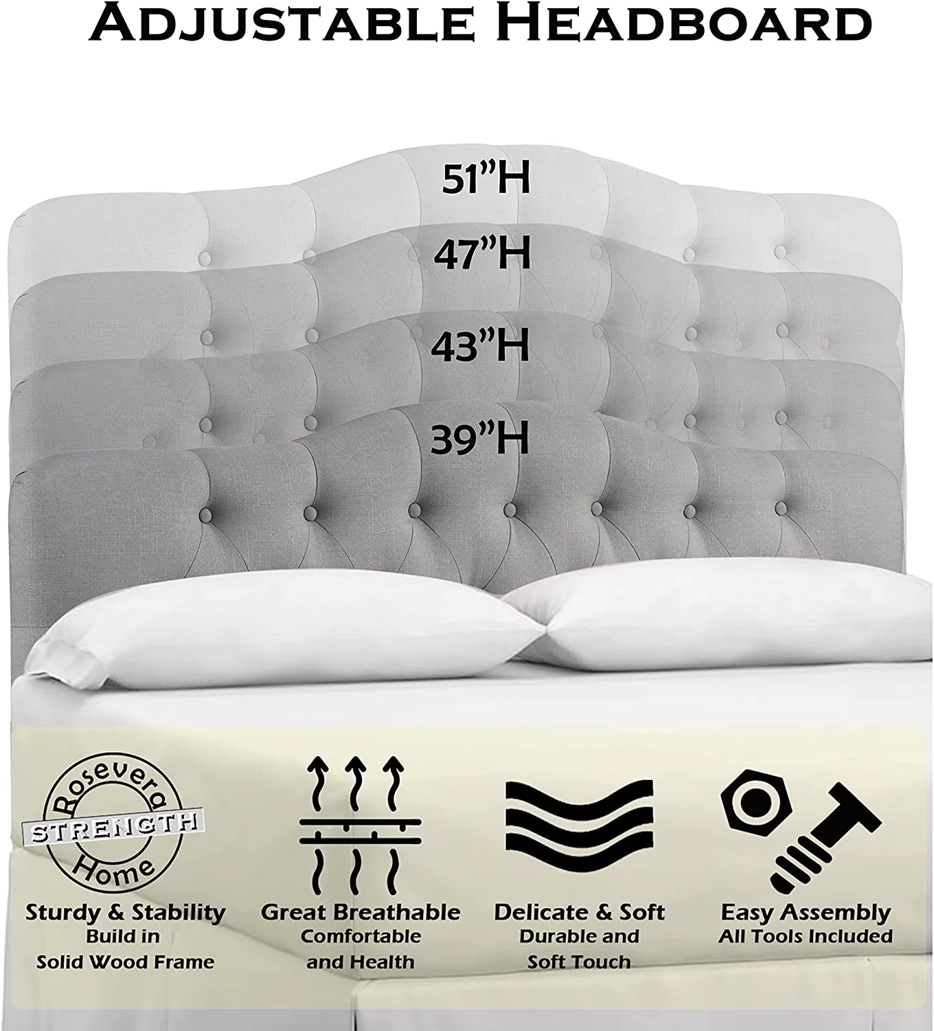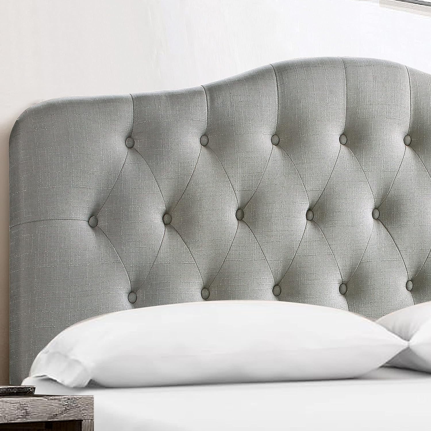 YGDU Givanna Adjustable Height Headboard with Linen Upholstery and Button Tufting for Bedroom, Full, Light Gray