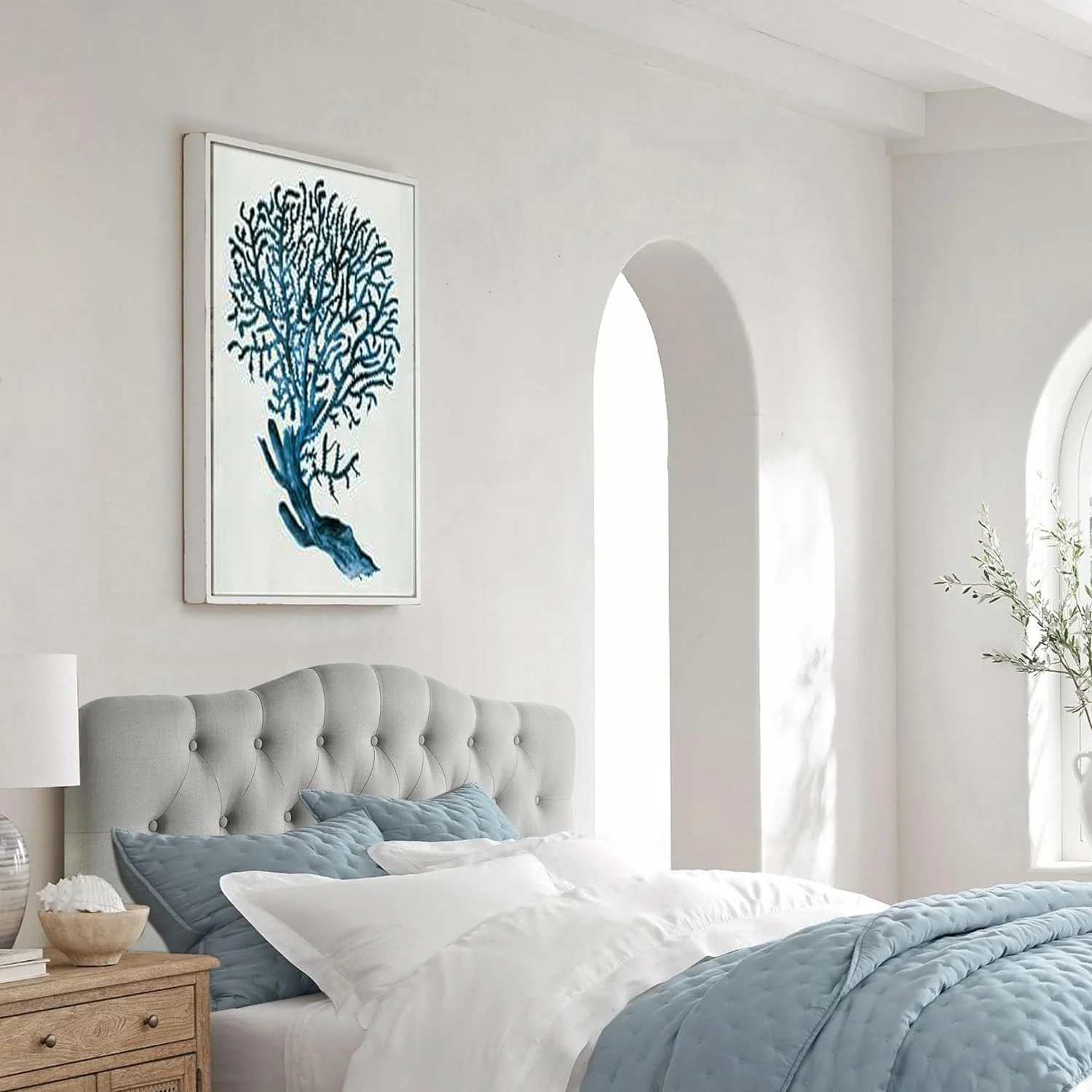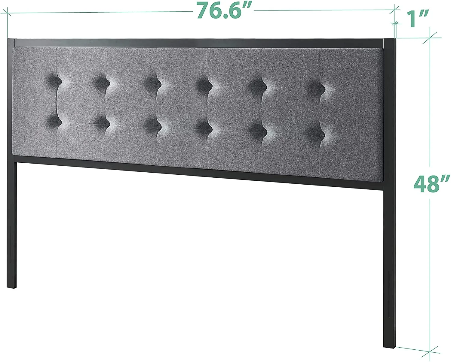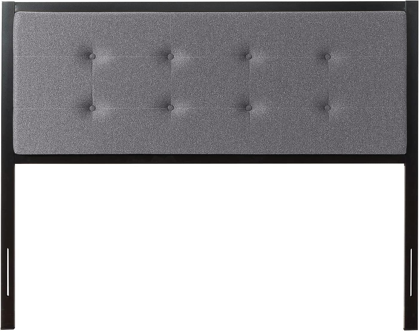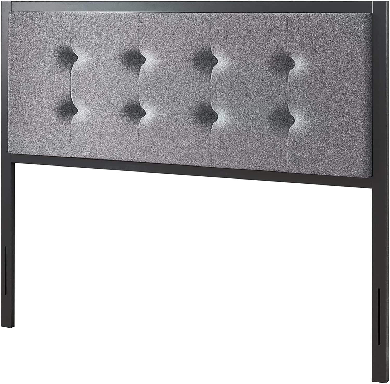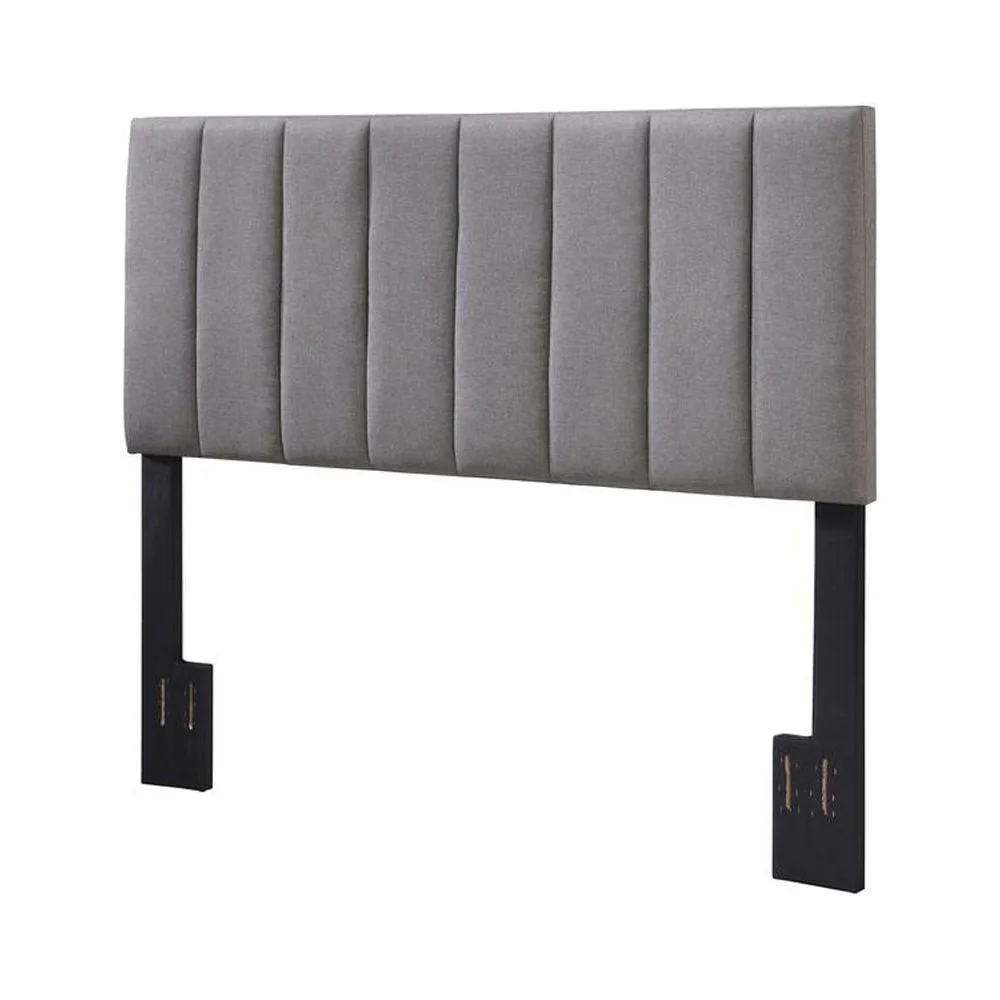 YGDU Givanna Adjustable Height Headboard with Linen Upholstery and Button Tufting for Bedroom, Full, Light Gray