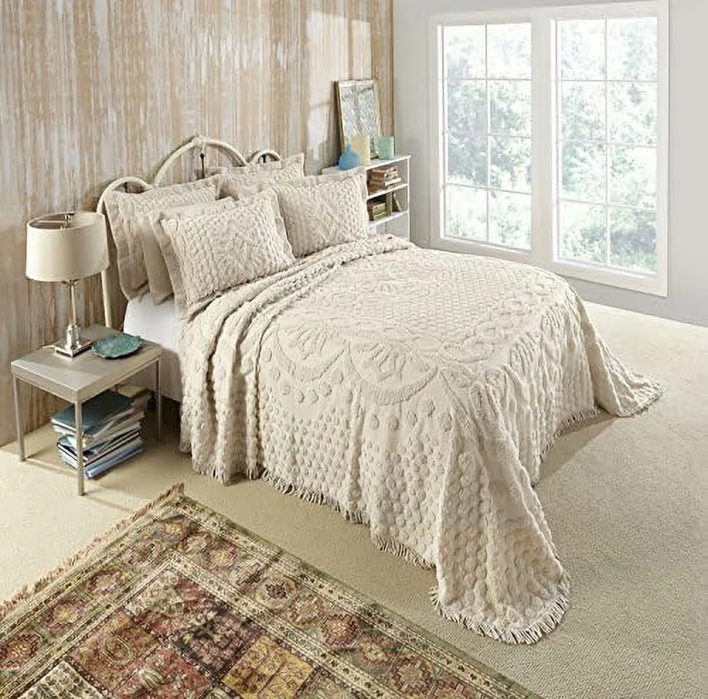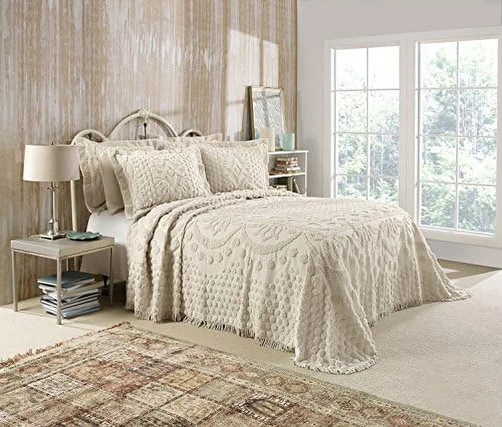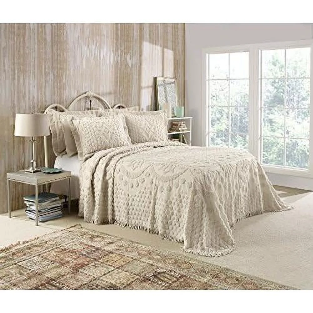 Better Trends Ivory Ashton Medallion 100% Cotton Bedspread, King, For Adult