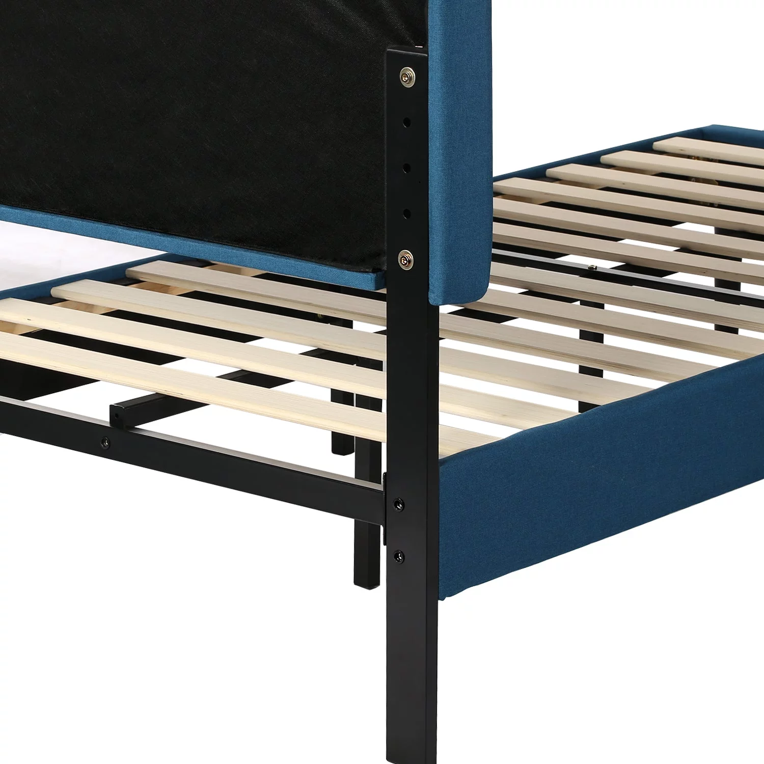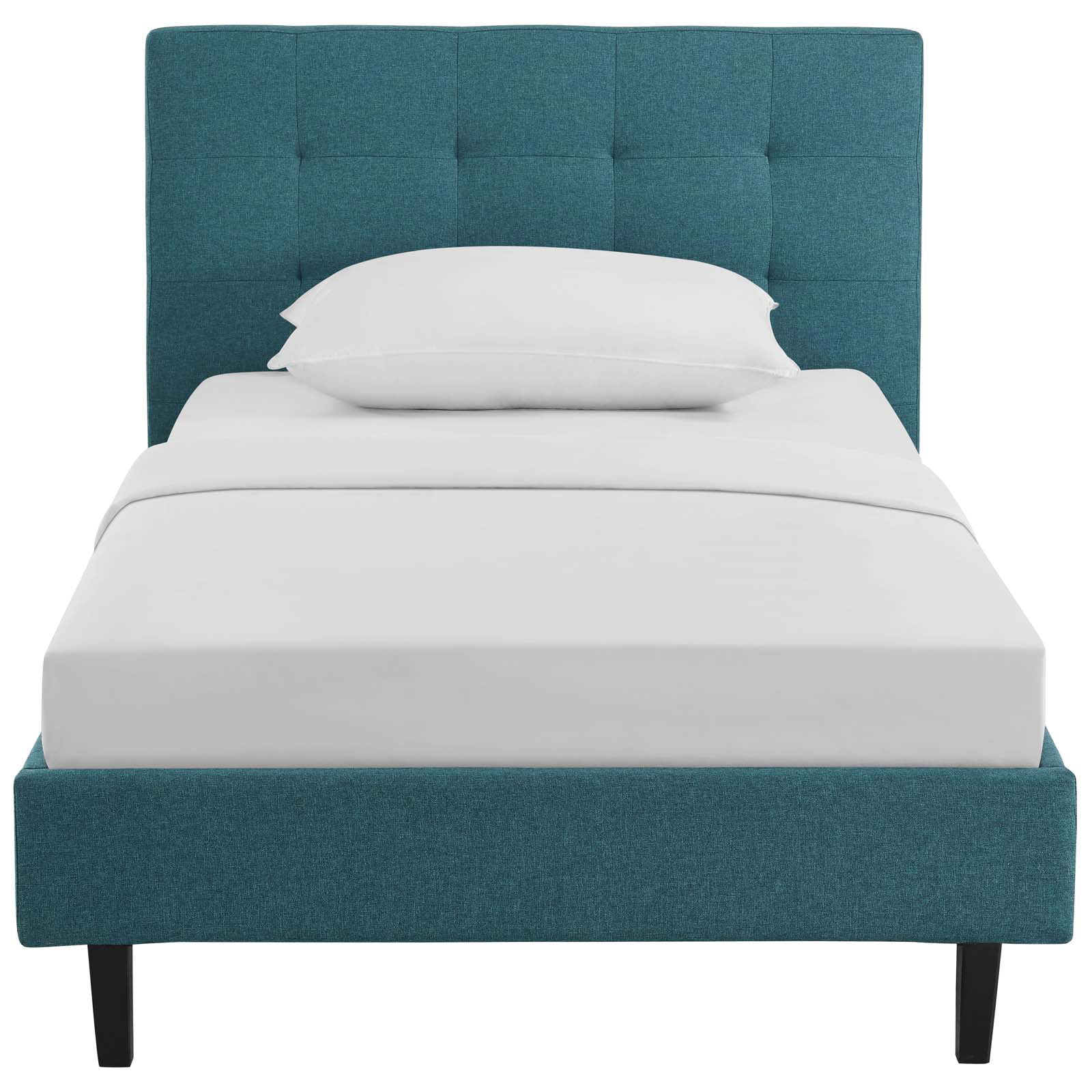 Modern Contemporary Urban Design Bedroom Twin Size Platform Bed Frame, Fabric, Aqua Blue