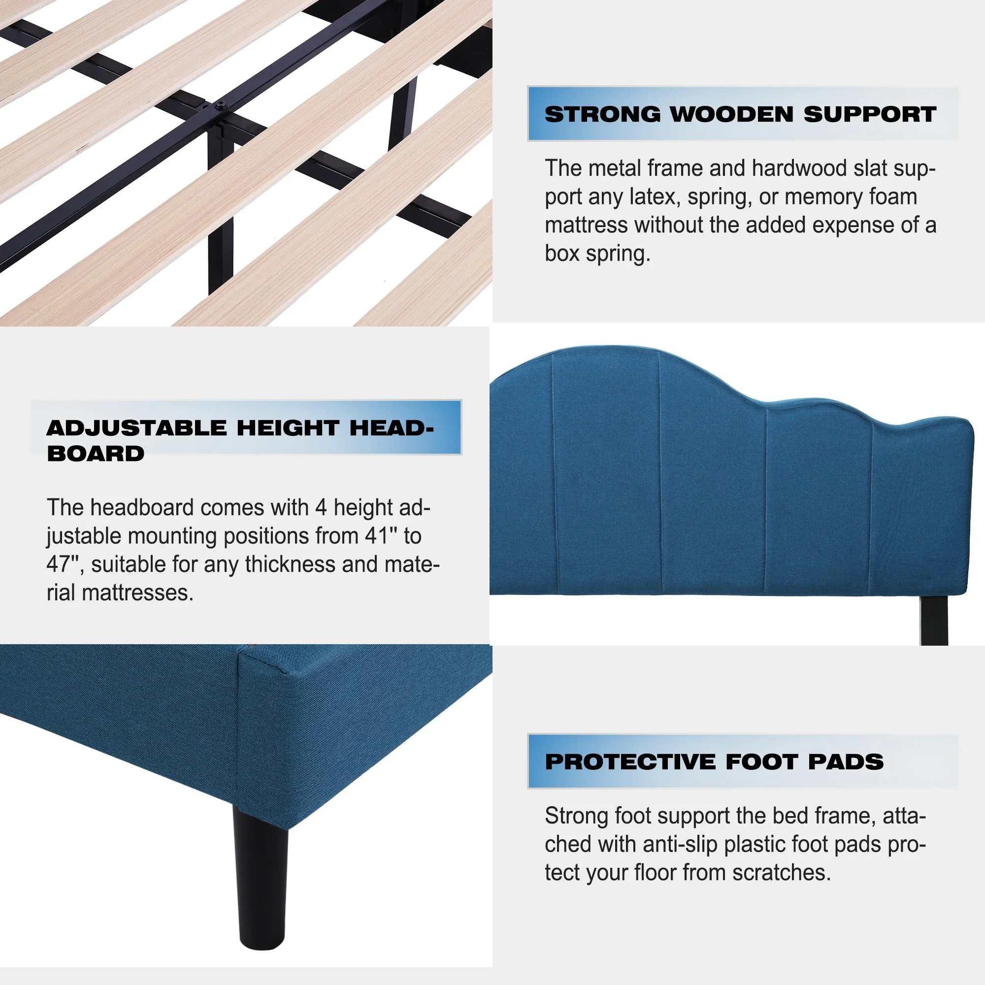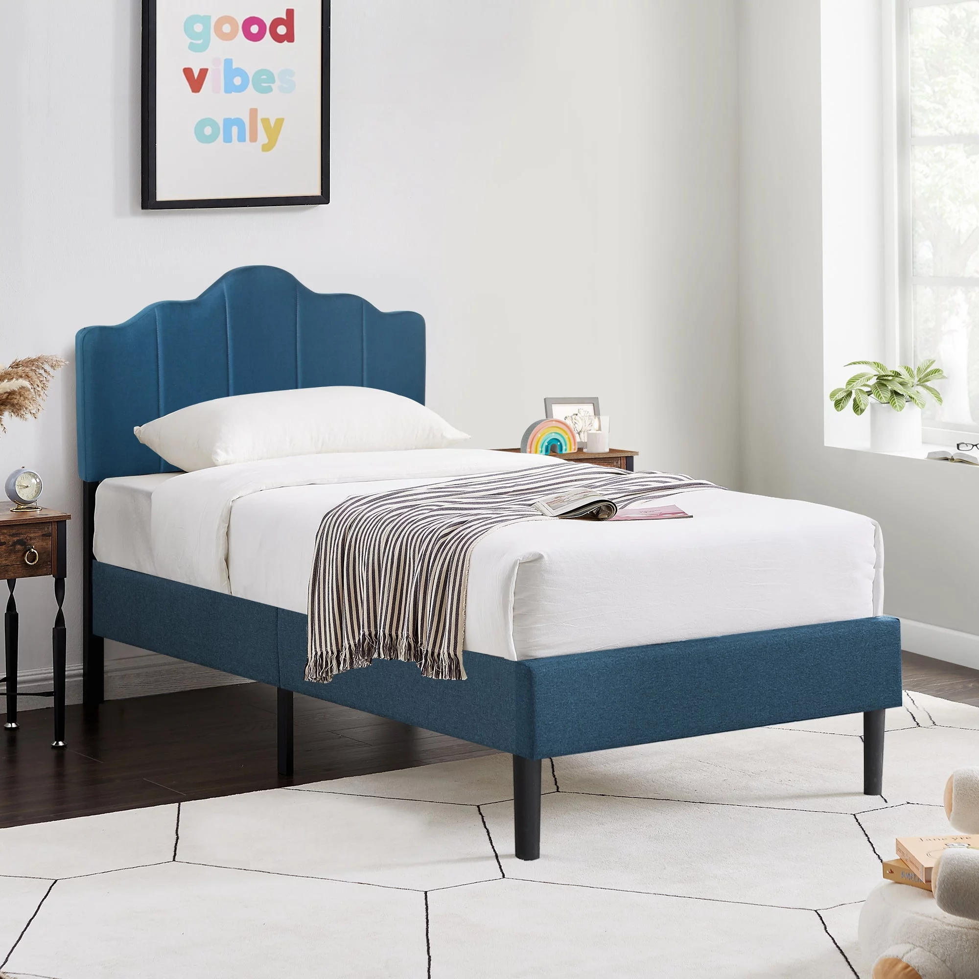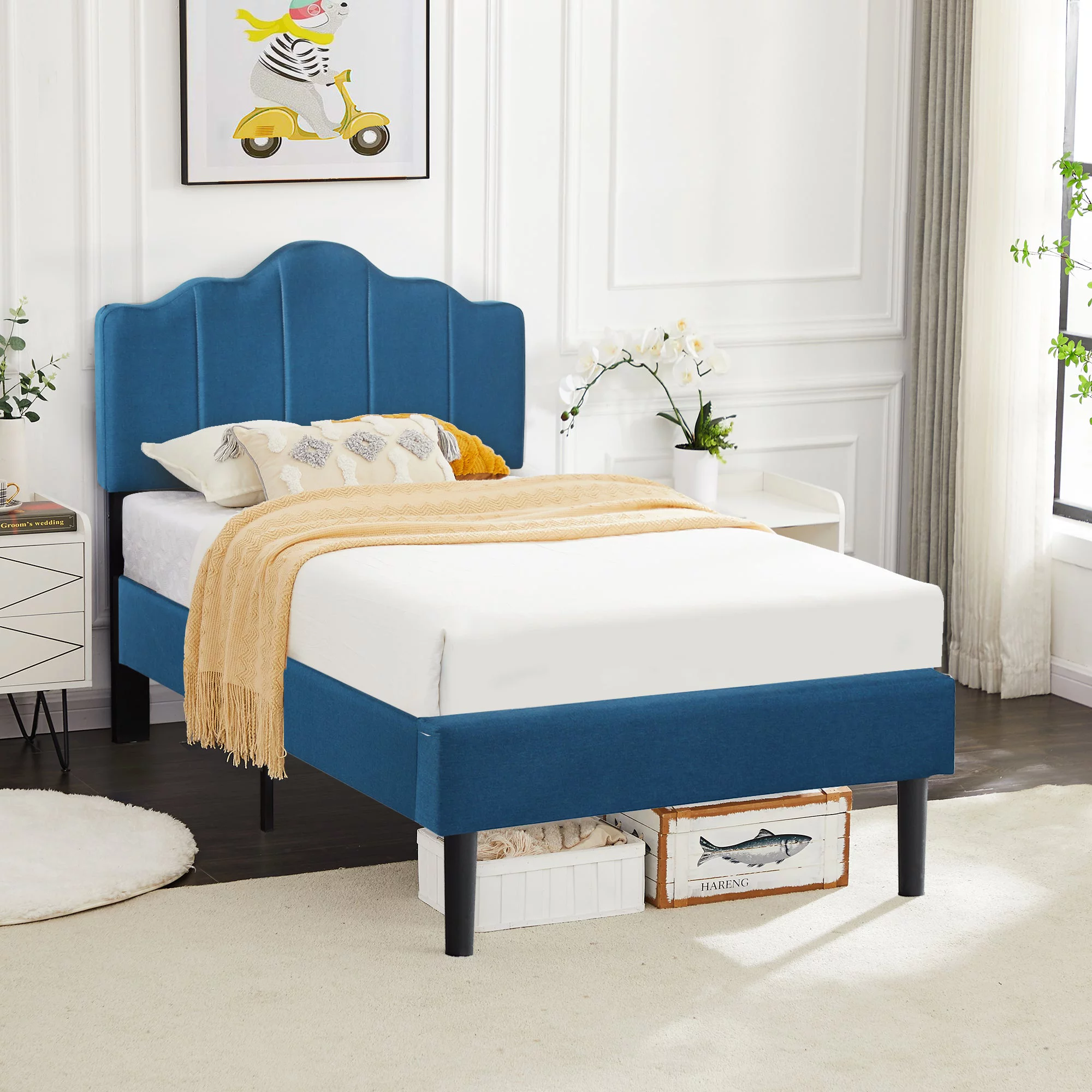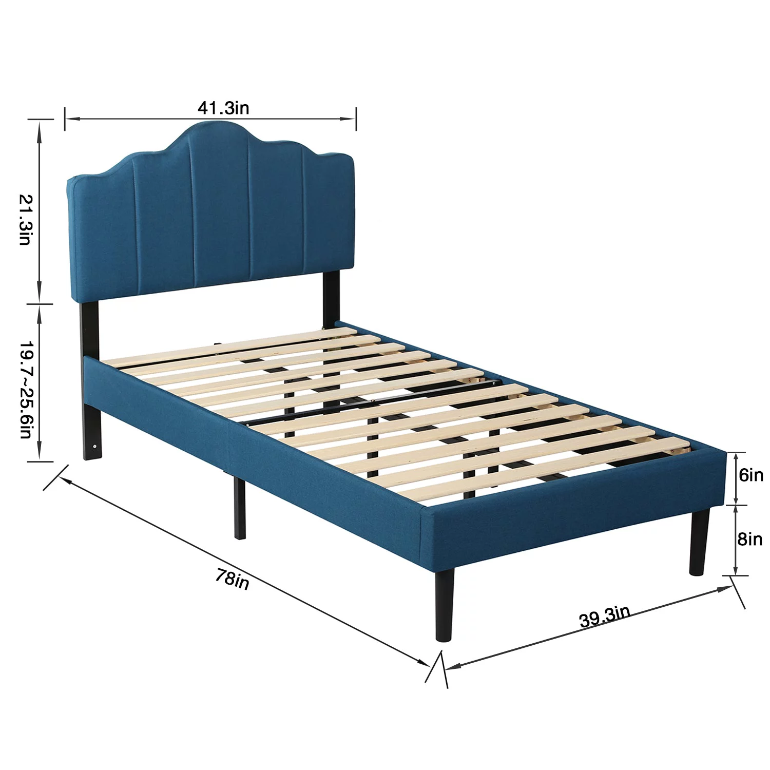 VECELO 2-Piece Twin Platform Bed Frame with Adjustable Headboard, No Box Spring Needed, Blue