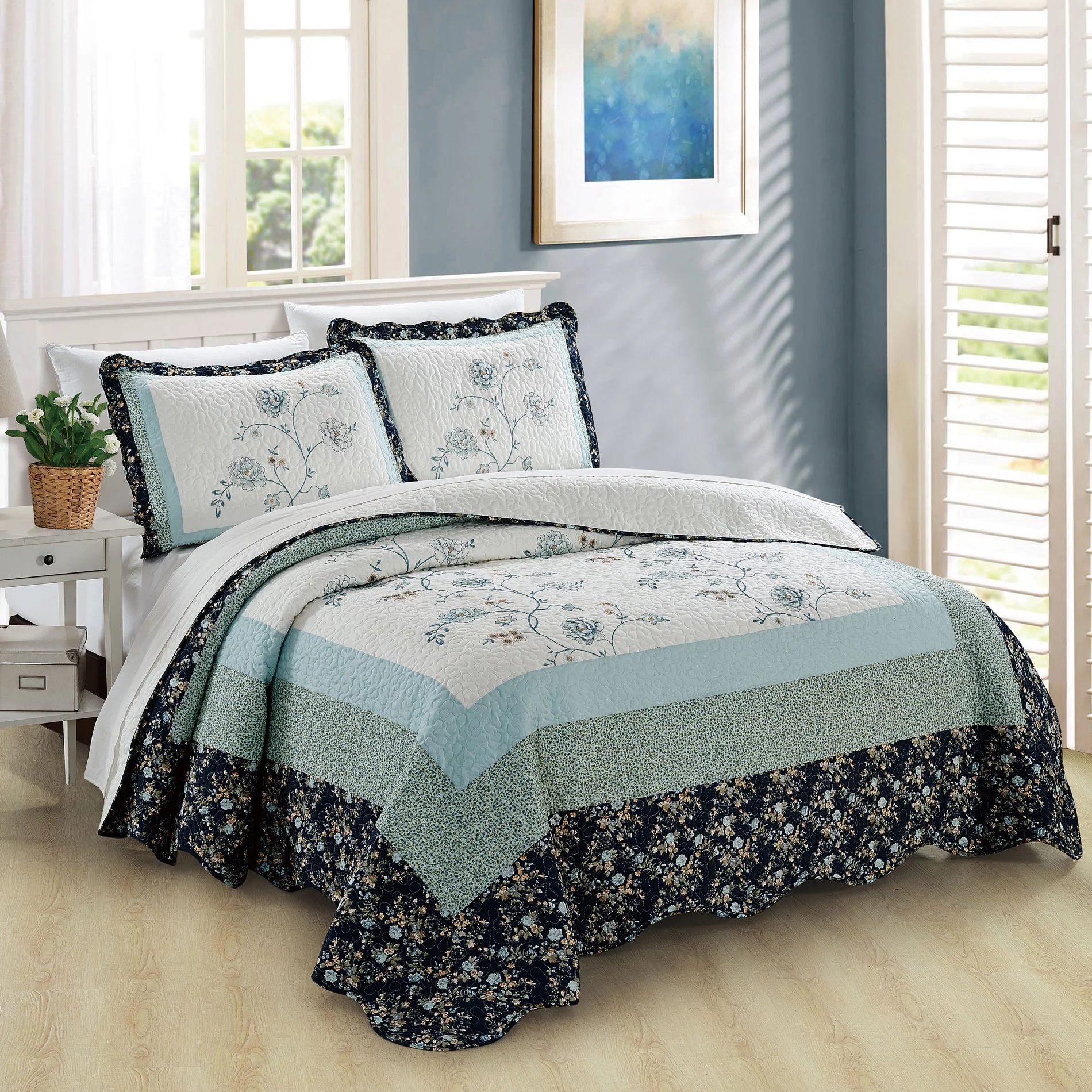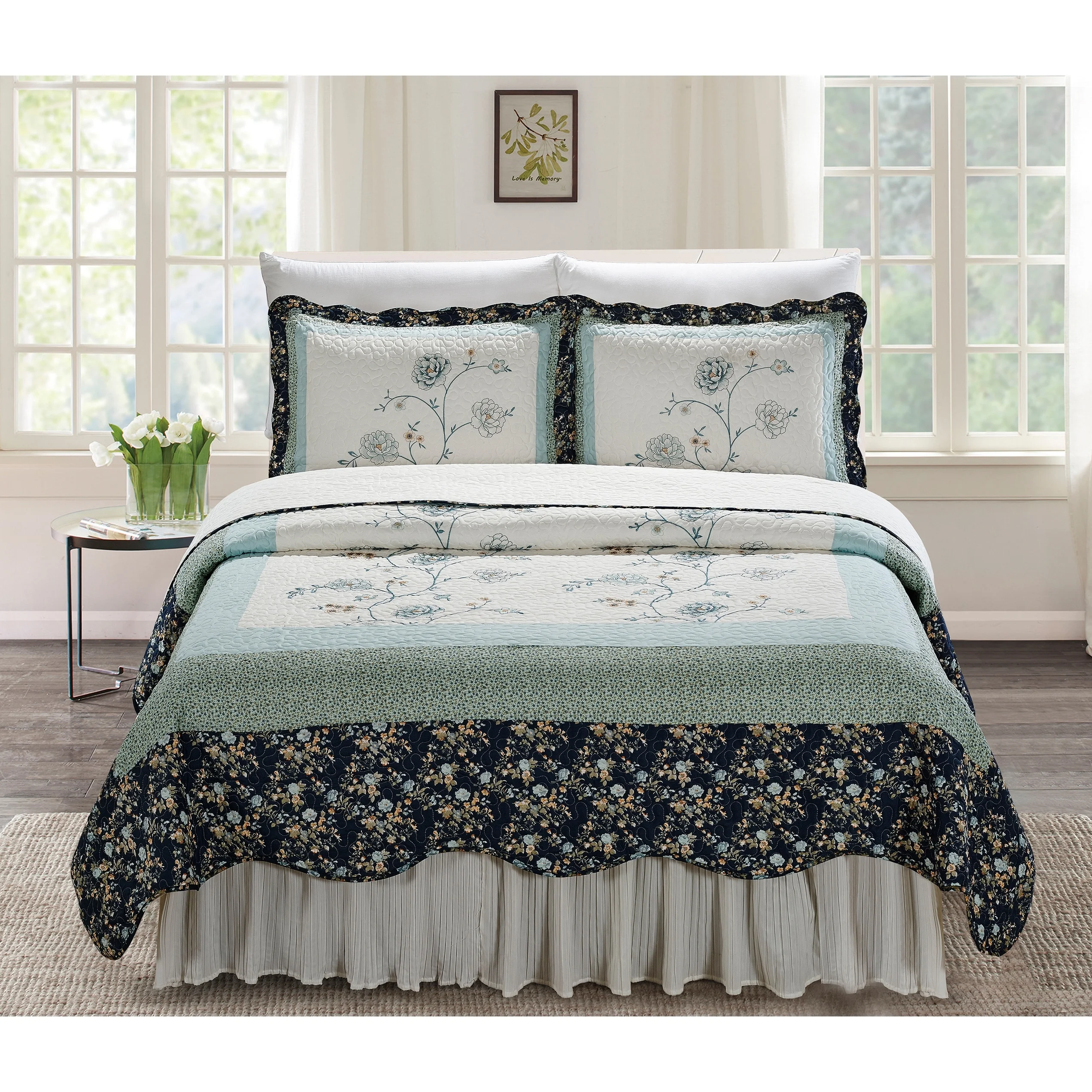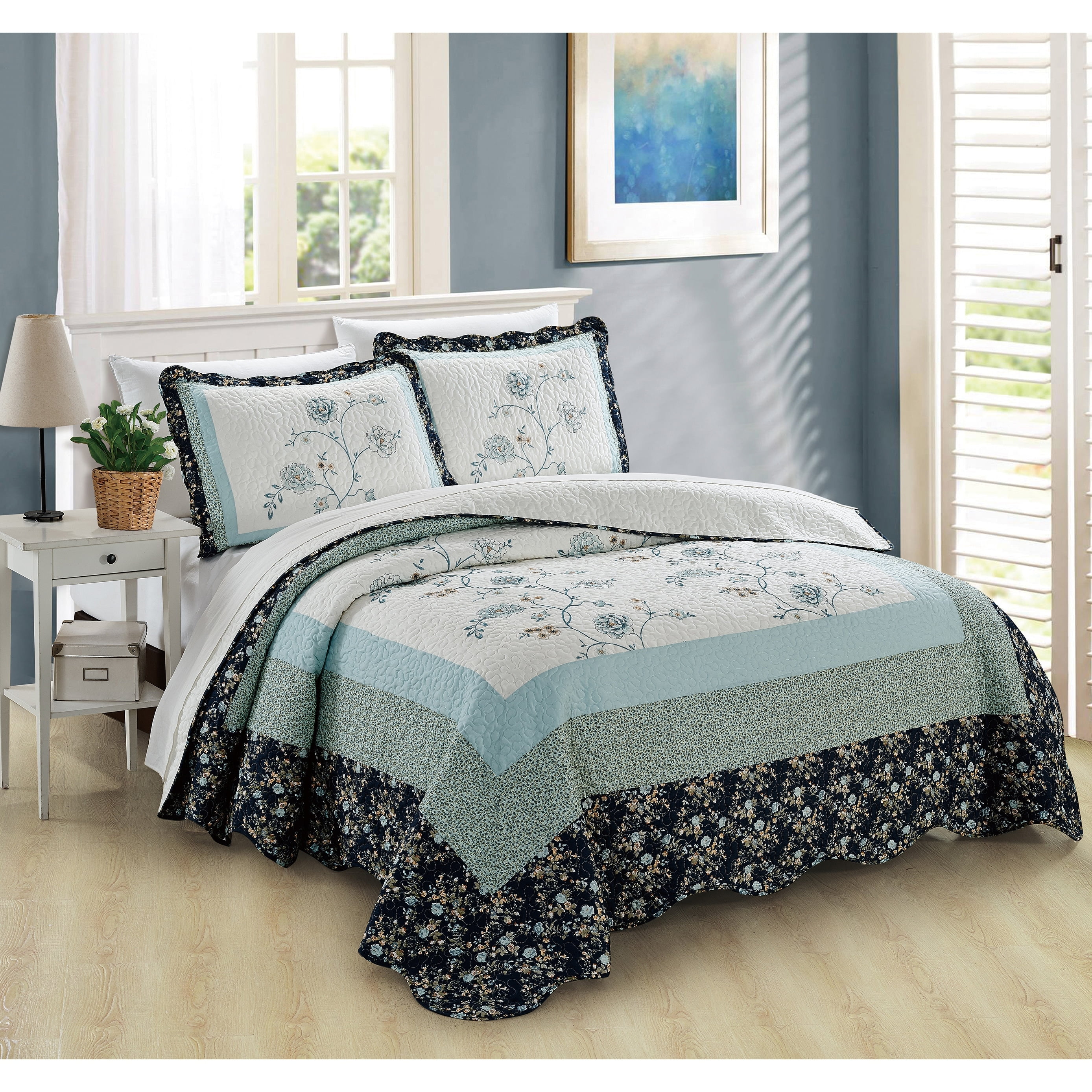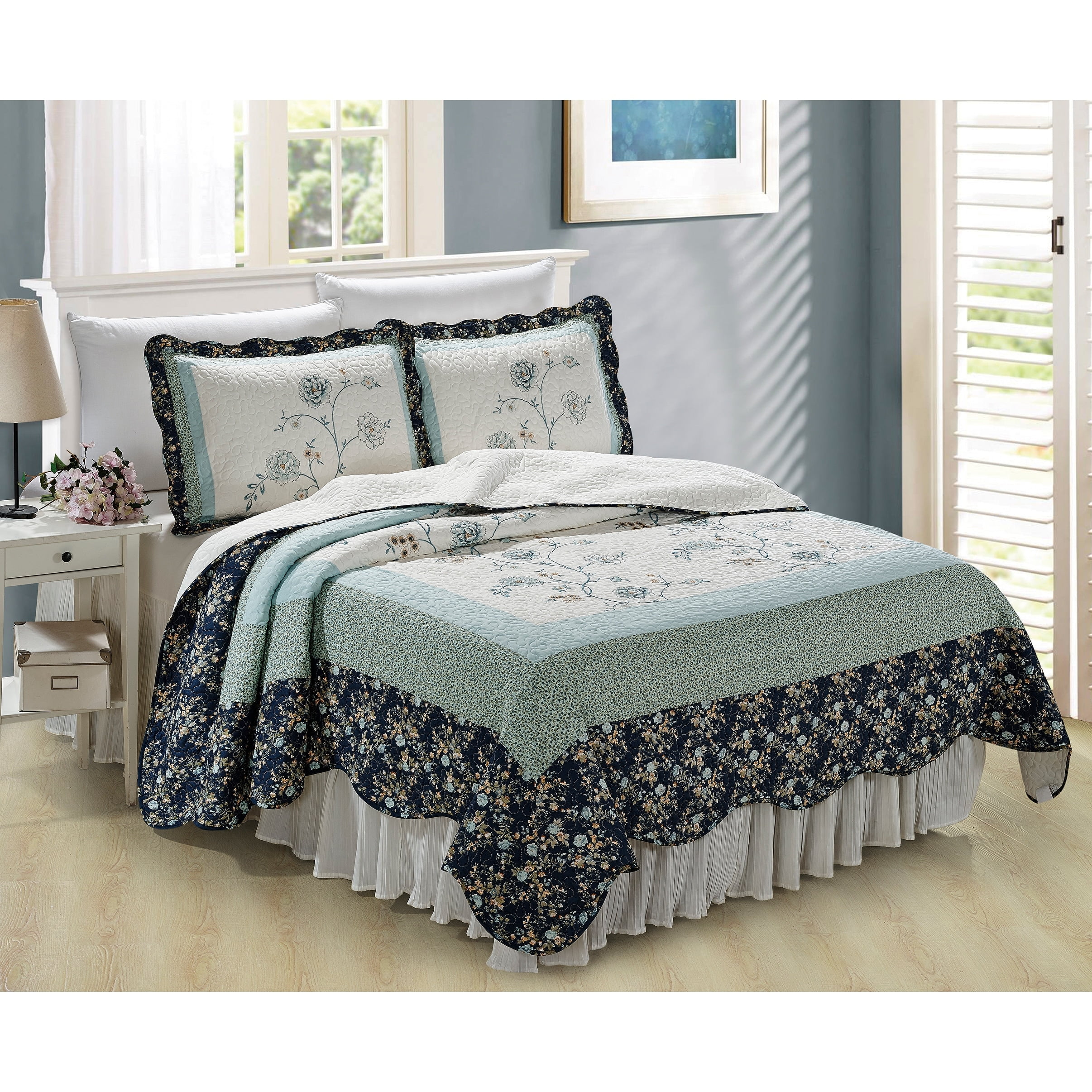 Home Soft Things 3 Piece Dorset Bedspread Set - Blue - Queen (90" x 90")