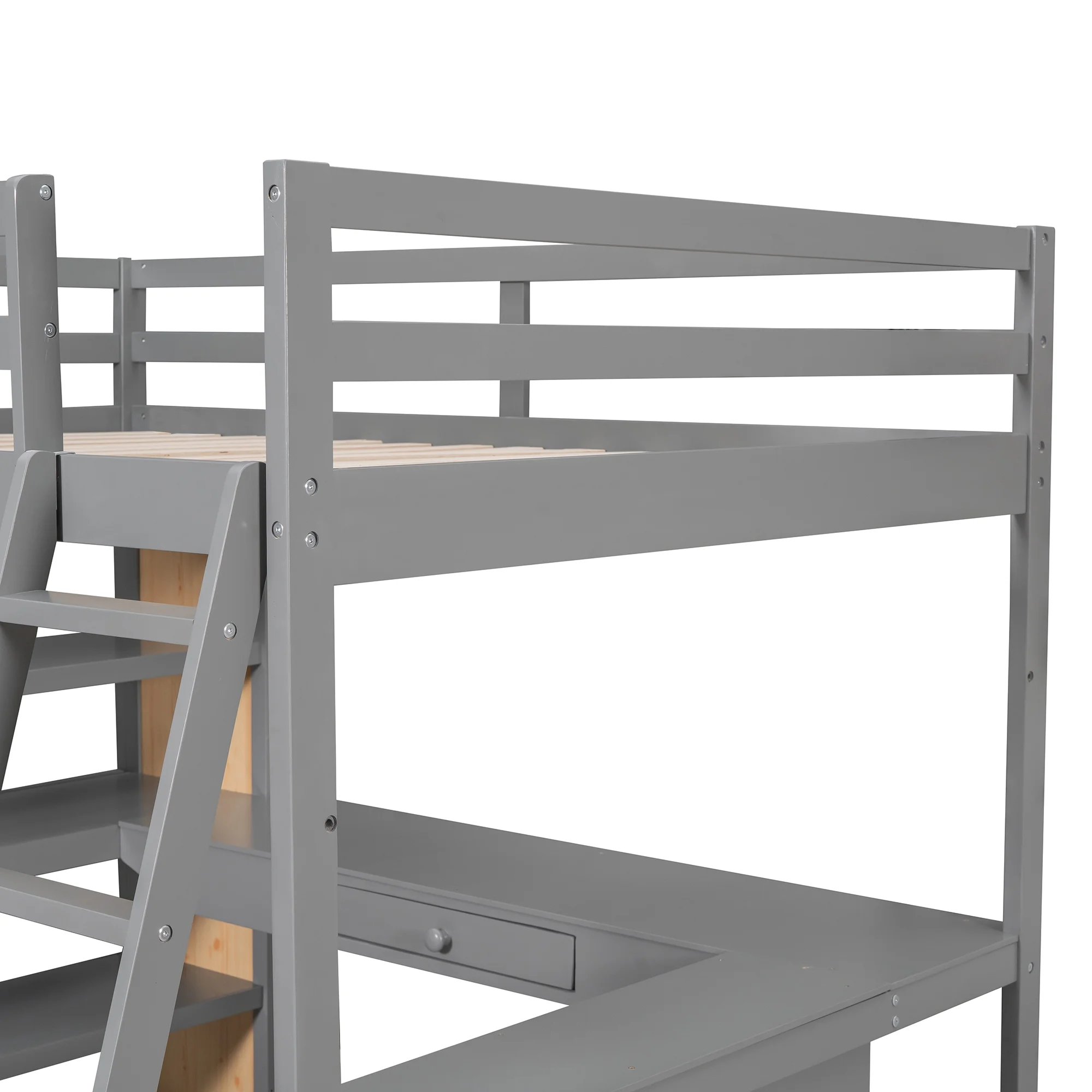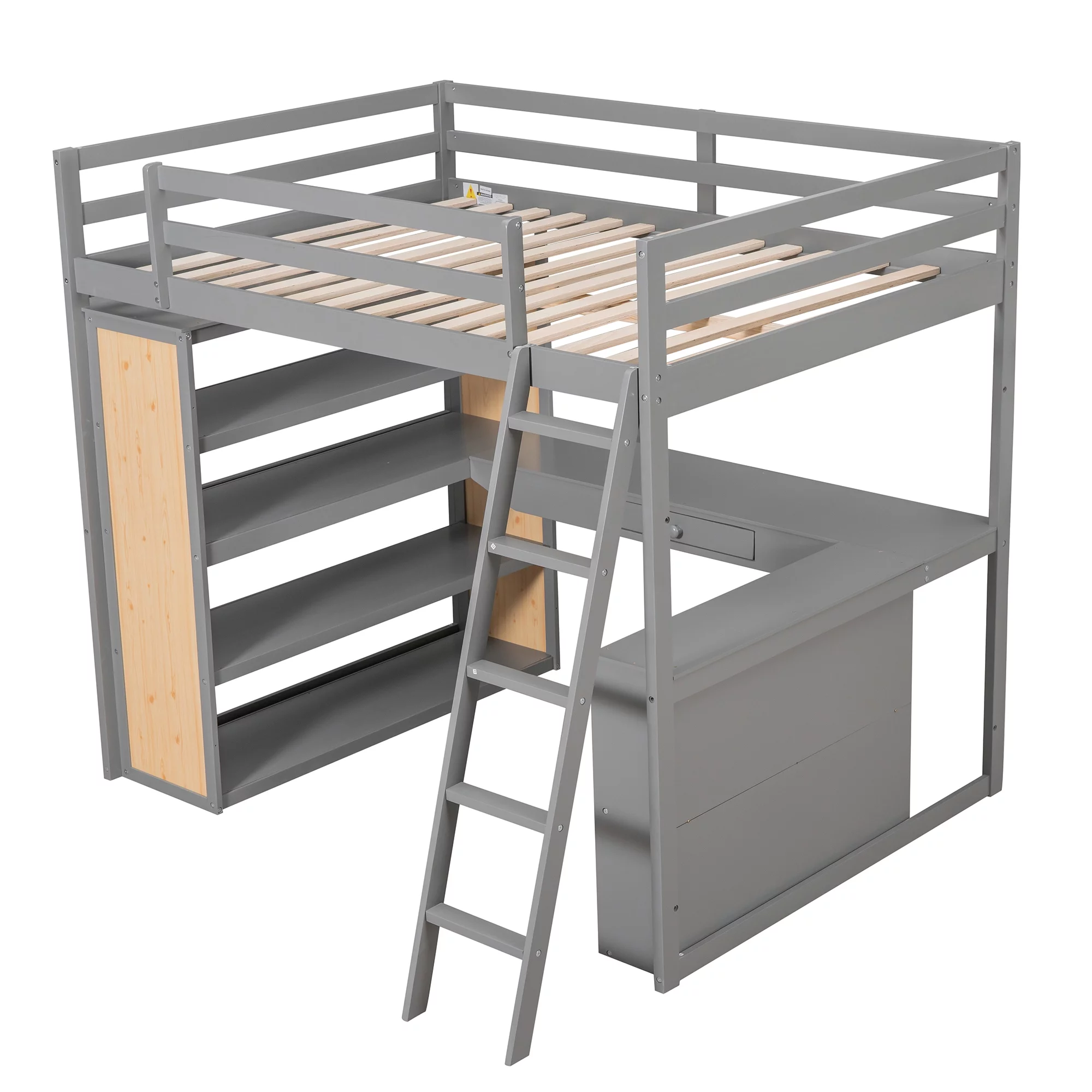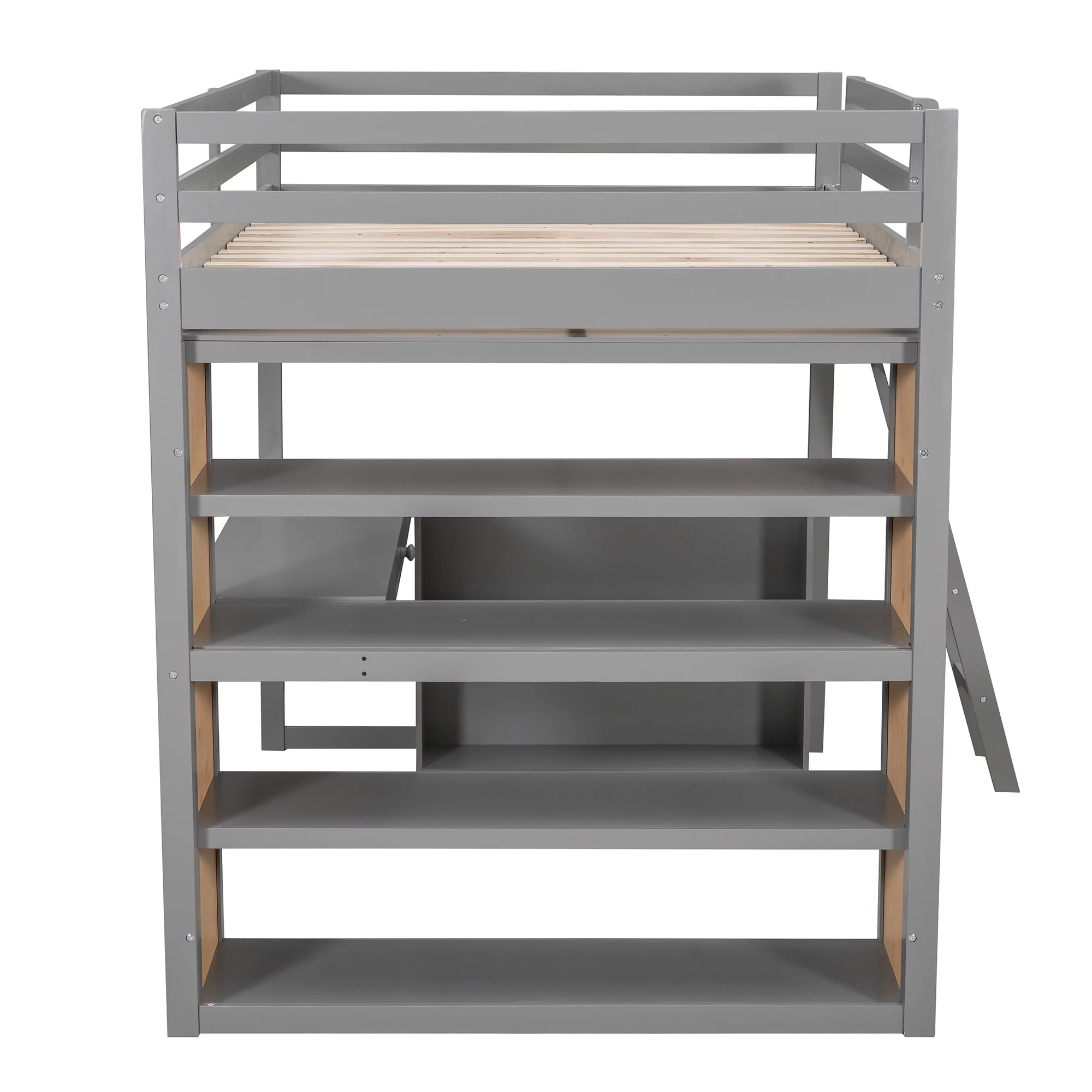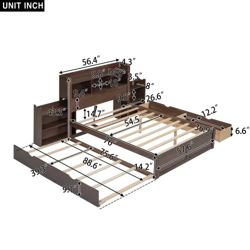 Full Size Storage Platform Bed with Pull Out Shelves, Twin Size Trundle and 2 Drawers, Espresso Pine Wood+MDF